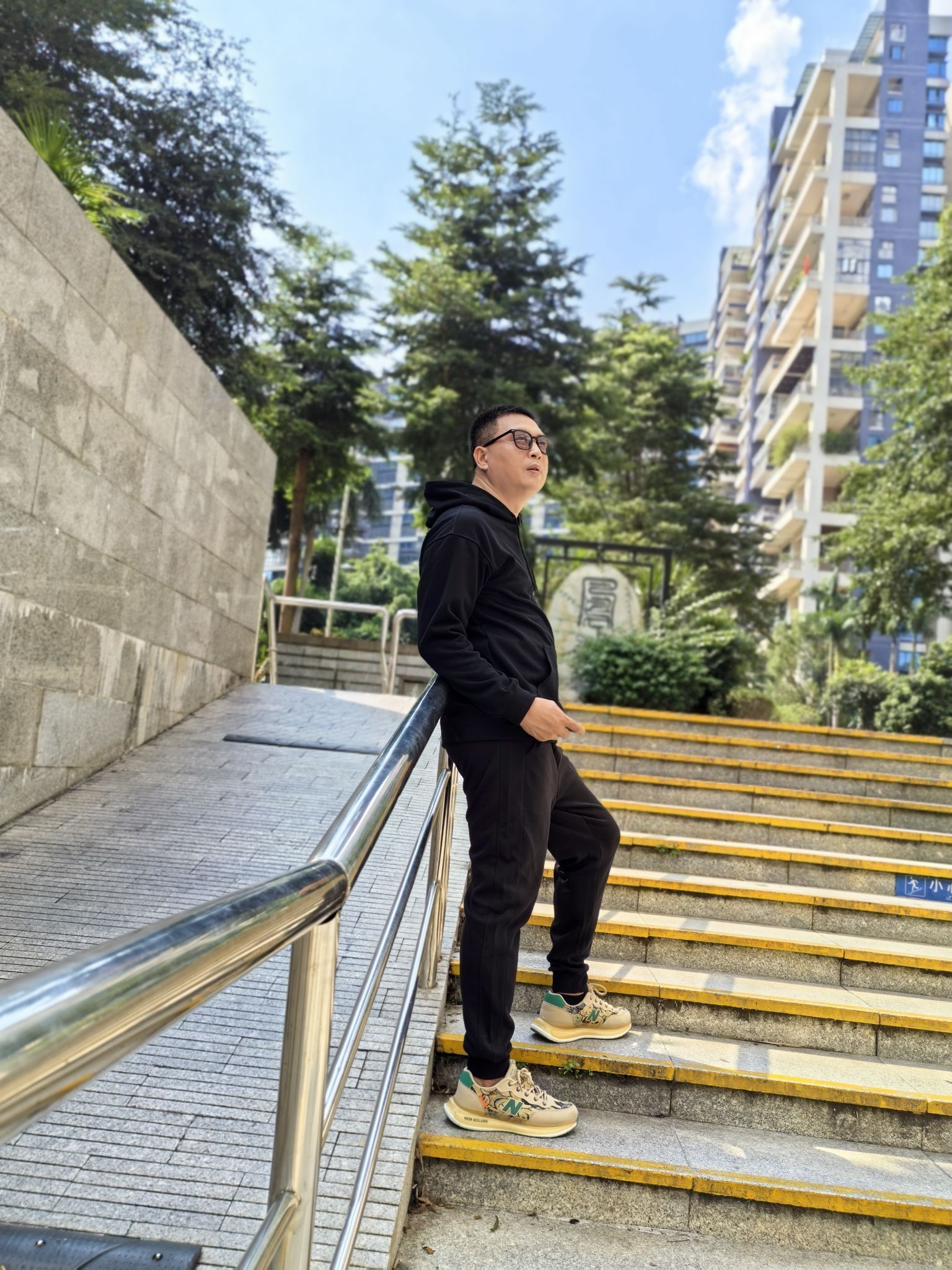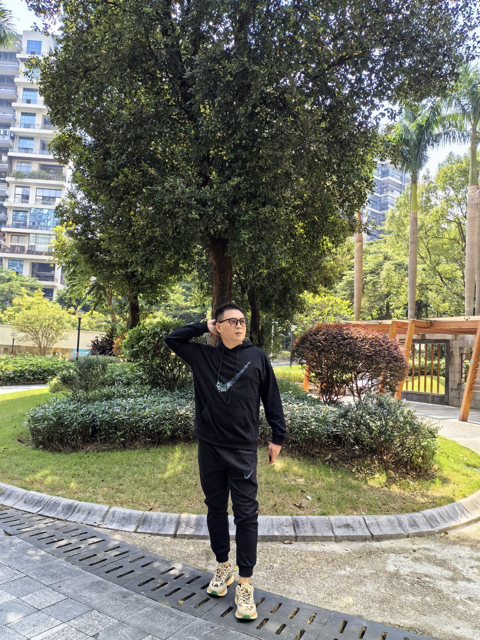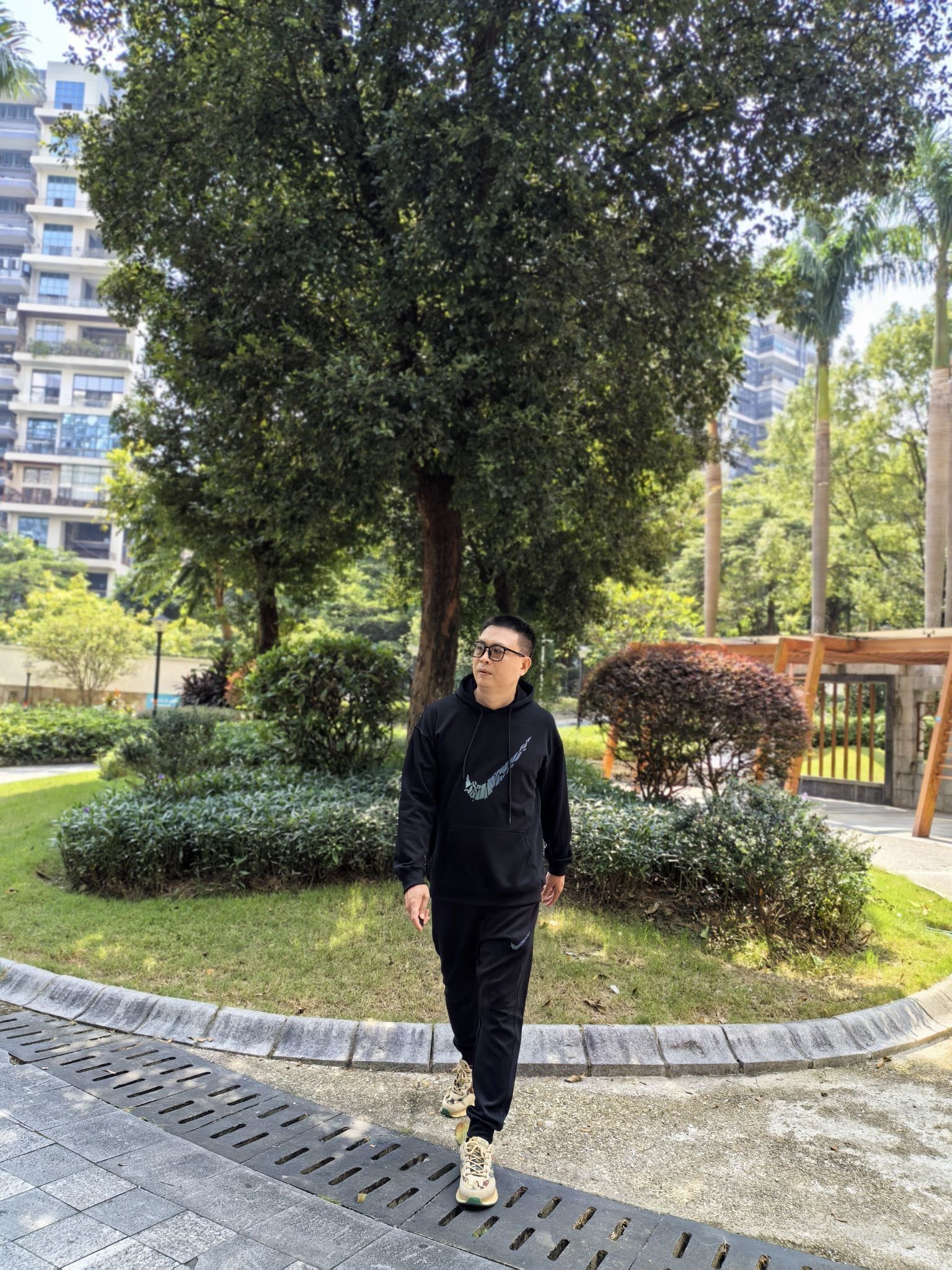 先说这上衣,黑色连帽卫衣,胸前那个渐变的大钩子,远看近看都贼拉帅!穿上就像自带打光板,走路都带风!帽子一戴,谁都不爱! 裤子也是黑色的,侧边小钩子和上衣呼应,裤型绝了!不显胯不挑腿型,我这种梨形身材穿都贼显瘦! 最最最关键的是舒服!面料软fufu的,穿上跟没穿似的!春秋单穿,冬天当内搭,一套搞定所有场合!下楼取快递、遛弯、健身,甚至约会穿都不违和! 关键是价格也香!一套下来性价比超高!谁穿...