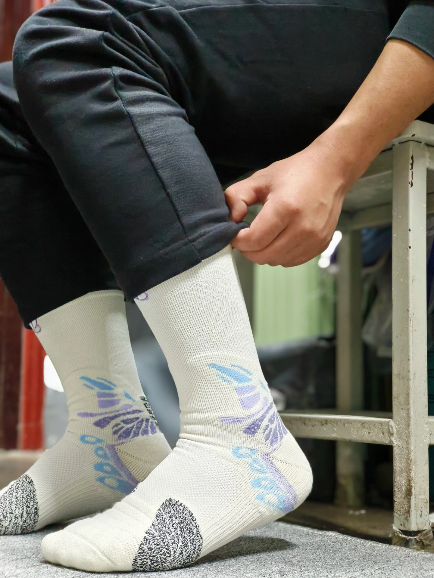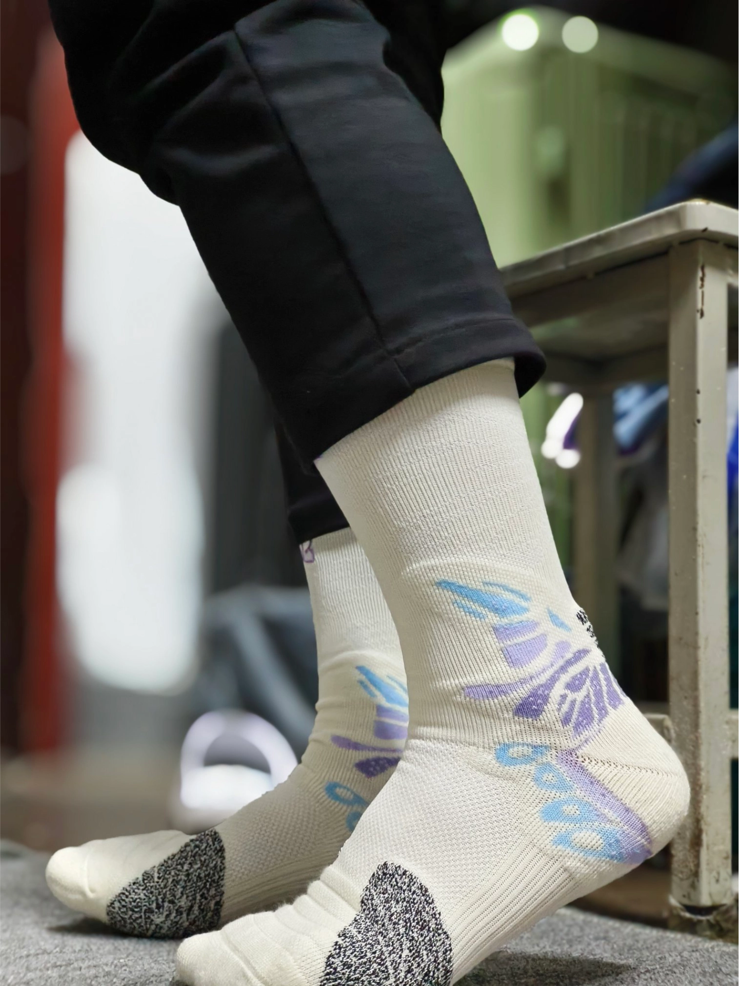 hello兄弟们 运动的装备又要炫酷又要帅 今天分享#维动 VEIDOORN 家这款袜子 整个狡猾处的蝴蝶图案设计真的是爱了 袜筒前面还有一个蝴蝶标志 袜子的贴合性很不错 舒适透气的材料运动也不会闷汗 平常打球跑步都可以穿哦 #夏日宝藏运动感袜子分享 #维动VEIDOORN #宝藏运动袜子分享 #分享一下你的运动袜子 #维动篮球袜子