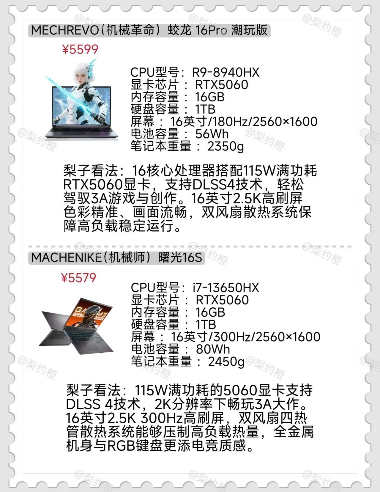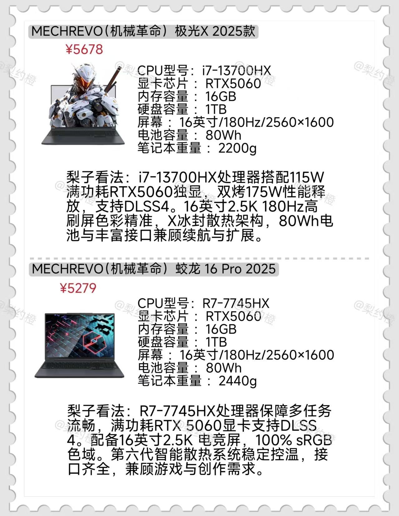 本篇笔记关联了MECHREVO/机械革命 翼龙15 Pro RTX4060显卡 2024款 15.3 英寸 游戏本 满功耗 超级续航 长续航 旗舰级 满血 高性能 高刷 天穹青、MACHENIKE/机械师 曙光16S RTX5060显卡 2025款 16英寸 游戏本 2.5K屏 140W满功耗 高性能 灰色、MECHREVO/机械革命 蛟龙16 Pro RTX5060显卡 2025款 16英寸 游戏本 满功耗释放 高刷 高性能 苍岩灰等商品,为用户提供真实的使用体验和购买参考。