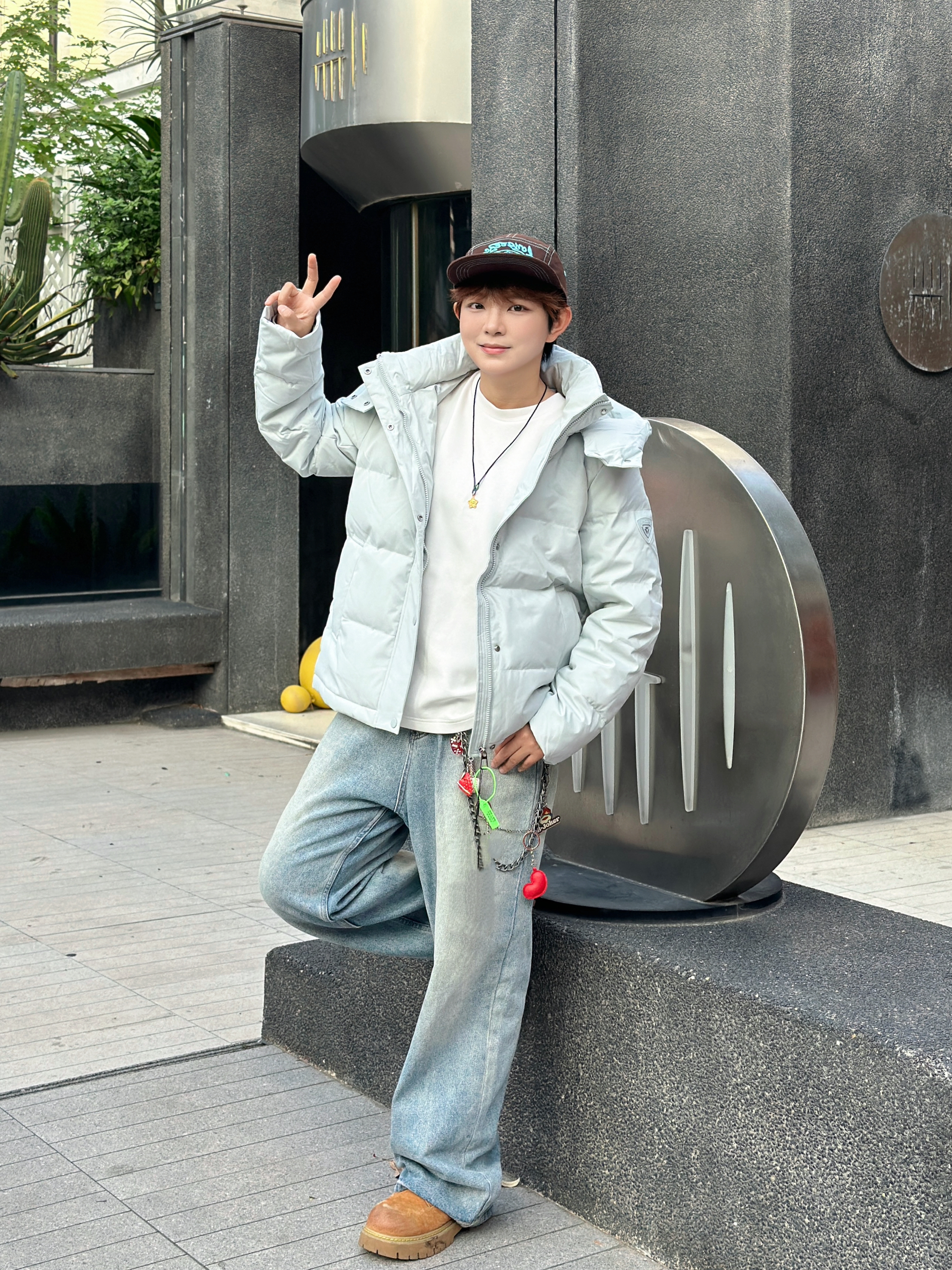 宝子们看过来👀 降温了咱也能又暖又潮~这件浅色系羽绒服真的绝绝子👍 软乎乎的还特显干净,连帽设计一整个把氛围感拉满✨ 内搭简单白T,下身配条做旧阔腿牛仔裤+工装靴,再加点小配饰点缀,休闲又有态度💯 怕冷星人过冬就靠它,保暖时髦两手抓,咱就是说一整个爱住了🥰
