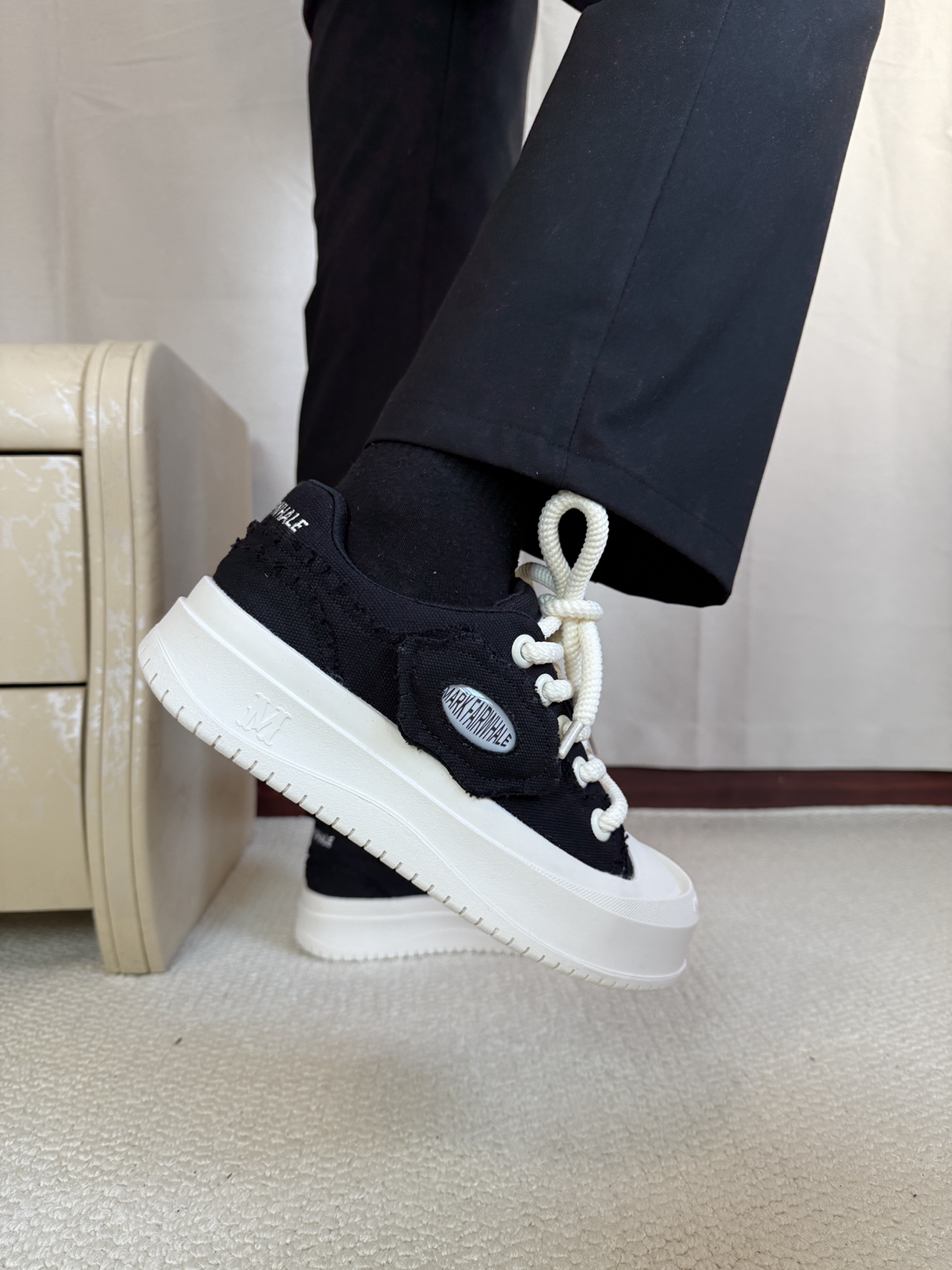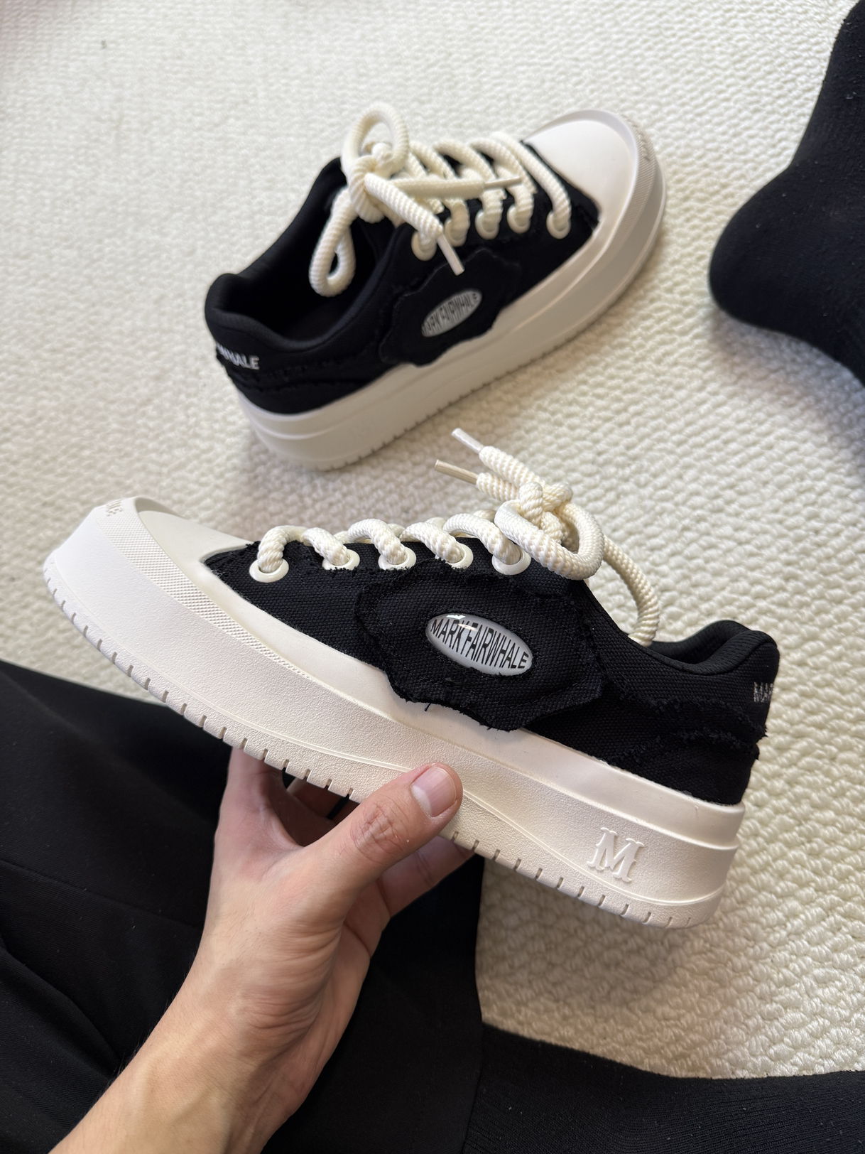 真的对这种黑白撞色又好看的鞋子没有一点点的抵抗力啊,这双#马克华菲 家的鞋子真的一眼爱了,黑白撞色,可拆卸的侧边logo,麻绳鞋带,真的好穿耐穿。而且整个鞋子上脚会感觉很有质感,结实耐穿的同时还特别舒服,不磨脚。搭配衣服也特别方便,真的爱了爱了!