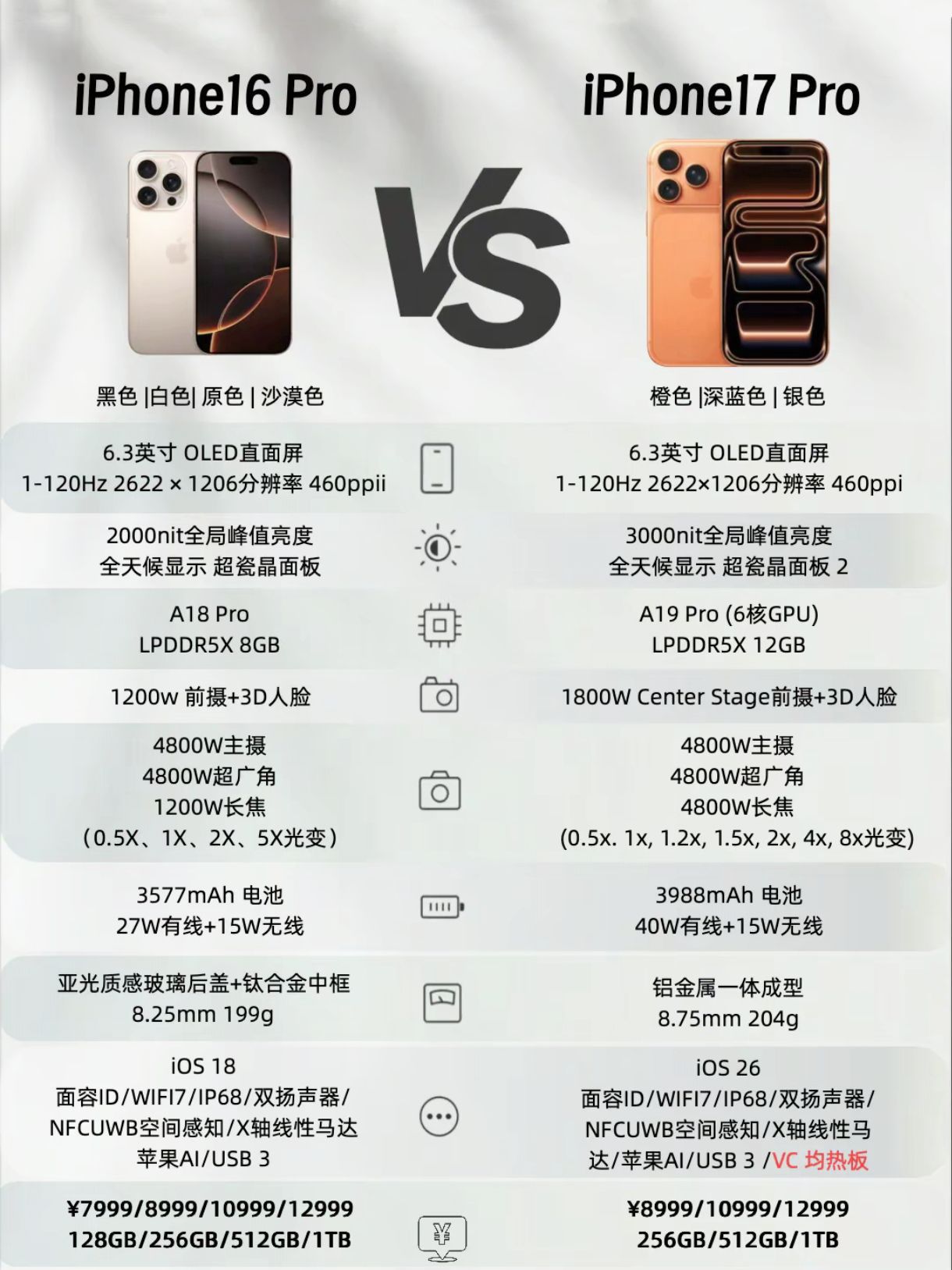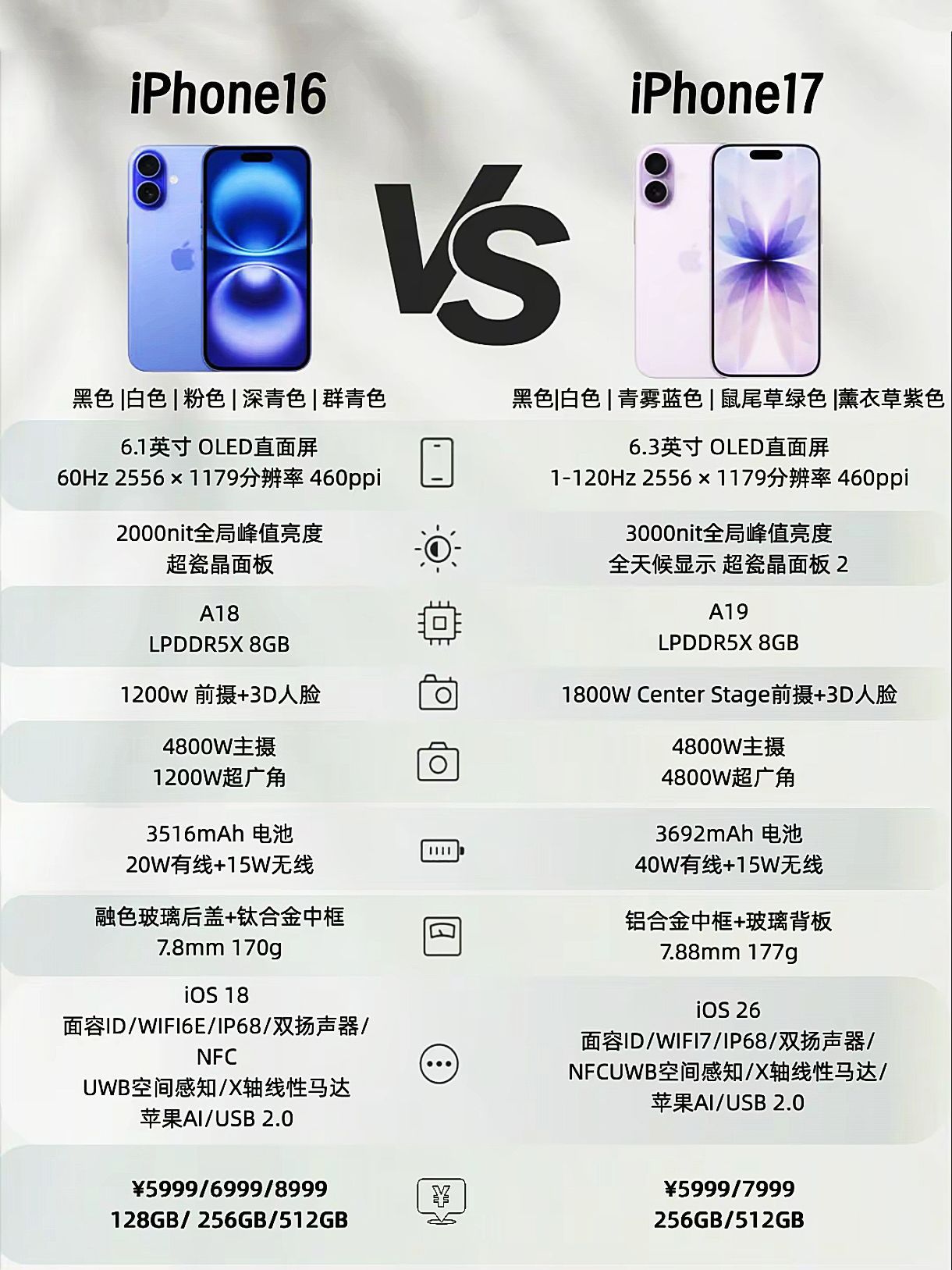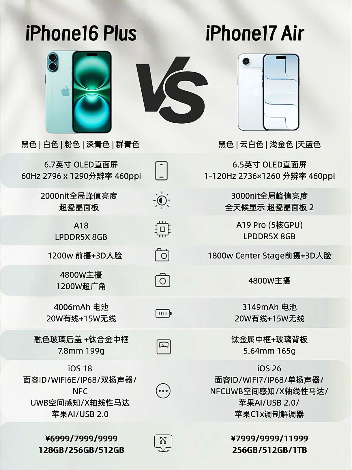 🔥 新机参数全解析|iPhone 17系列真机对比图来了!这次苹果居然一口气发了四款机型,从标准版到Pro Max,配置差距居然这么大…… ✨ 升级亮点: ▪️ 全系标配高刷屏!标准版也终于上了120Hz,滑动流畅度直接拉满 ▪️ 17 Pro/PM影像大升级:全系4800万三摄+8倍光变,长焦夜景稳了 ▪️ 17 Air轻薄天花板:5.64mm厚度+165g,手感党狂喜 ▪️ 续航充电...