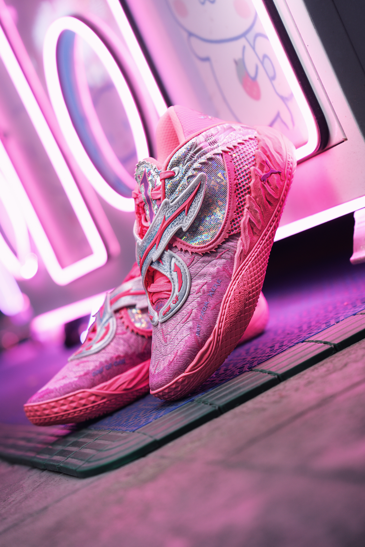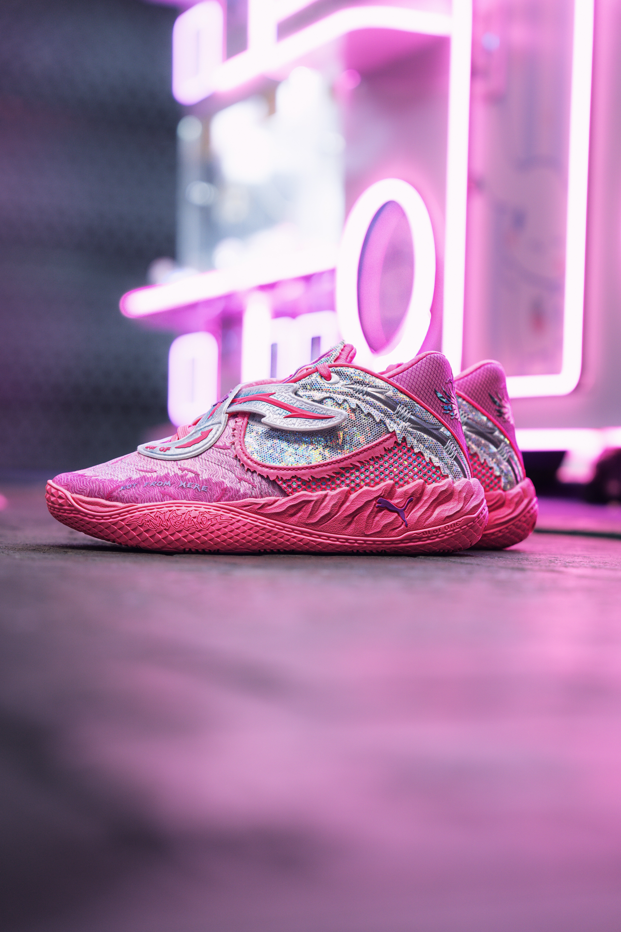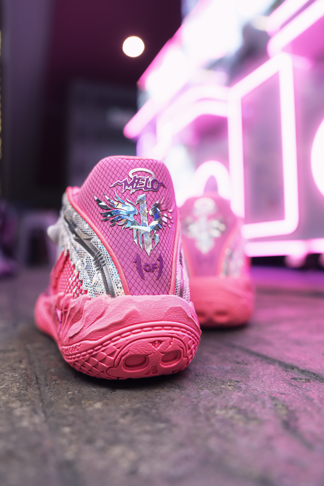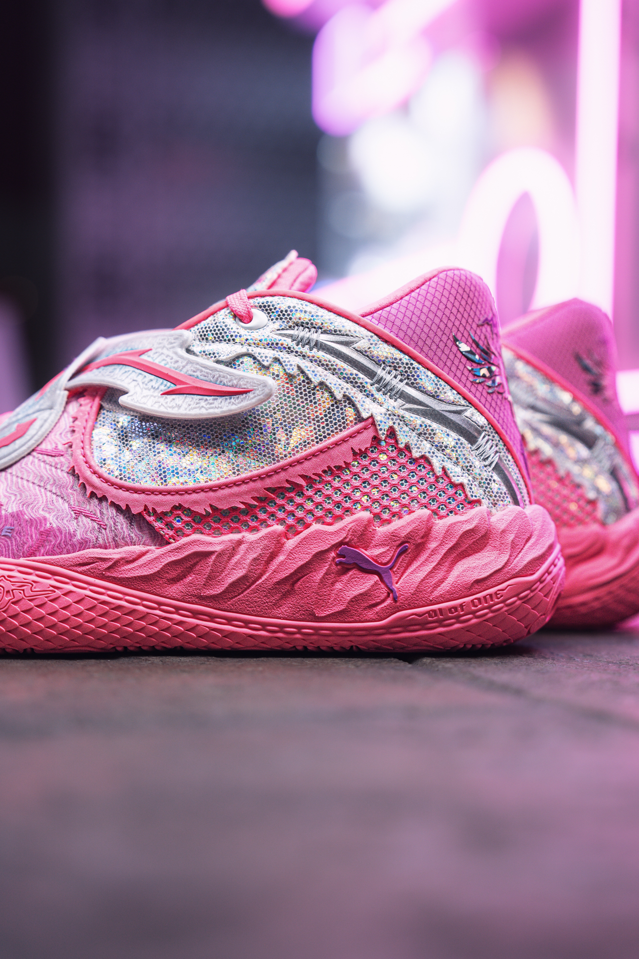 篮球圈潮人拉梅洛·鲍尔的PUMA MB.05新战靴也太炸了!亮粉色+金属珍珠质感,羽毛纹理+双中足绑带,这设计脑洞绝了~ ✅ 视觉冲击拉满:亮粉鞋身+反光珍珠银面板,光线一照炫到没朋友,球场焦点非它莫属! ✅ 细节控狂喜:鞋头羽毛压纹像外星生物皮肤,后跟金属踝领充满未来机甲感,小众又高级~ ✅ 专属感拉满:鞋身“1 OF 1”和“Melo”标志,中底“RARE”字样,三球个人印记随处可见~ ...