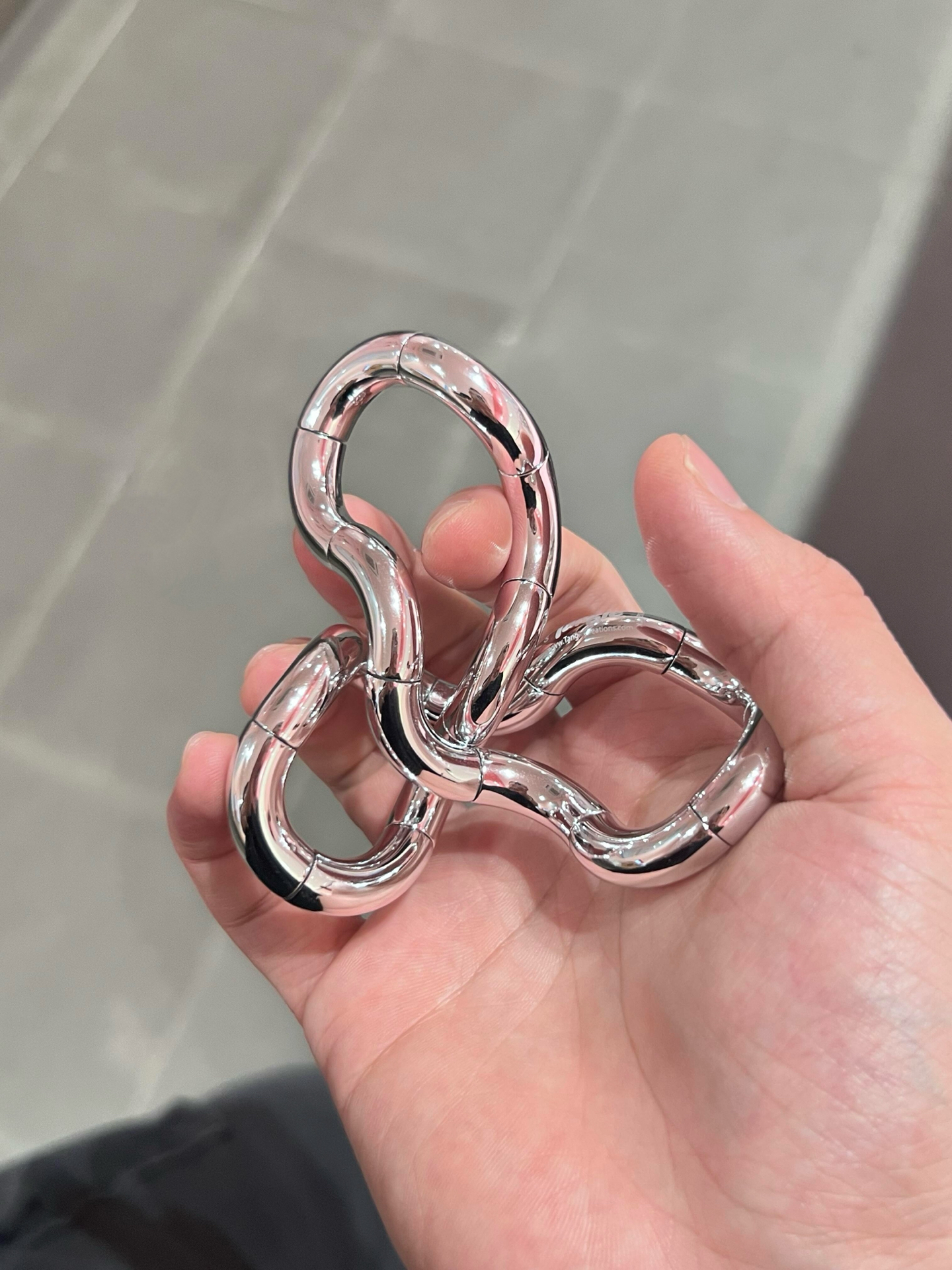 收到银色款时我满脸问号,这啥啊?盘了两天后:真香!它像莫比乌斯环,盘着顺滑解压,玩累了当手环、挂件也酷~就是价格小贵,但焦虑时盘它,脑子能暂时放空,也算值回票价啦🤭