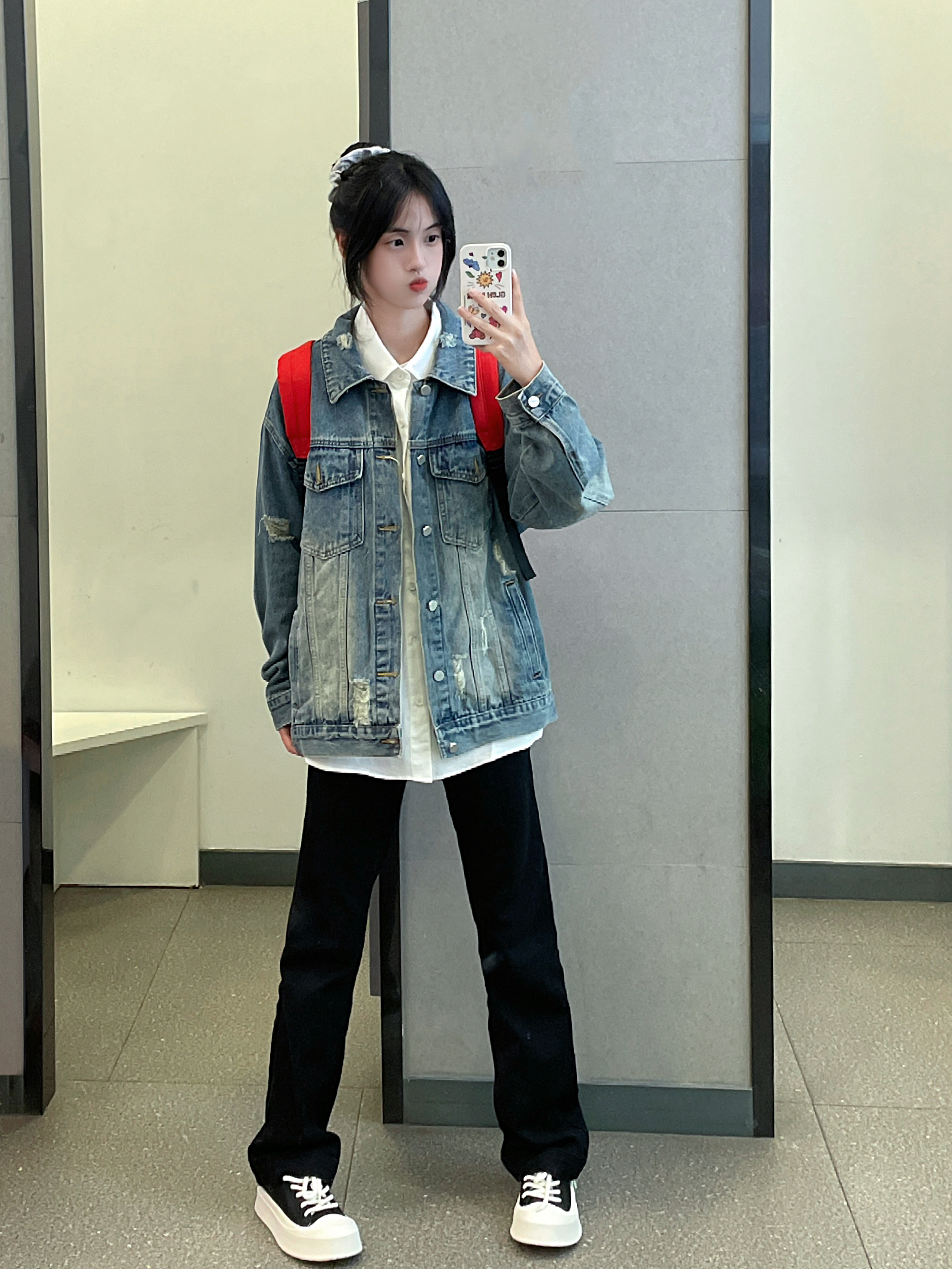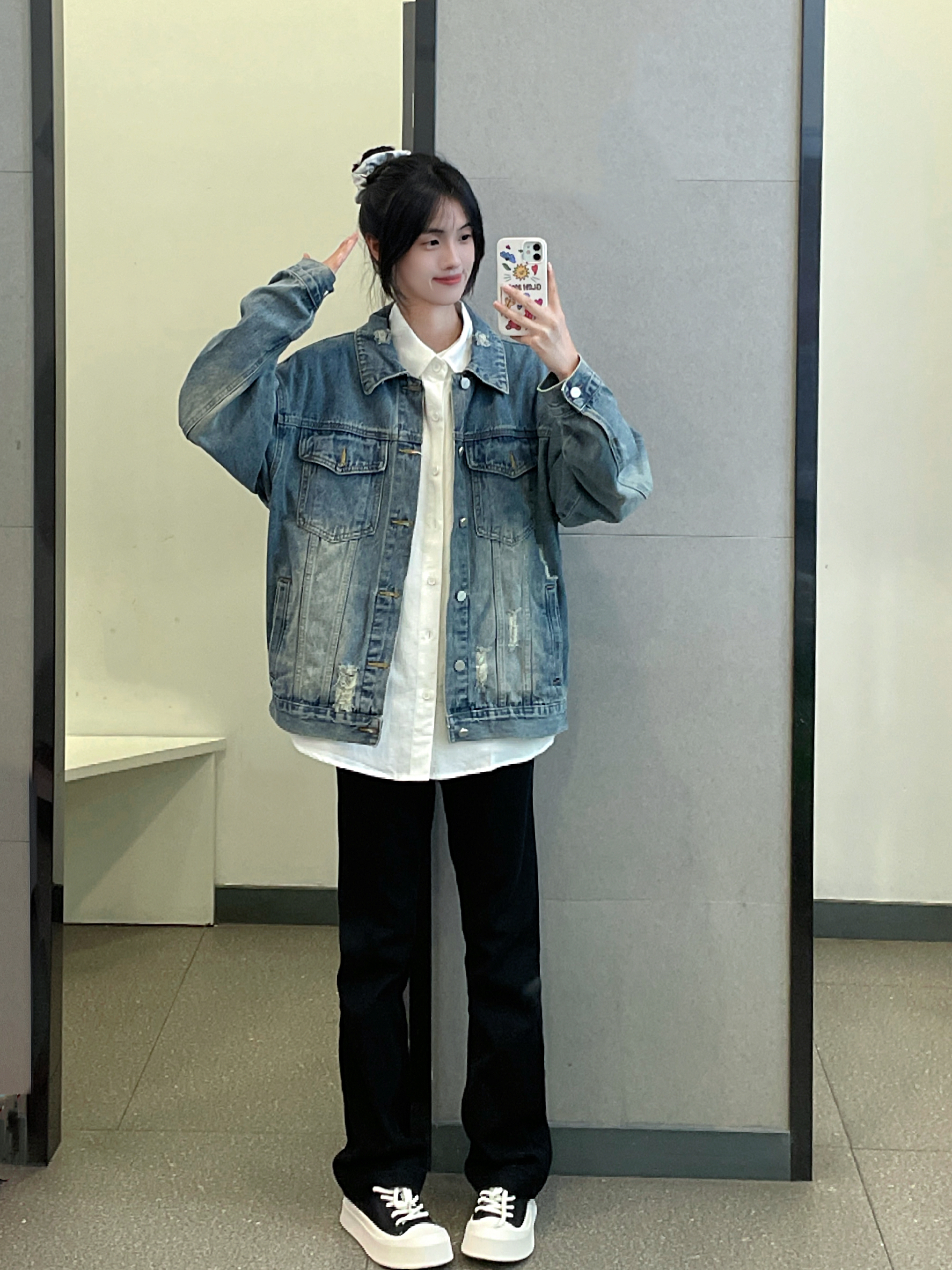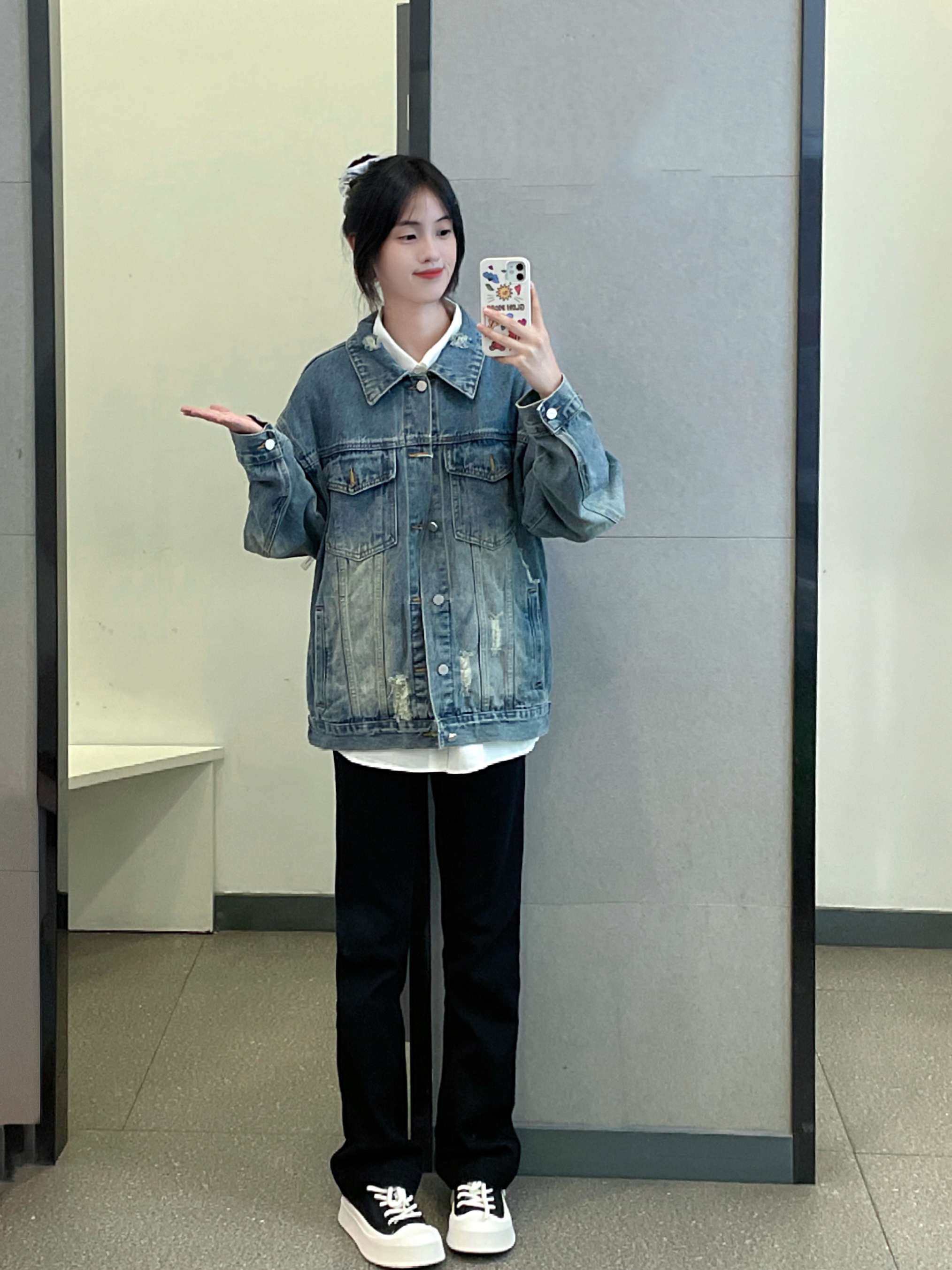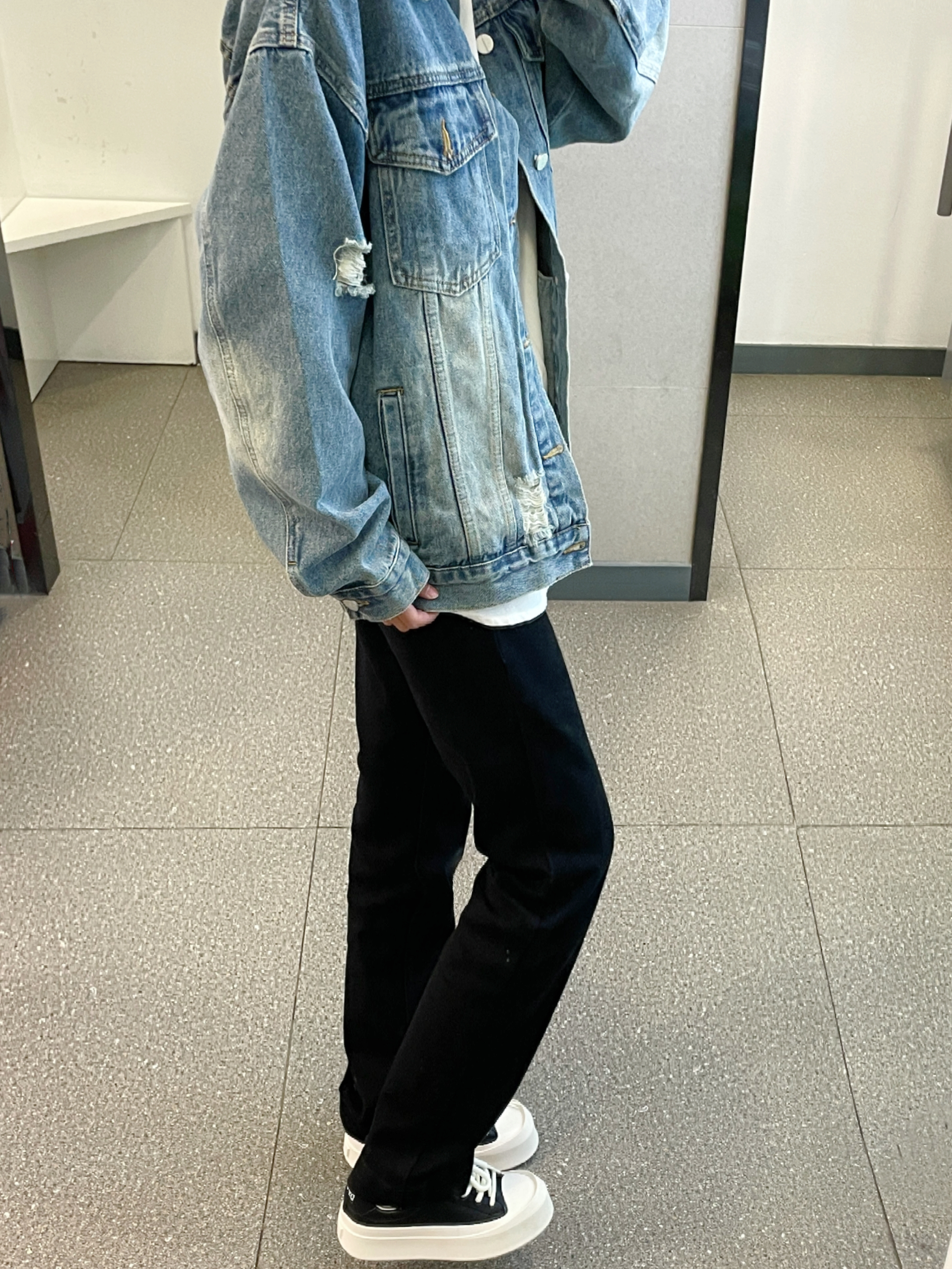 👔 :lemanism牛仔外套 破洞设计 好酷 👖 :coldstone 直筒版型黑色牛仔裤 修身显瘦