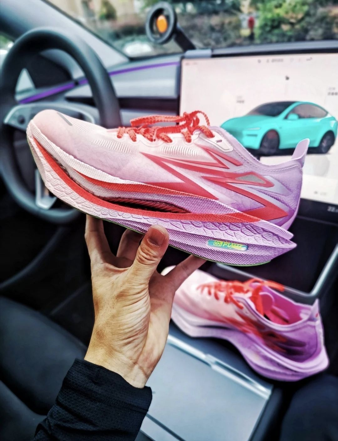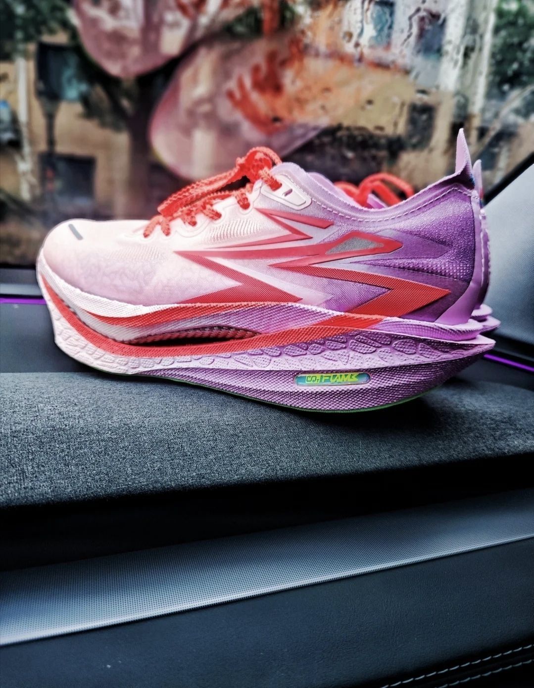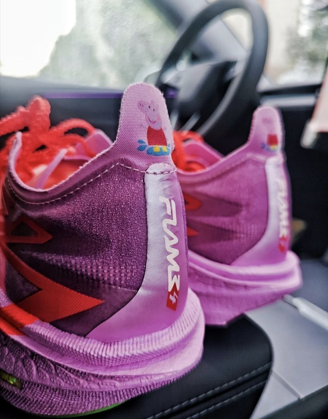 ⚡小猪佩奇联名的飞燃4最近可太‘出圈’了 迫不及待入手后简单说下:给大家一点参考! ⚡外观萤光热情珊瑚粉吸睛肯定是吸睛! 但我它的实力比颜值更狠: 碳板推进前掌蹬地反馈干脆 我感觉适合节奏跑和间歇训练 ⚡中底缓震调教偏韧,长跑不泄力,路感清晰。 蝶式稳定系统是亮点,落地时脚踝包裹感强 对足弓支撑到位,我感觉更适合中等足弓的跑者 ⚡不过要注意!宽脚党慎入! 鞋楦偏标准,前掌稍窄,宽脚可能觉...