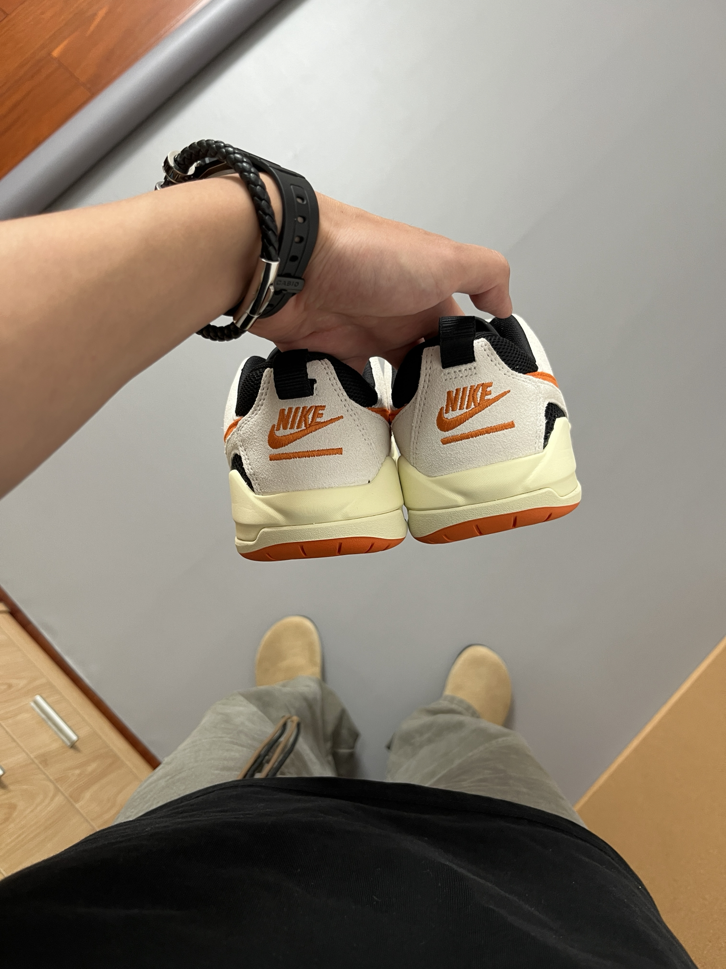 最近爱上的橙自色Nike CMFT 🍊 没想到它的穿搭性和脚感这么戳人 ✅黑色网织物鞋面加上偏复古白皮质 ✅上脚舒适,透气鞋和包裹度都不错的‼️ 在秋日里搭配一条美式工装裤,刚刚好~ ⚠️尺码参考:170/120 穿着41 不偏码的 @App #入秋球鞋穿搭 #一双鞋拿捏街头 #我的人生球鞋 #新鞋零时差 #入秋新鞋零时差