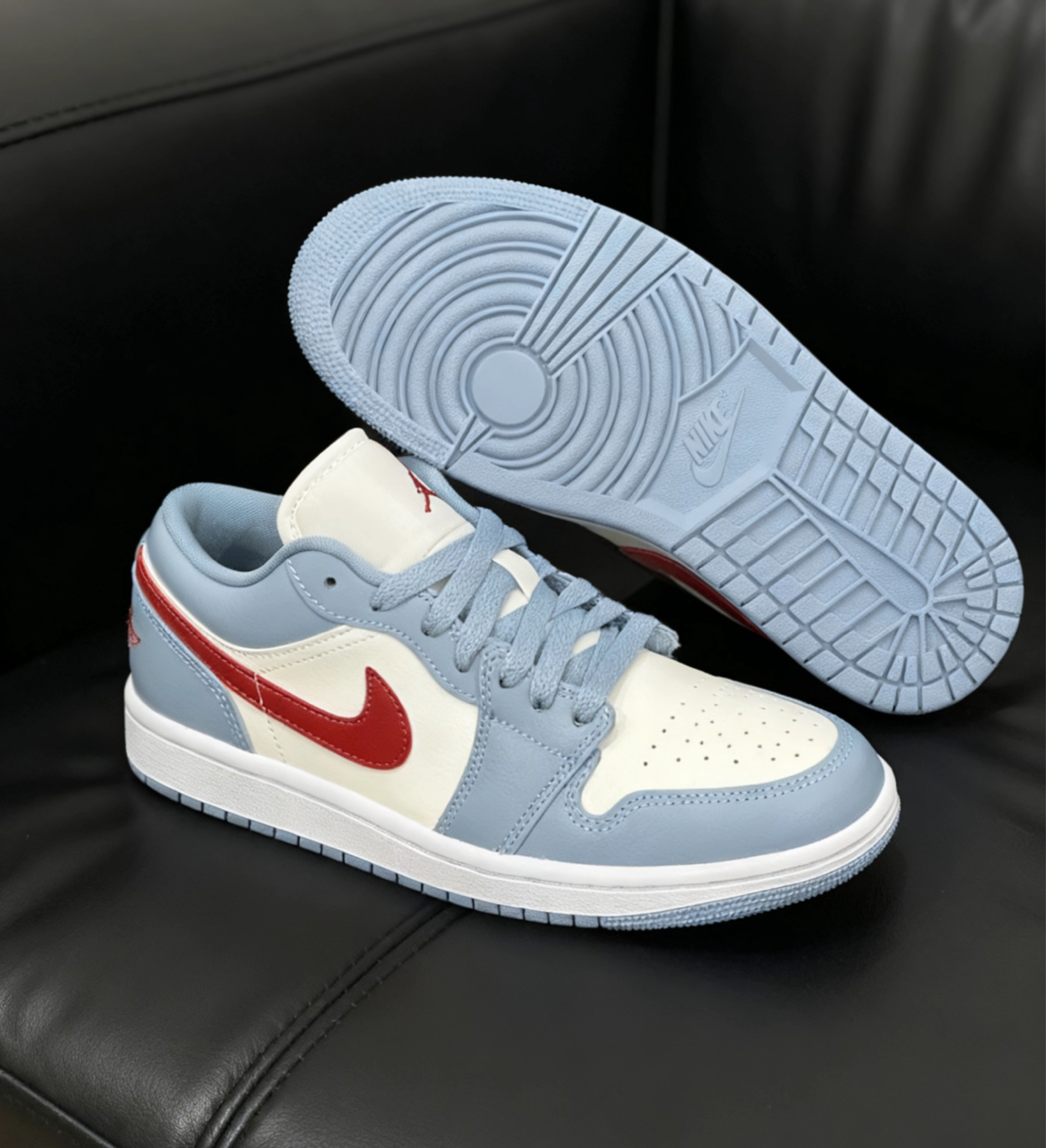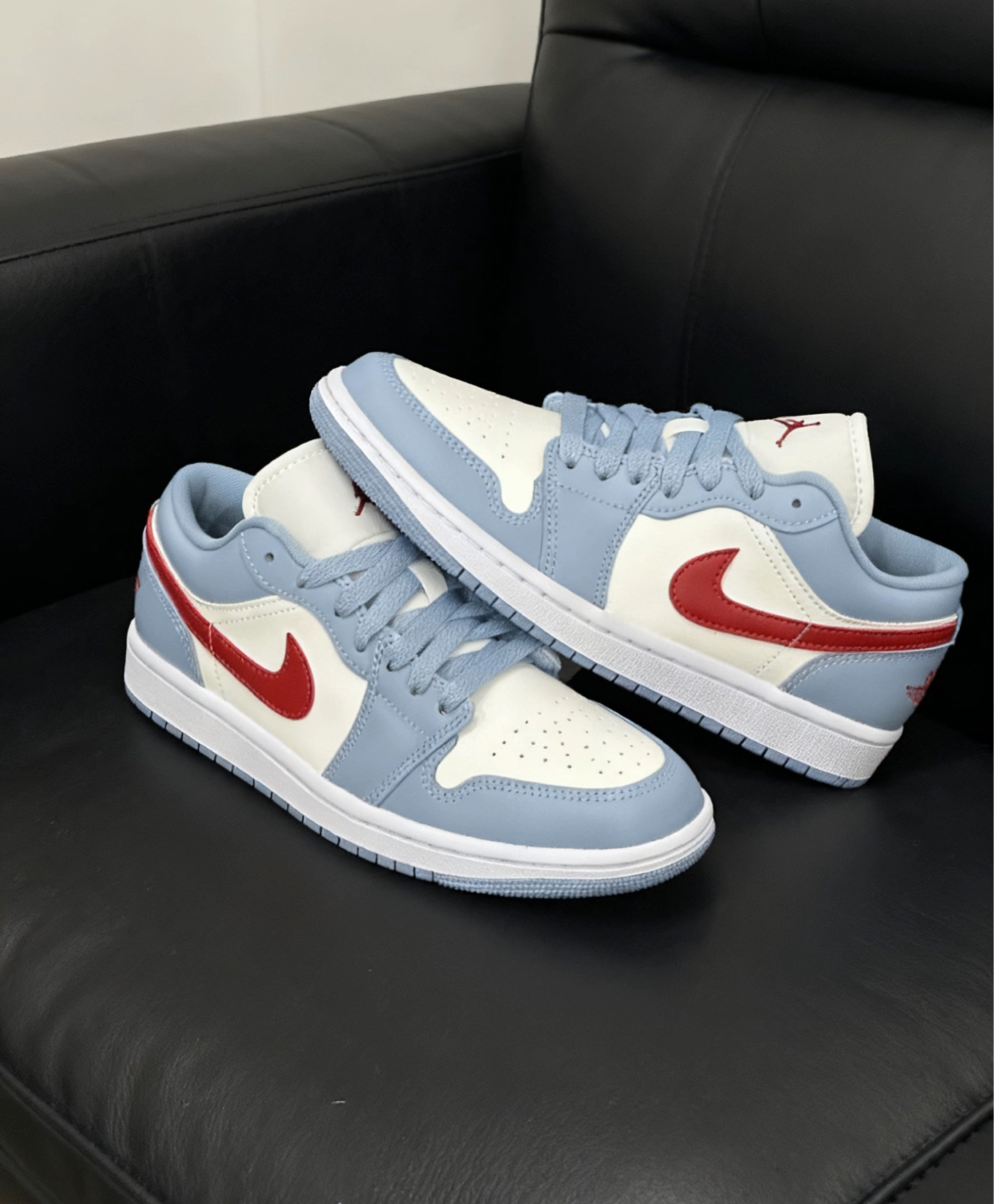 救命🆘这个蓝白配色+红色点缀的AJ1也太好看了吧,真的拿捏了又帅又酷的男大风,怎么搭都好看