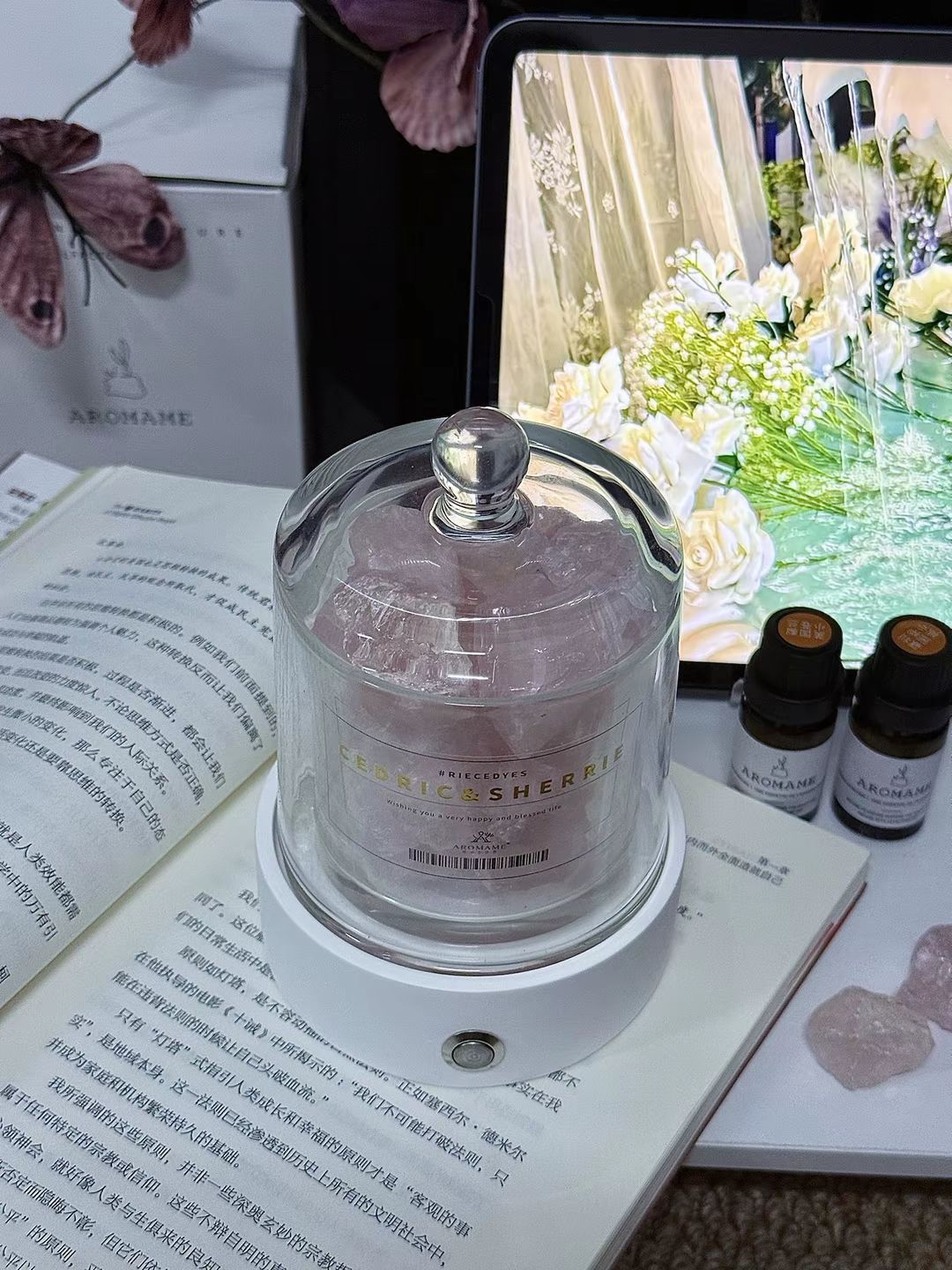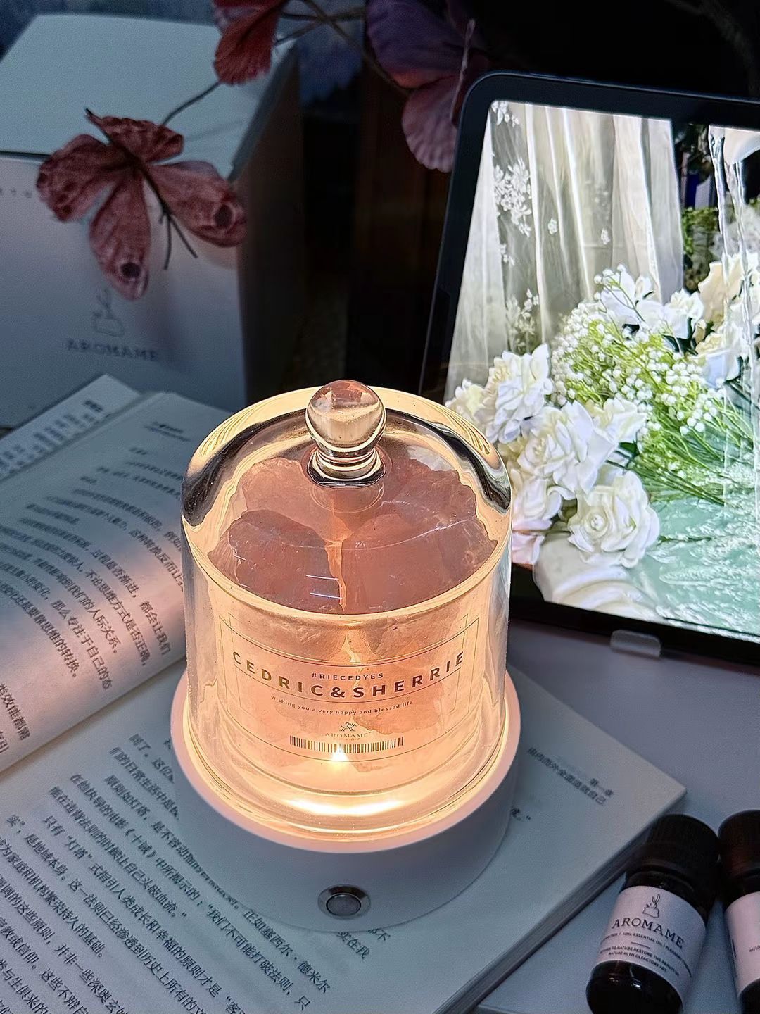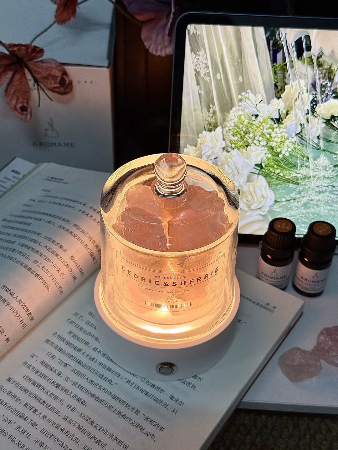 我挖到了敲好看的氛围感香薰摆件 拆开包装放进晶石,滴上几滴精油 英国梨与小苍兰的花果香慢慢扩散到整个房间 轻点夜灯开关,氛围感一下就出来了~ 平时不扩香的时候扣上玻璃罩 摆在桌面当摆件也hin好看呀~ 我觉得当结婚礼物送朋友也很不错呀 好米~