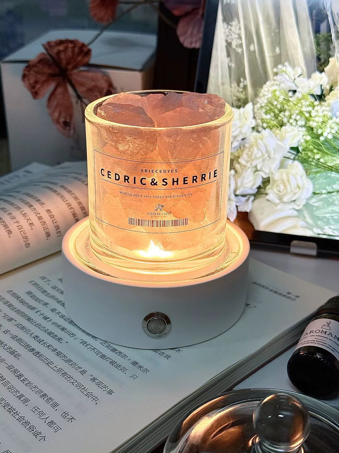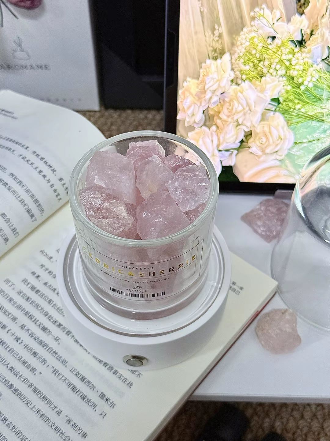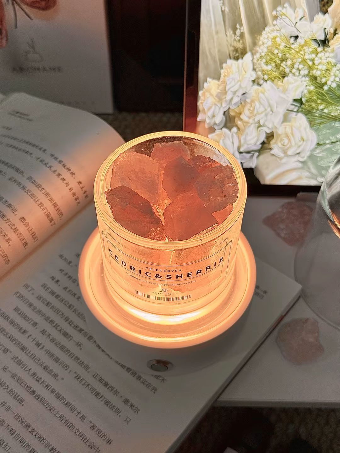 我挖到了敲好看的氛围感香薰摆件 拆开包装放进晶石,滴上几滴精油 英国梨与小苍兰的花果香慢慢扩散到整个房间 轻点夜灯开关,氛围感一下就出来了~ 平时不扩香的时候扣上玻璃罩 摆在桌面当摆件也hin好看呀~ 我觉得当结婚礼物送朋友也很不错呀 好米~