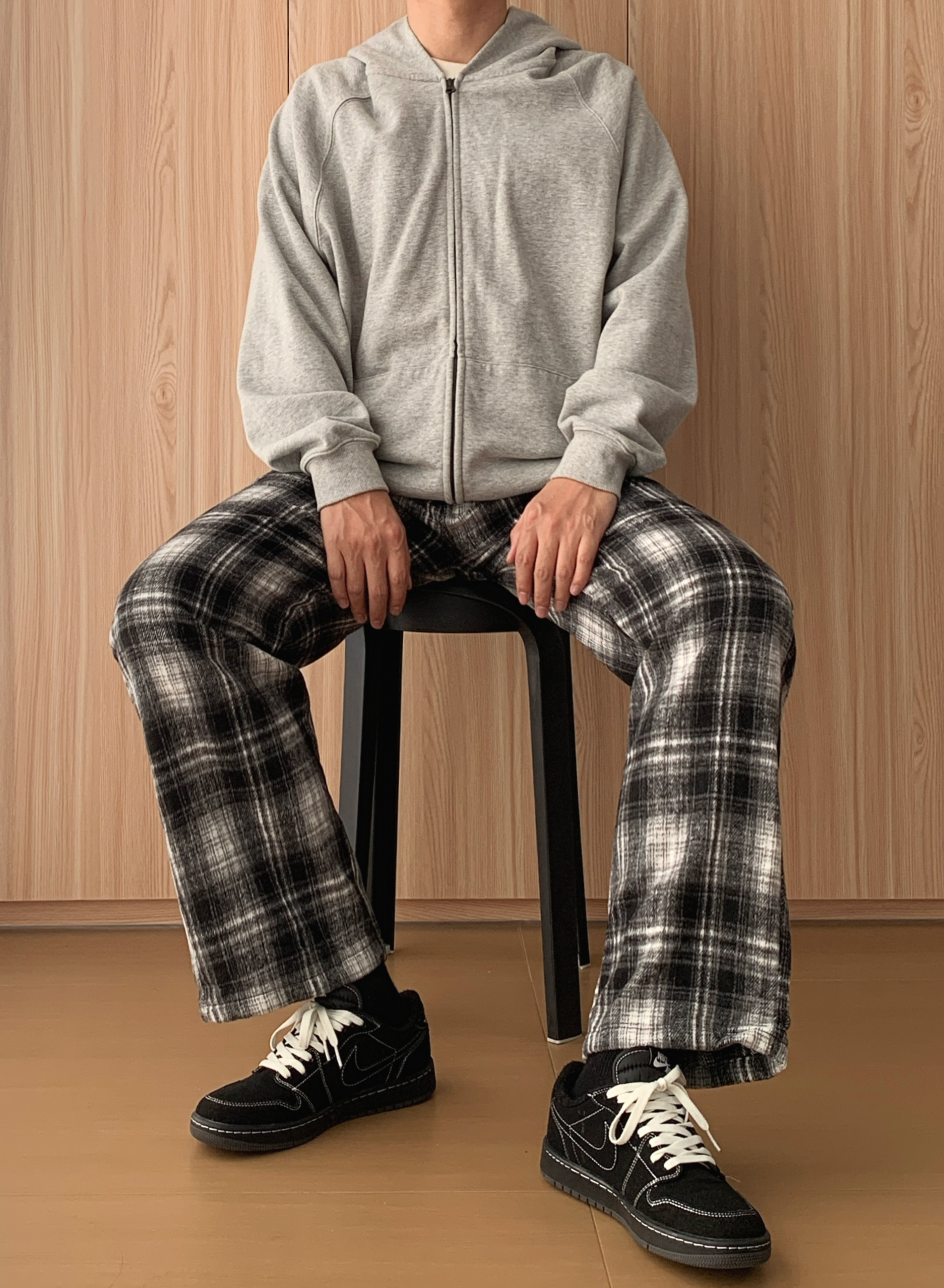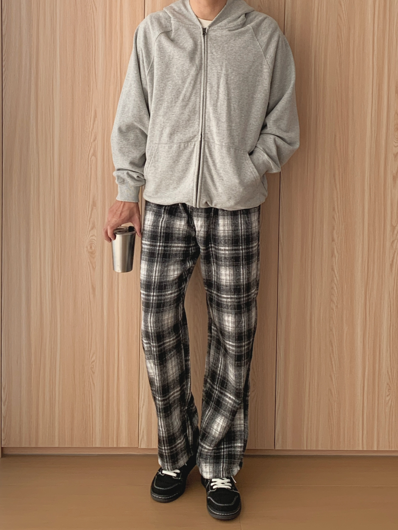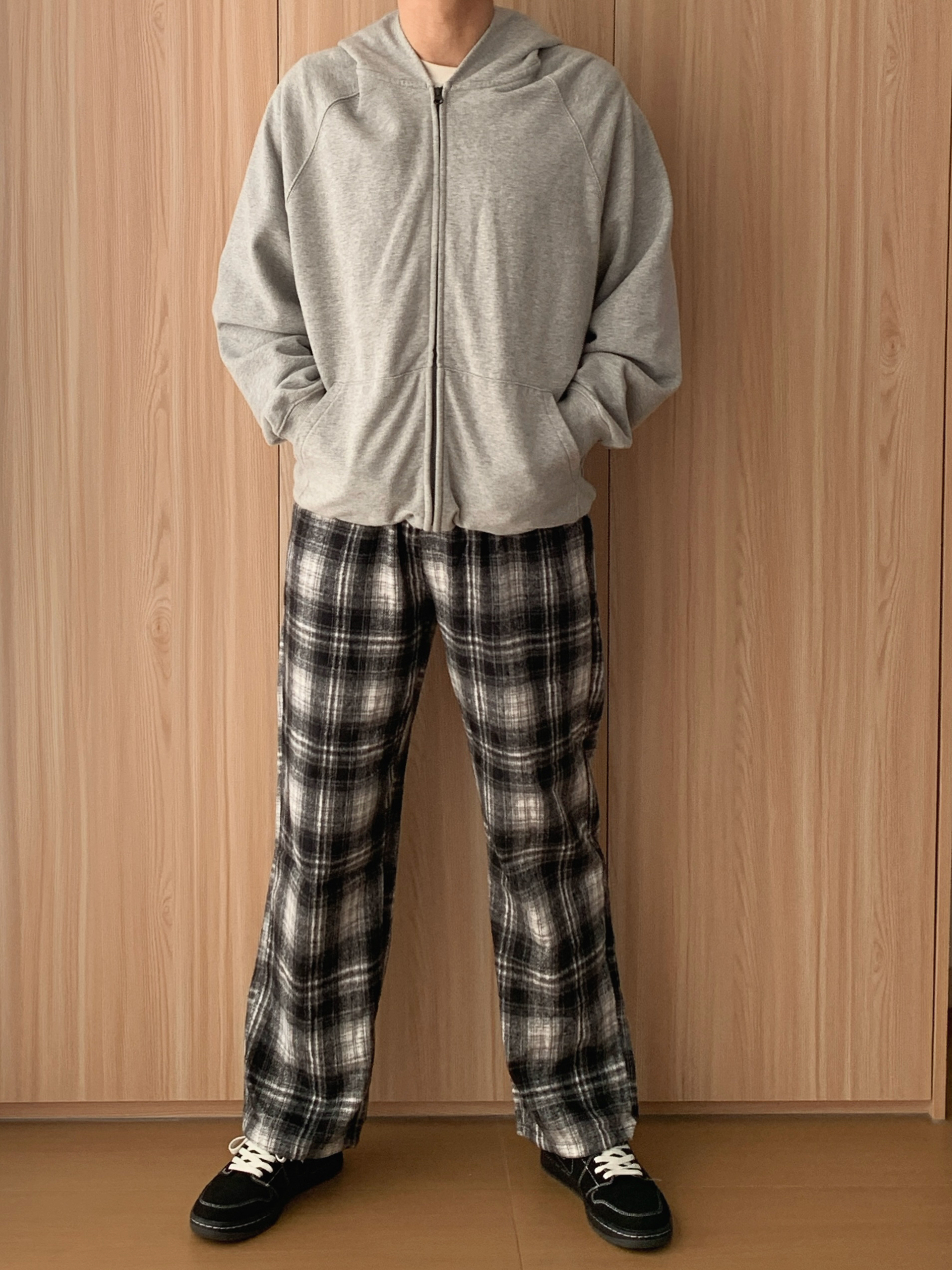 宝子们,周末去家附近的创意市集逛,顺便买杯咖啡放空,这套“躺平式时髦”穿搭我能穿到天荒地老~ 先唠这件浅灰色连帽拉链卫衣🧥,软乎乎的面料像把云朵裹身上!拉链想拉到顶装酷,或者敞着穿露内搭,随性又有范儿~连帽一戴,周末赖床后直接套上就出门,逛市集时谁也发现不了我没洗头(偷偷乐),双手插兜走路,慵懒感直接焊在身上,像刚从被窝爬出来就时髦了~ 再搭黑白格纹阔腿裤👖,家人们,这简直是“腿长作弊器”!阔...