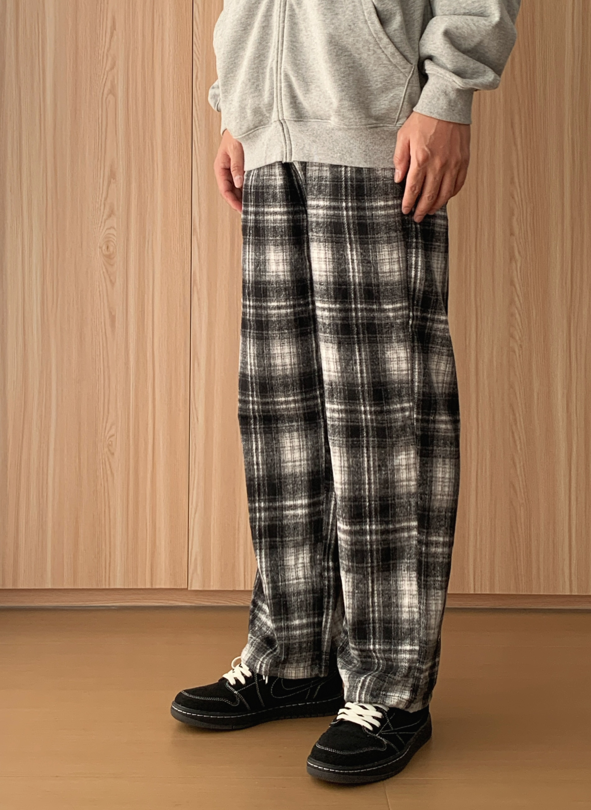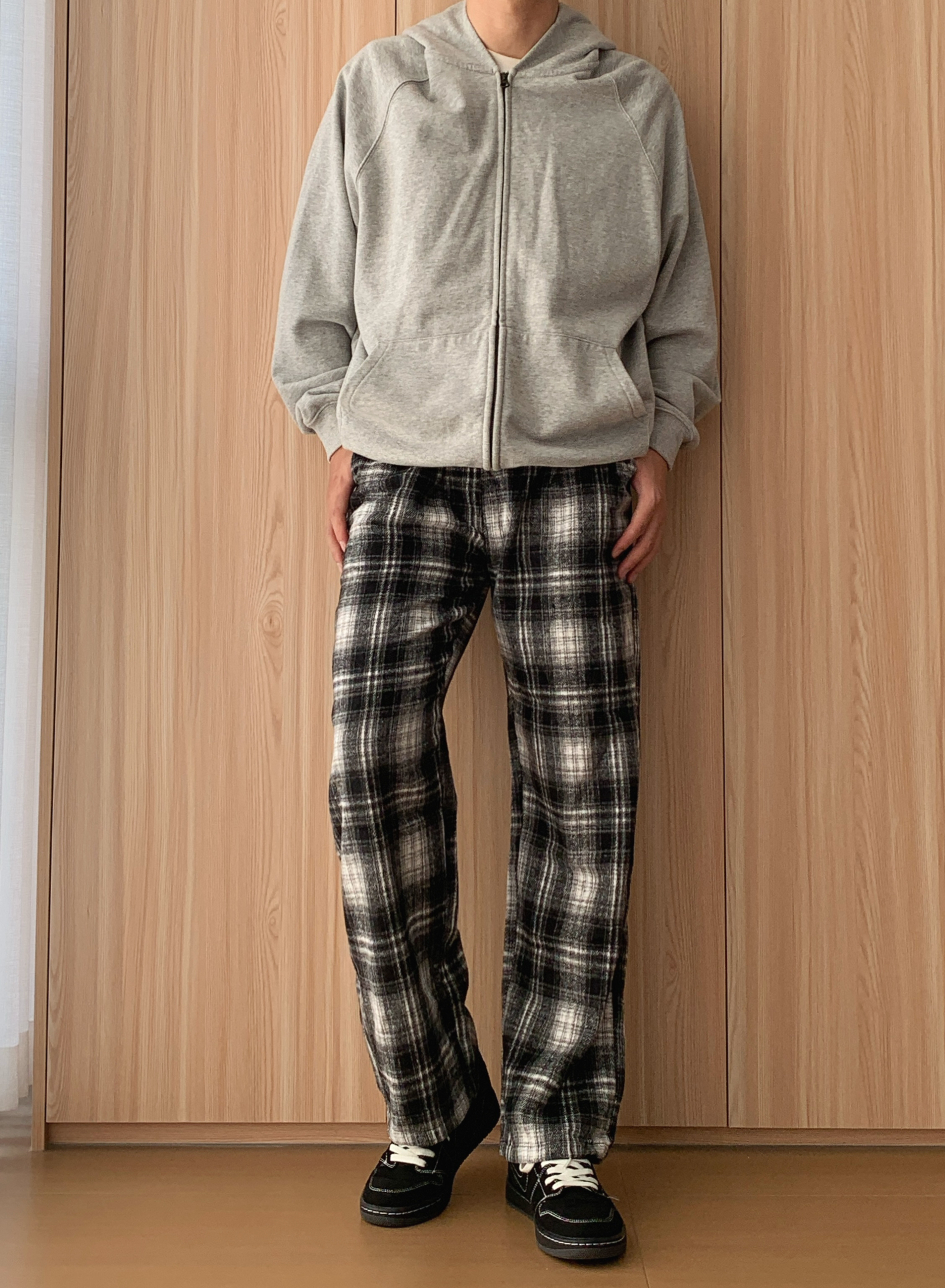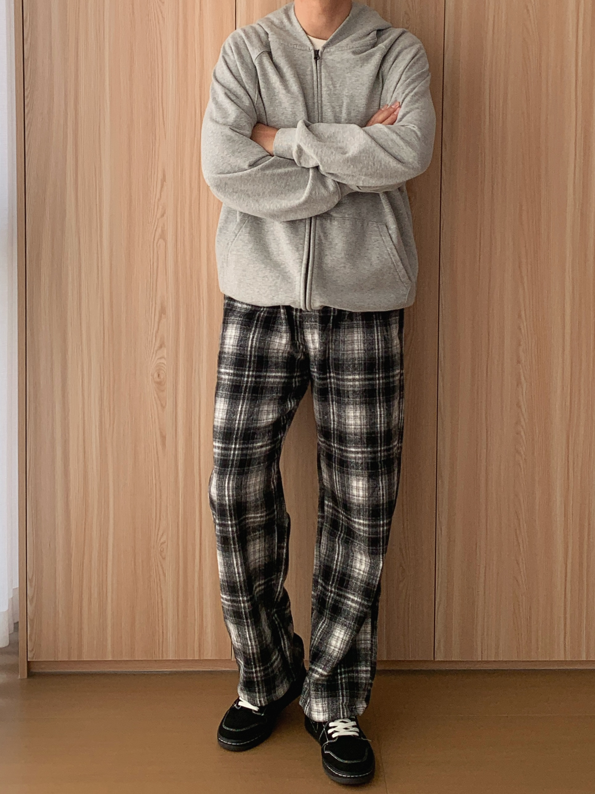宝子们,周末去家附近的创意市集逛,顺便买杯咖啡放空,这套“躺平式时髦”穿搭我能穿到天荒地老~ 先唠这件浅灰色连帽拉链卫衣🧥,软乎乎的面料像把云朵裹身上!拉链想拉到顶装酷,或者敞着穿露内搭,随性又有范儿~连帽一戴,周末赖床后直接套上就出门,逛市集时谁也发现不了我没洗头(偷偷乐),双手插兜走路,慵懒感直接焊在身上,像刚从被窝爬出来就时髦了~ 再搭黑白格纹阔腿裤👖,家人们,这简直是“腿长作弊器”!阔...