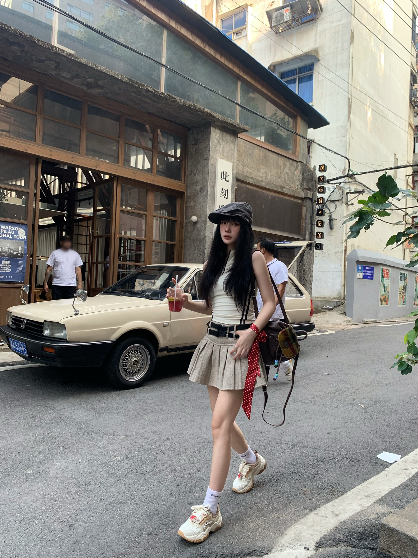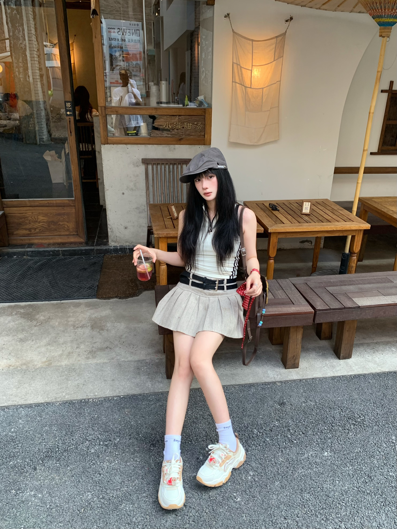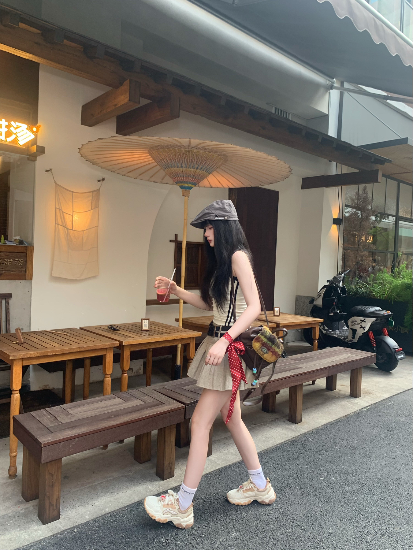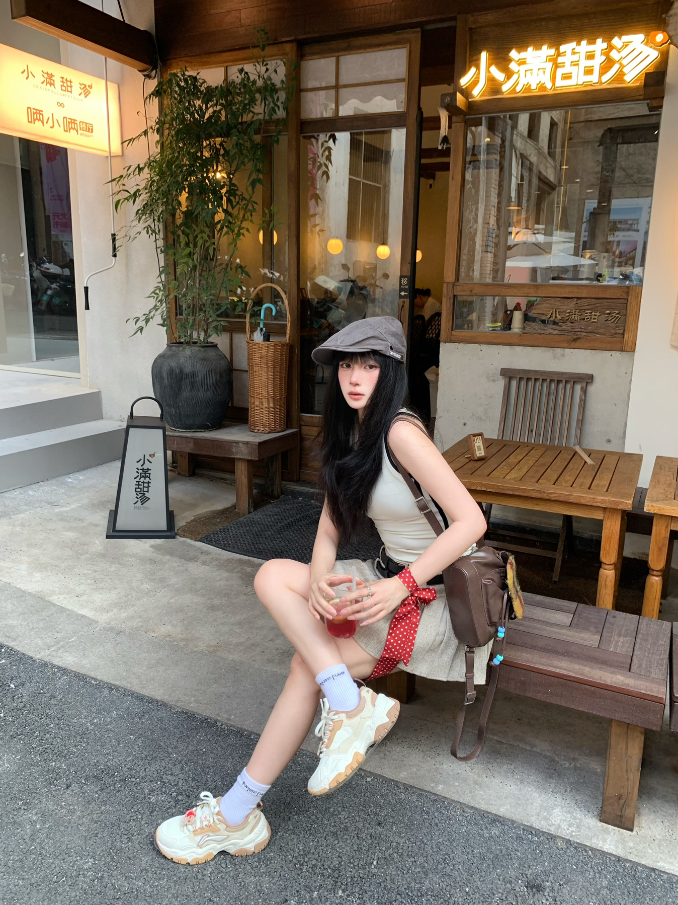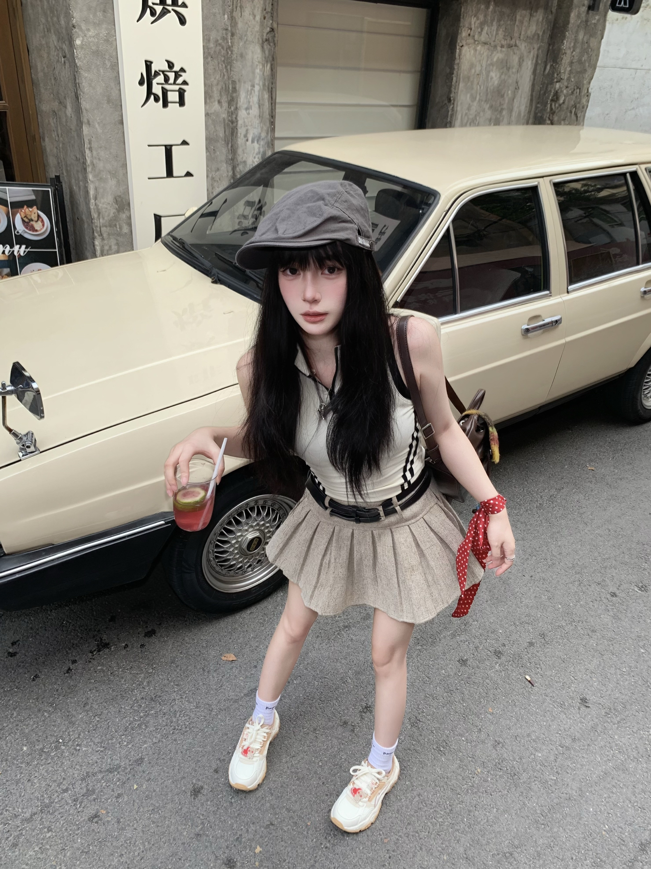 今天穿一身奶茶色系穿搭~ 同色系背心搭配百褶裙好辣🌶️ 穿一双李宁红糖 幸运"姜"至休闲鞋出街👟 为整套穿搭增加休闲松弛感😌 脚感舒适百搭 很适合日常通勤出街~ 而且还自带一点增高效果 显腿长😋 出街这么穿回头率不低奥