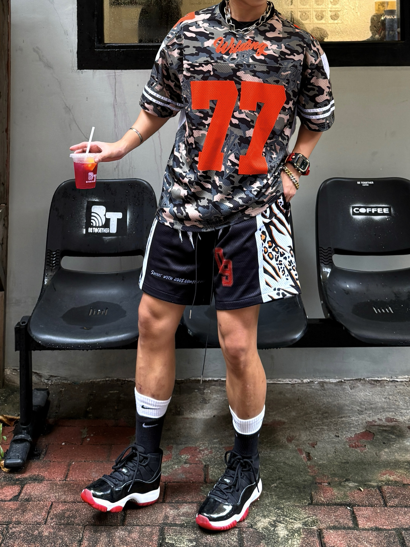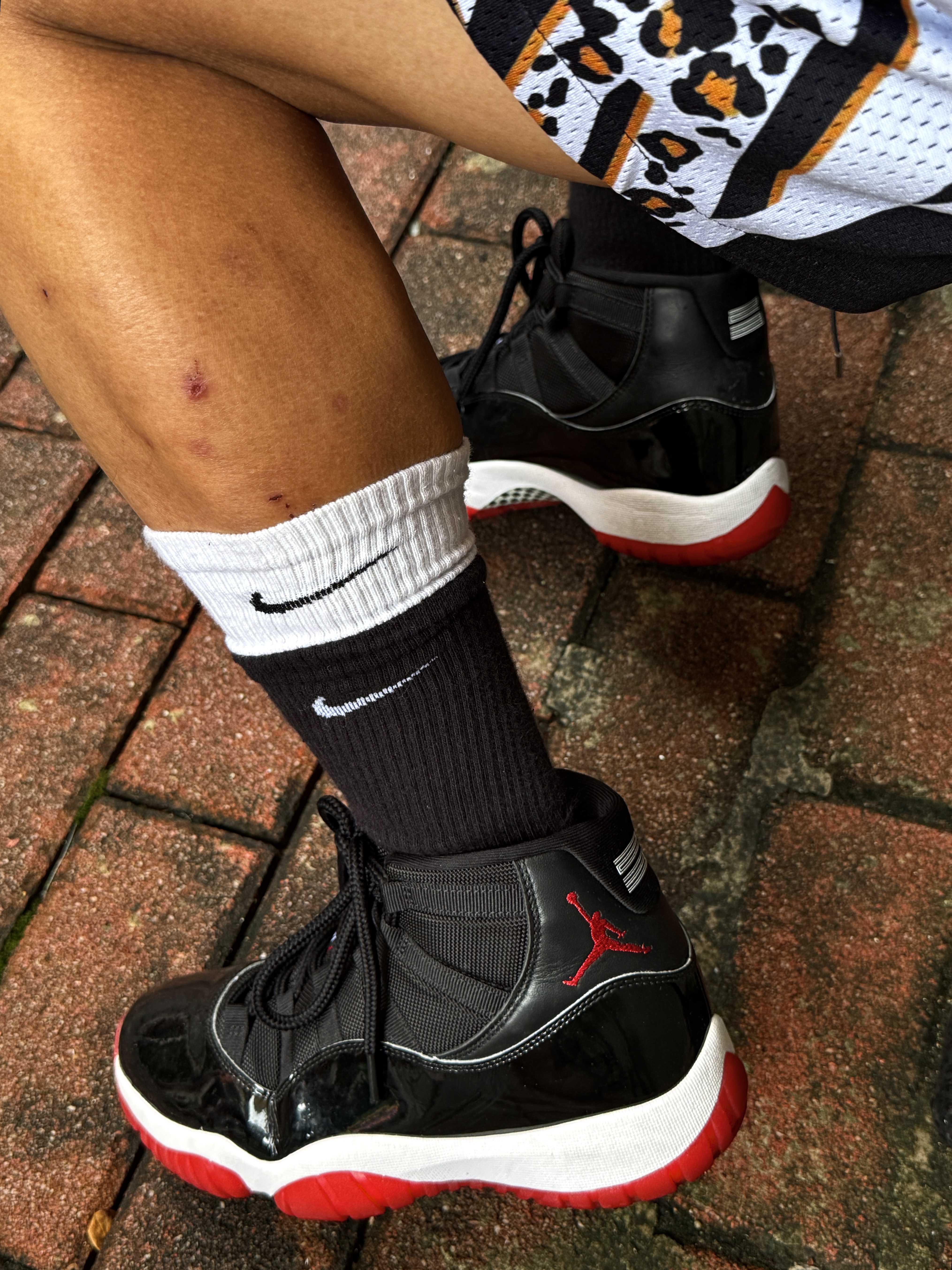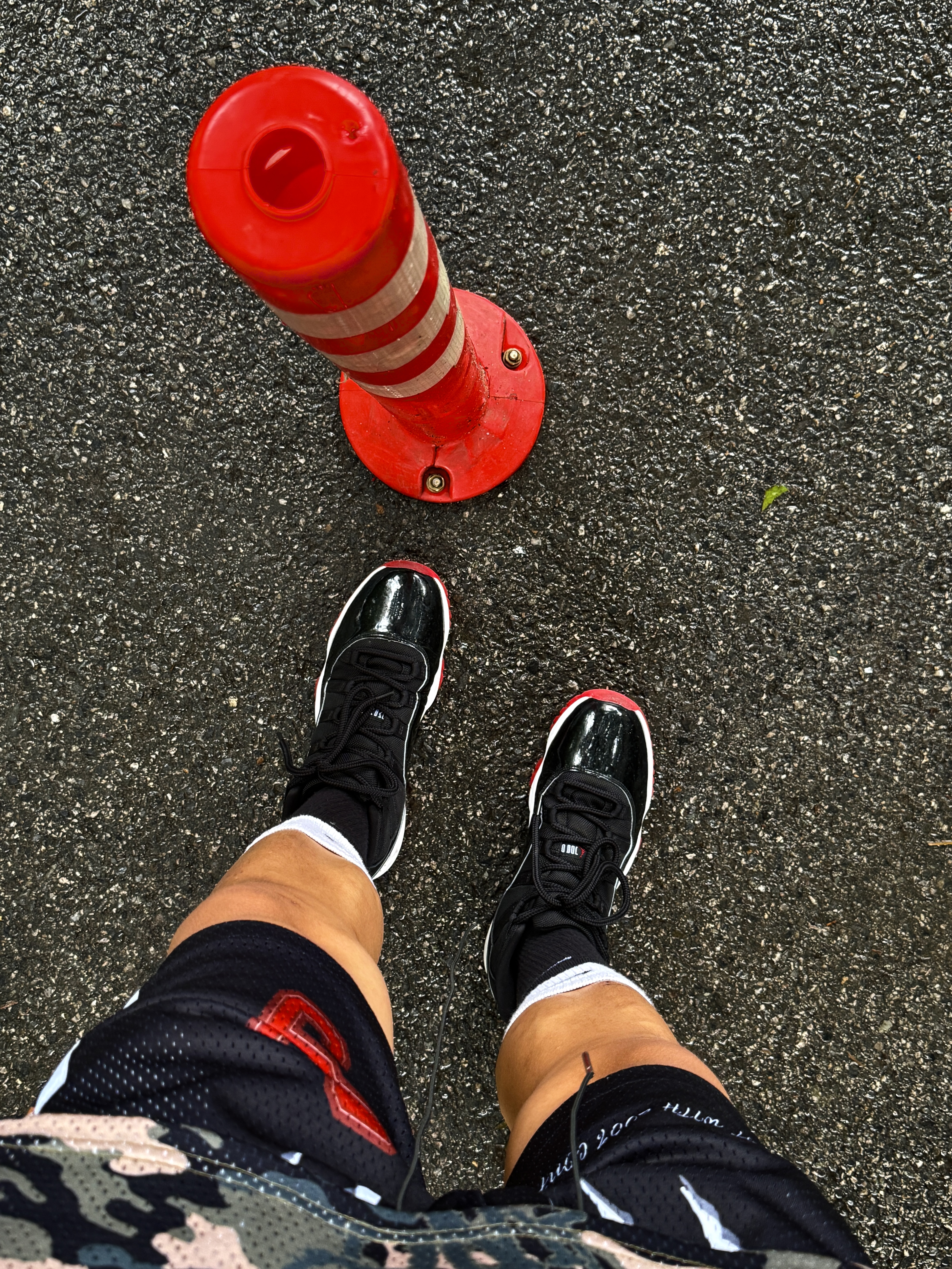 Hey bro‼️这里是小熊的穿搭日记 国庆出游大家都穿什么球鞋or板鞋❓ 今天我穿的是aj11黑红👟 🔗 aj11黑红 大面积黑色漆皮材质 光泽耀眼质感在线 左右对称红色跳跳人 鞋帮绣着白色23号 极具辨识度 正戳在男大心巴上 中底配备全掌Air sole气垫 缓震性能和稳定性也十分在线 🧦搭配Nike黑白假两件运动袜 Dri-Fit速感科技 袜口收腹条设计 经典舒适 又跟aj11黑红...