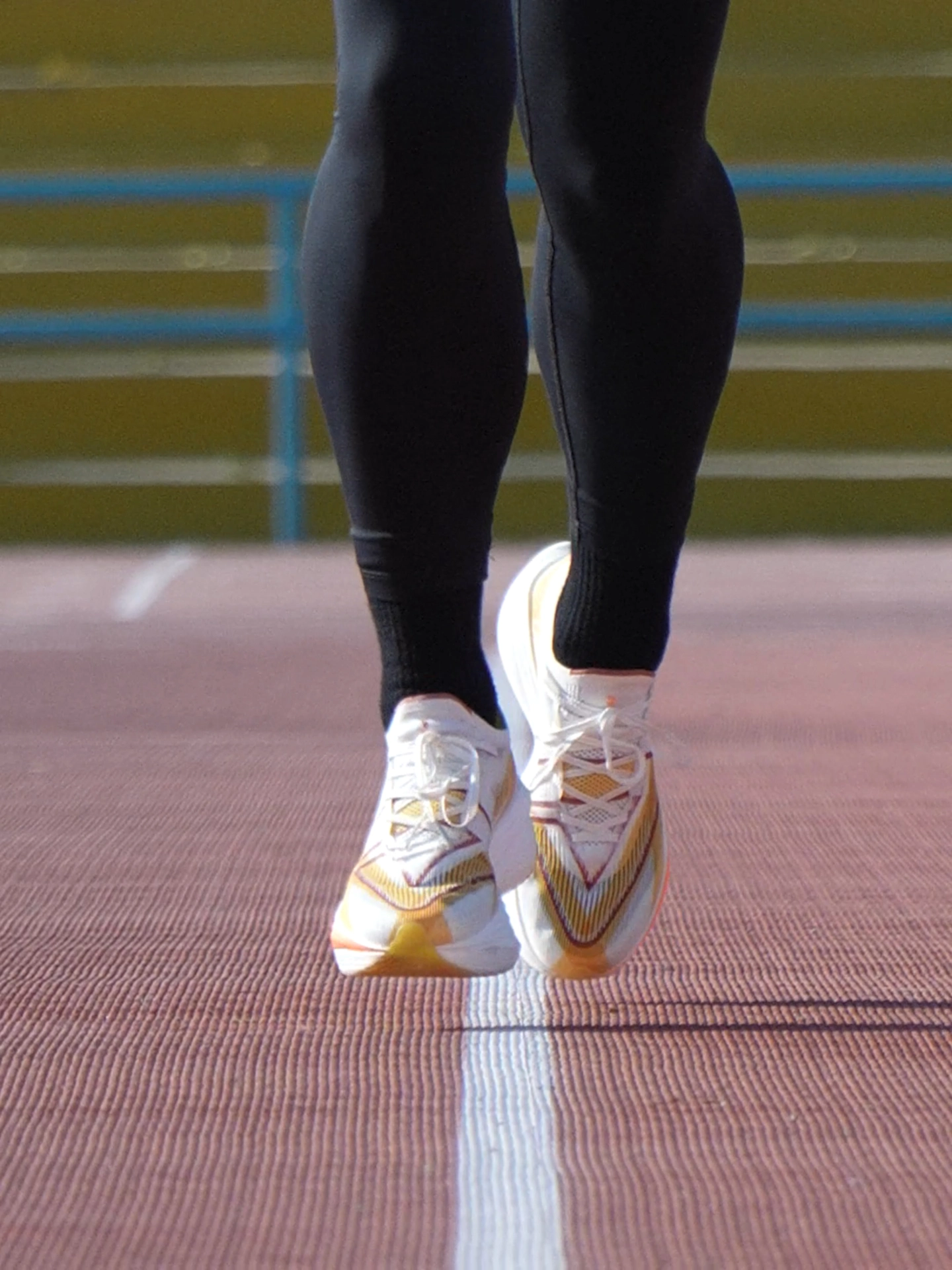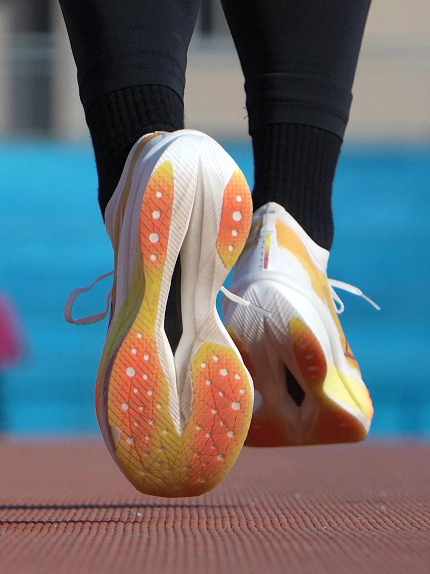 #我的跑马战靴 匹克UP30 4ELITE加厚的中底 并没有带来软弹脚感的提升 中底性能体验都是偏硬弹脚感 压缩形变感非常的小 碳板钢性非常的强 适合踩踏挤压碳板挤压中底材料 带来极强的能量回馈 需要跑者有足够的力量踩踏中底材料 跑动中没有软弹的愉悦感 也比较适合去跑更高配速的训练以及比赛