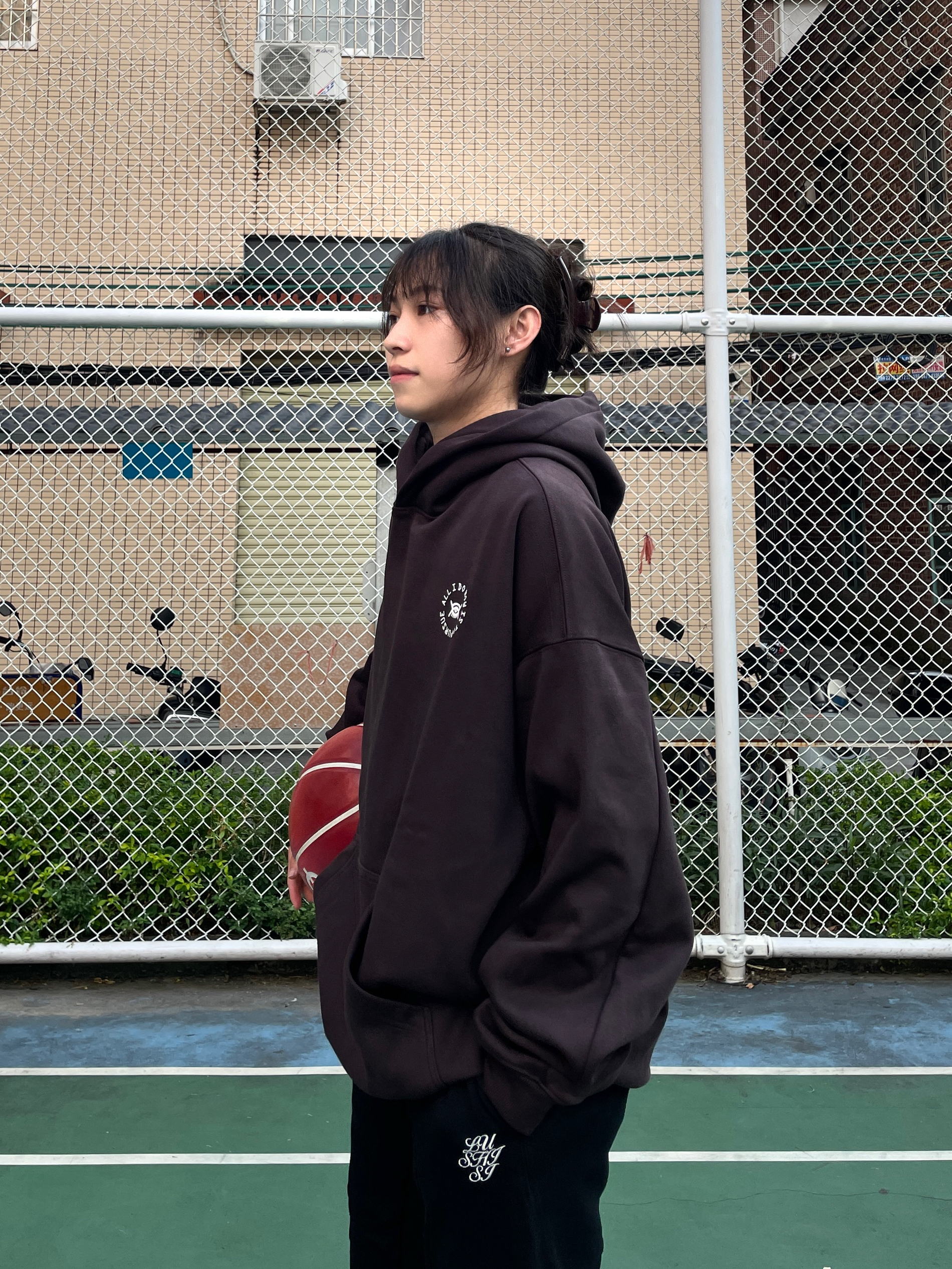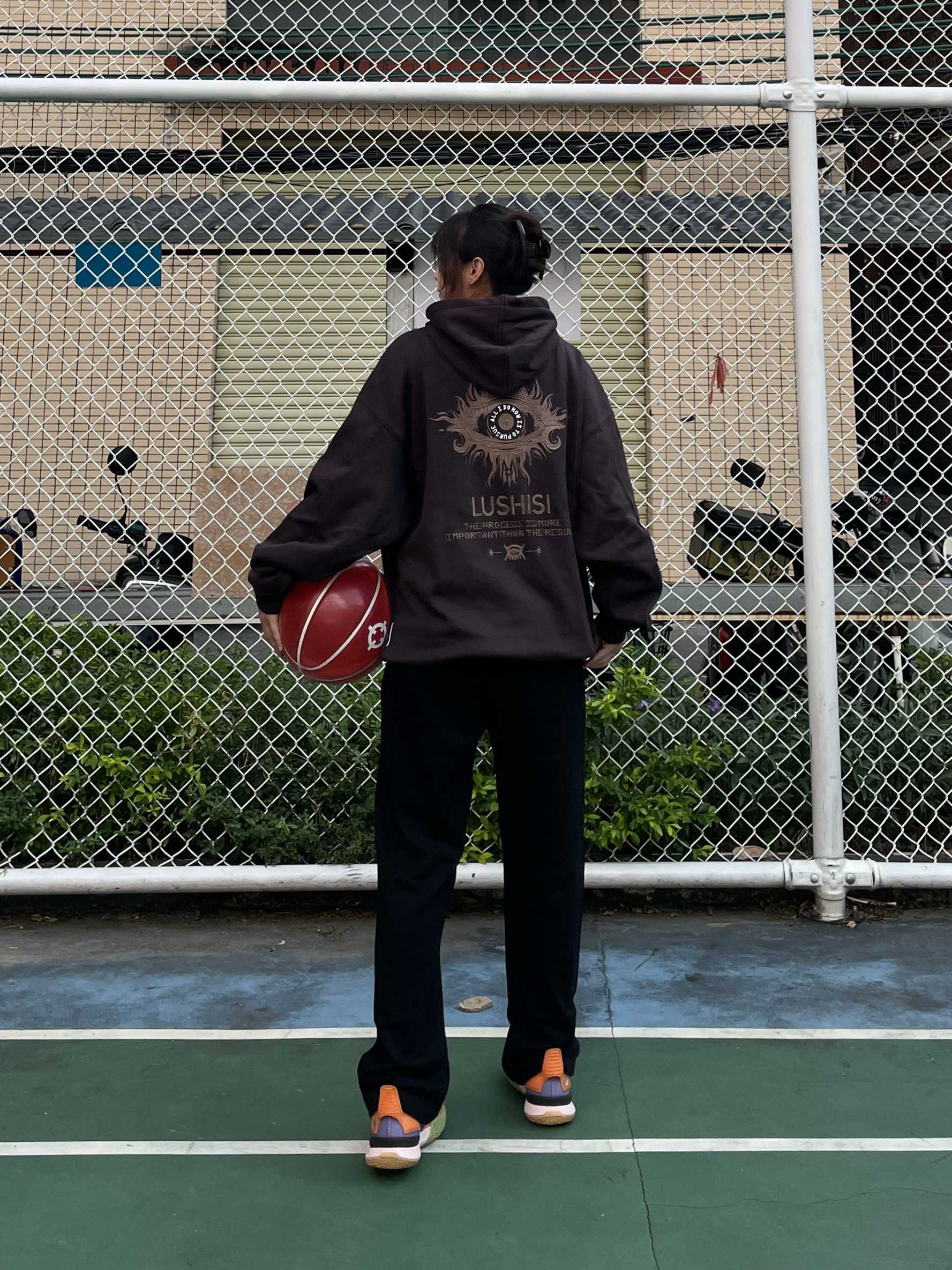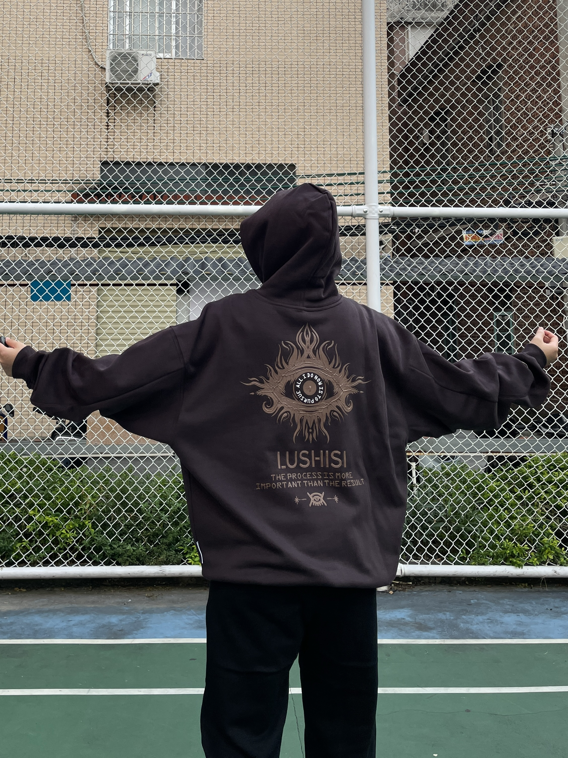 Hello~这里是穿搭女孩Dali - 卫衣就要选背后大logo的才帅😍 上身一件 LUSHISI 美式连帽卫衣 宽松落肩版型 内里抓绒面料嘎嘎暖和✔️ 背后印花摸起来质感很好凹凸有致🆒 平时运动健身、休闲、出街都可以穿 码数很正!我165/51穿M刚刚好~