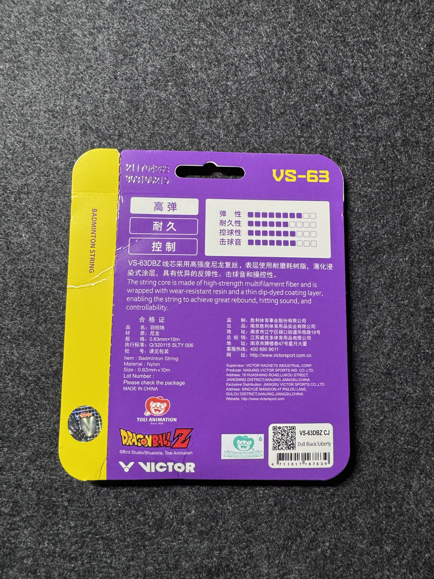 本篇笔记关联了VICTOR/威克多 龙珠Z联名 耐打 高弹 尼龙 极细 羽毛球拍线 VS-63DBZ 暗黑自由紫等商品,为用户提供真实的使用体验和购买参考。