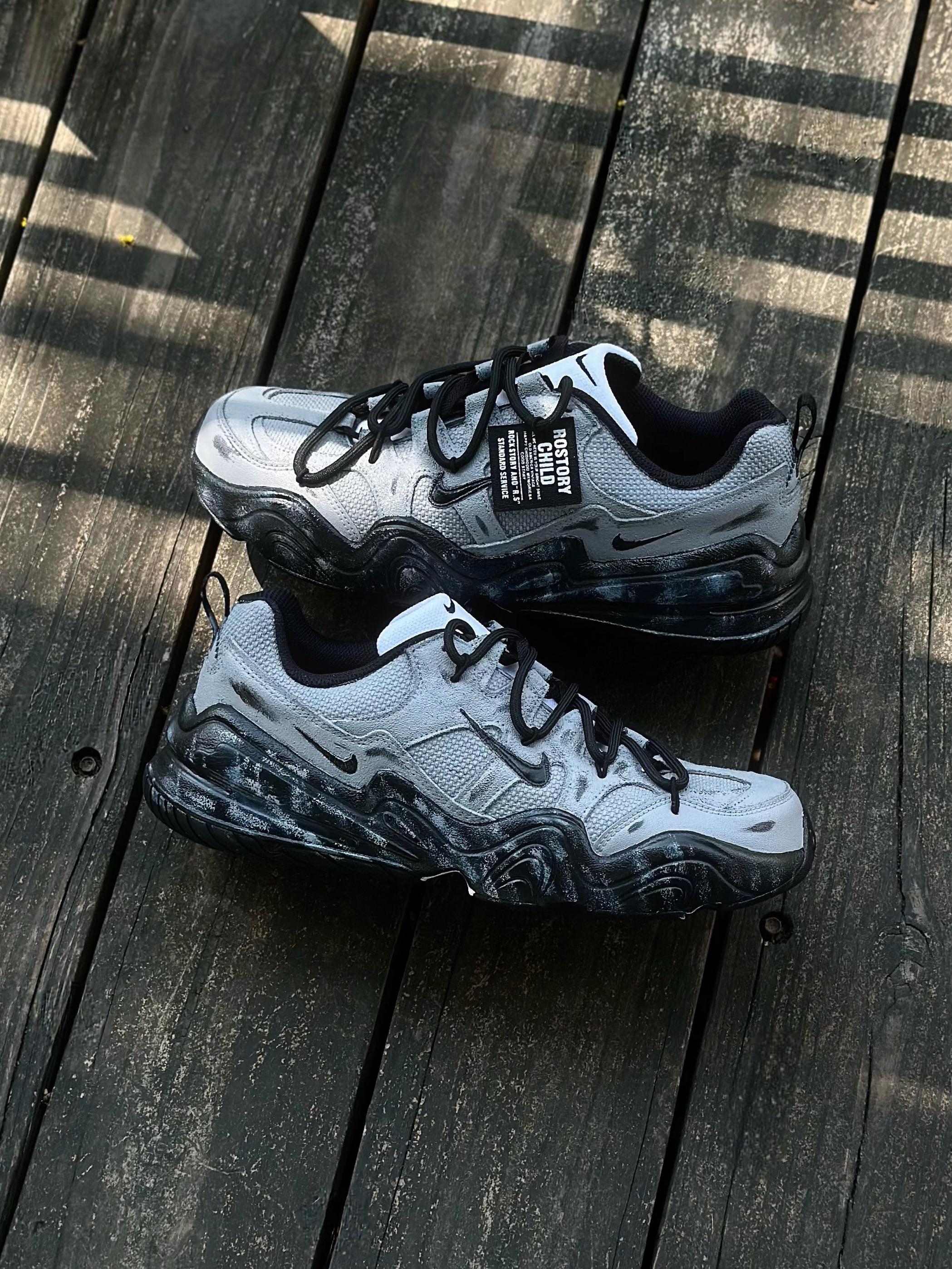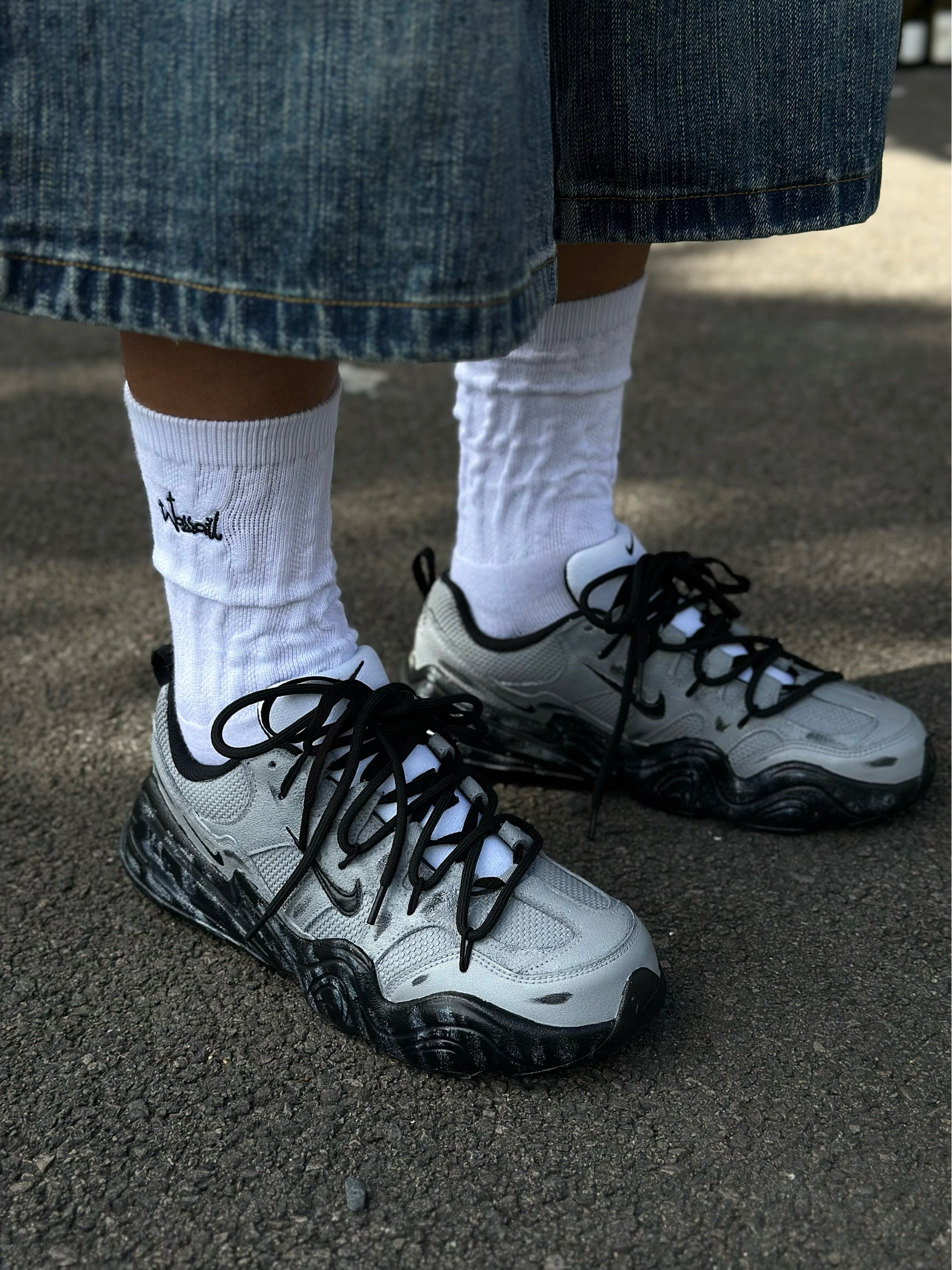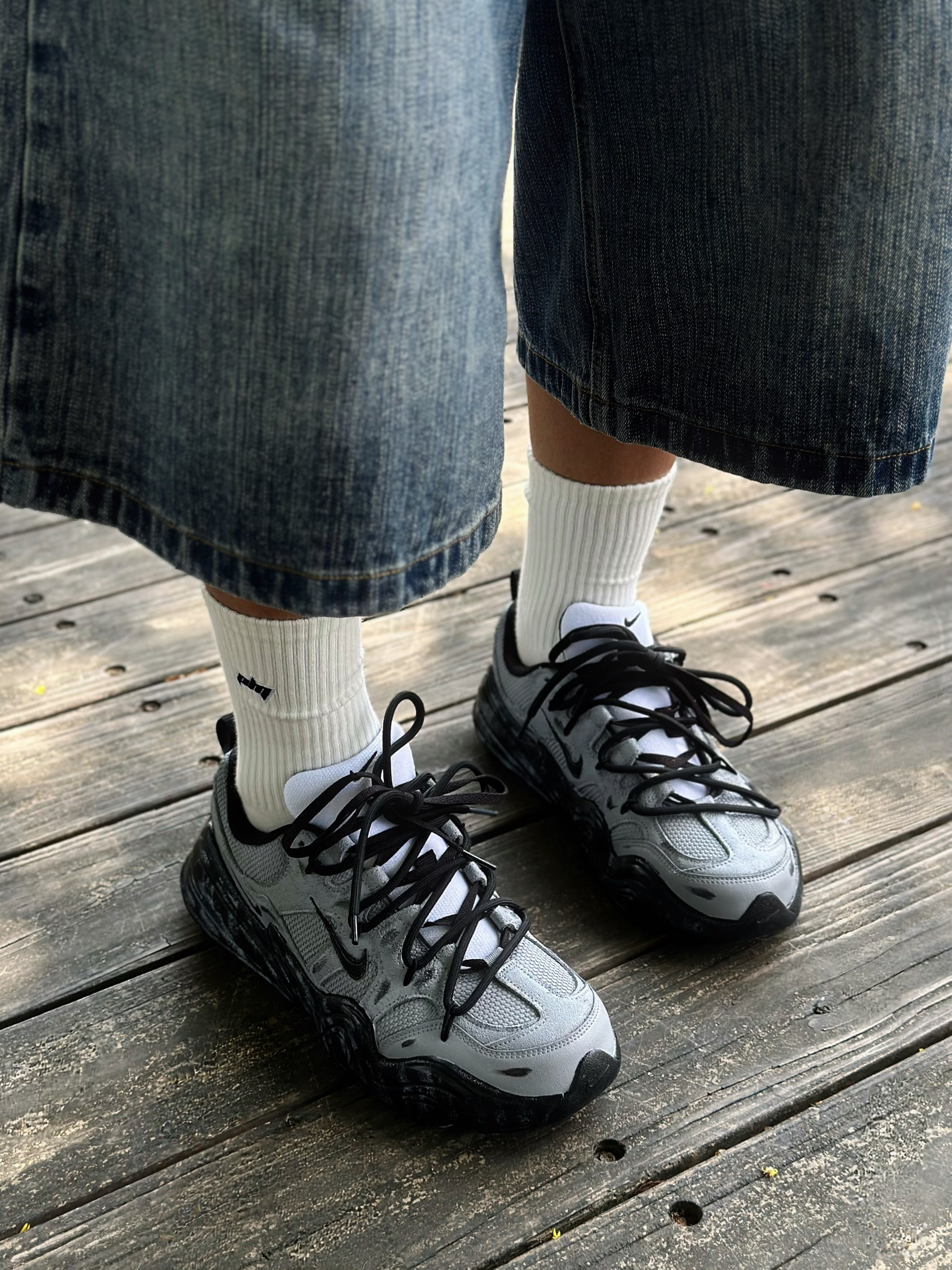 秋冬鞋柜里真的太需要双老爹鞋了! 它可以和阔腿牛仔、工装裤搭慵懒又街头 又可以配束脚卫裤有一种酷酷的运动感 最近挖到的这双Nike定制老爹鞋就挺契合 灰黑色的鞋身搭配上解构双鞋带设计 看起来既复古同时又为通勤穿搭 增添了定制感与机能美学✨ 另外在鞋面和中底 还加入了不经意洒落的泼墨细节 为厚重的秋冬穿搭又注入一抹灵动的艺术气息