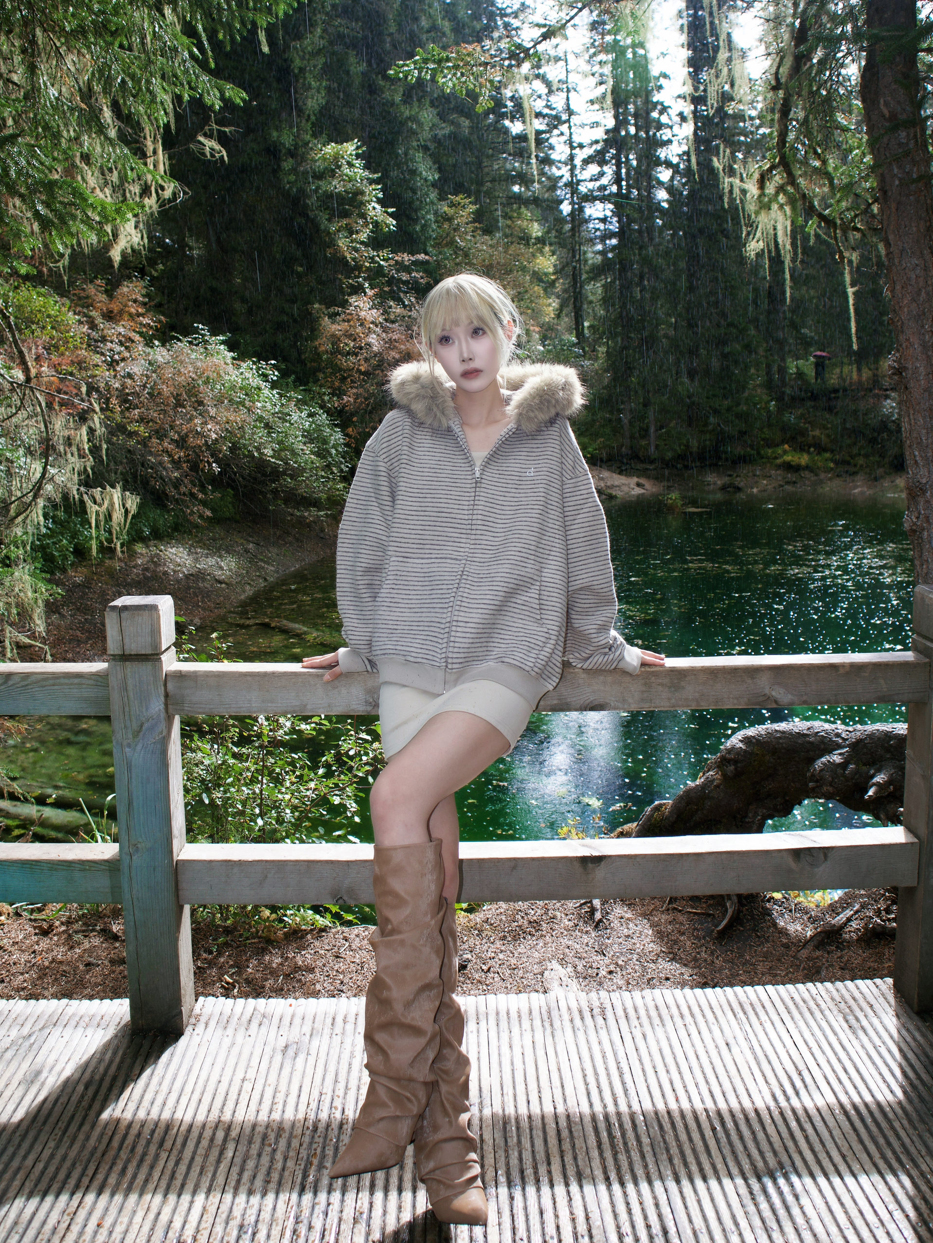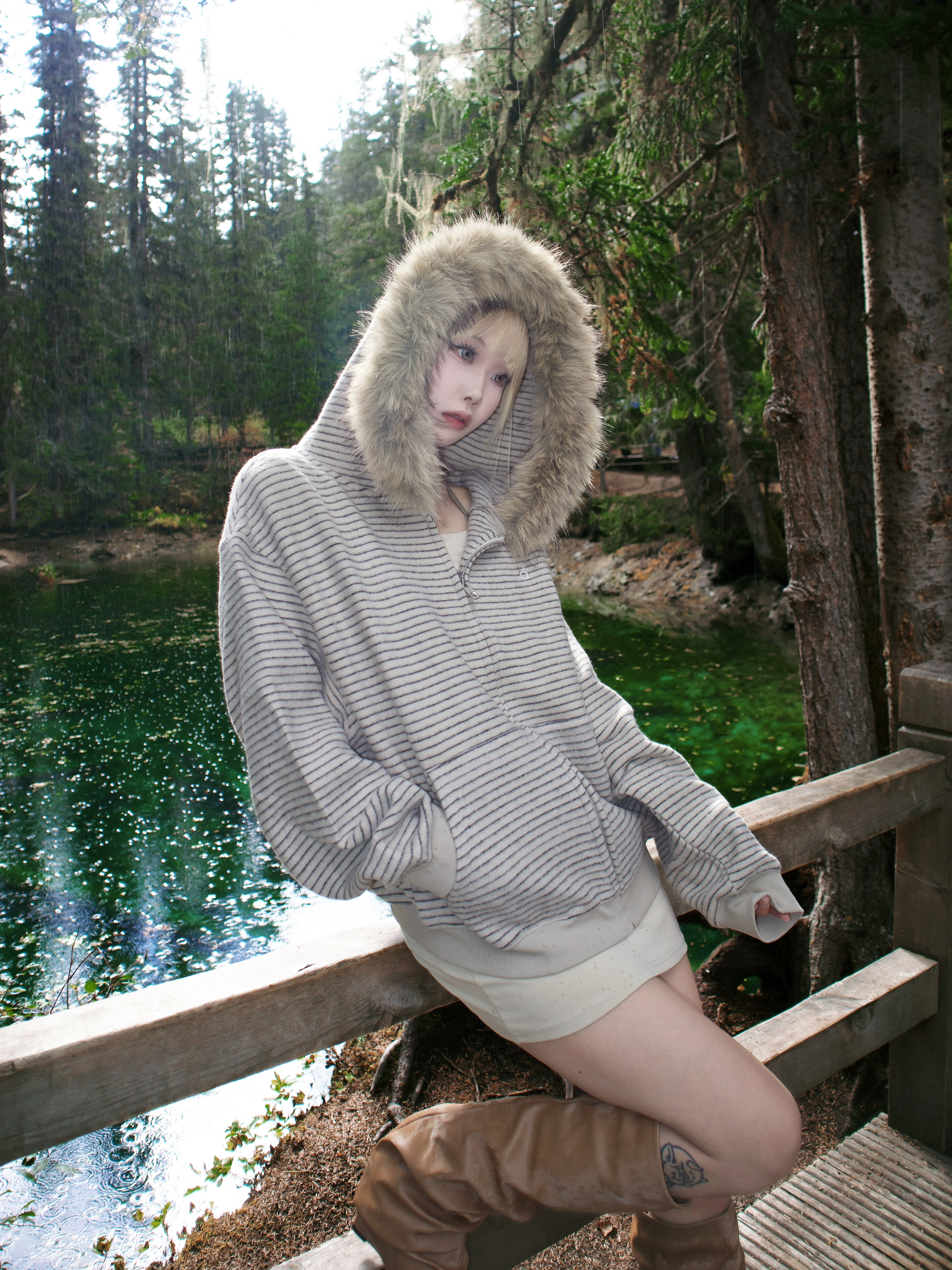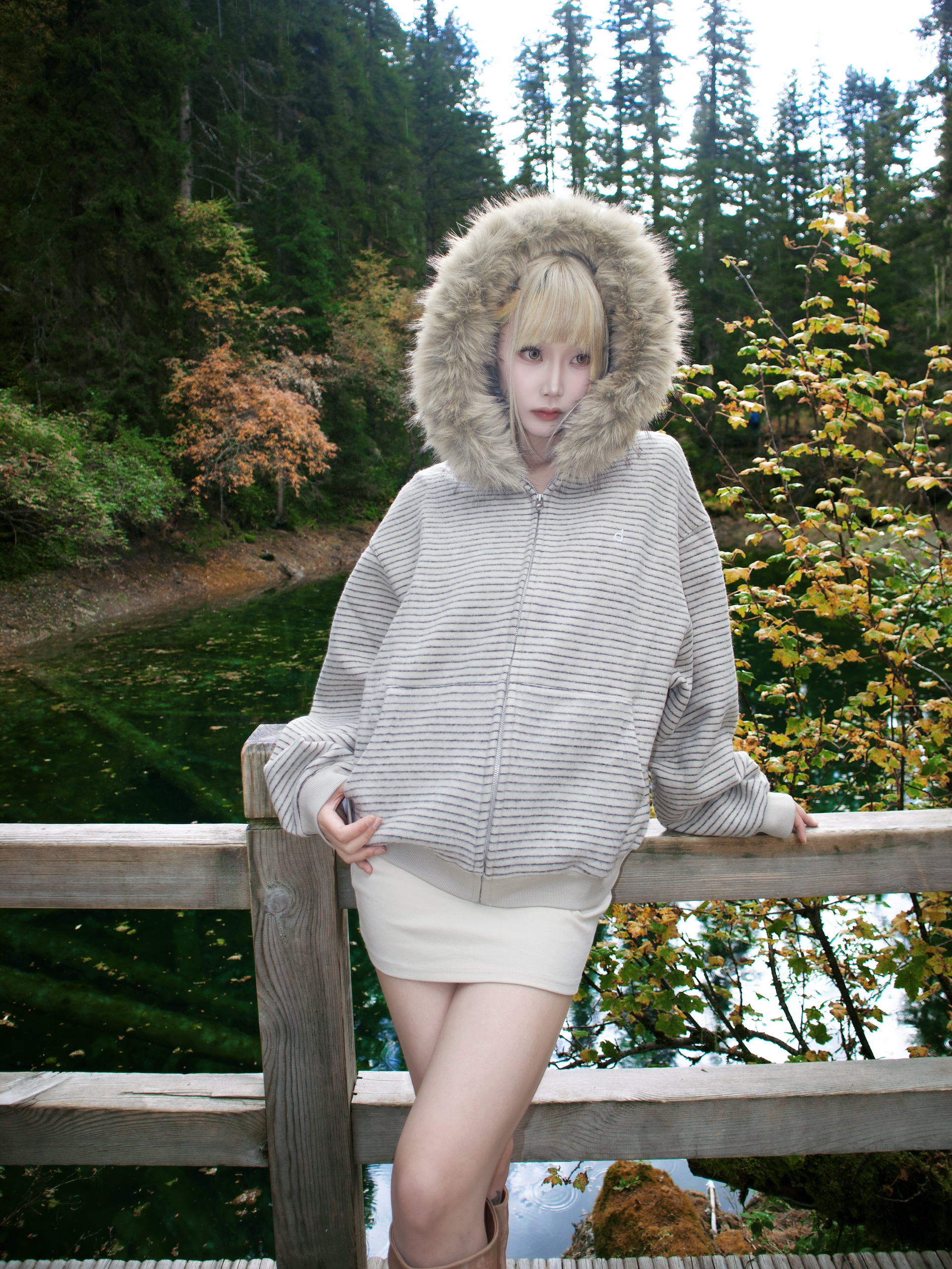 去二道海这种地方 穿搭既要舒服能走 又想拍出好看的照片 这套杏色系搭配真的完美达标!🤎 杏色的连帽卫衣外套 毛领帽子一戴 不仅保暖 氛围感立刻拉满 😻 里面我直接搭了件同色系的连衣短裙 看起来特别温柔 又省去了上下搭配的烦恼 浅棕色的尖头坡跟及膝靴!👢 它的皱褶设计和堆堆感 让靴子一点也不死板 特别时髦 坡跟走起路来太稳了 在户外完全无压力 而且超级显腿长! 浅棕色和杏色外套呼应得像天生一套