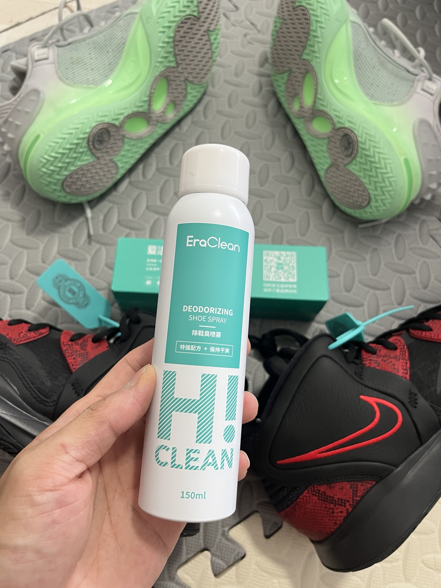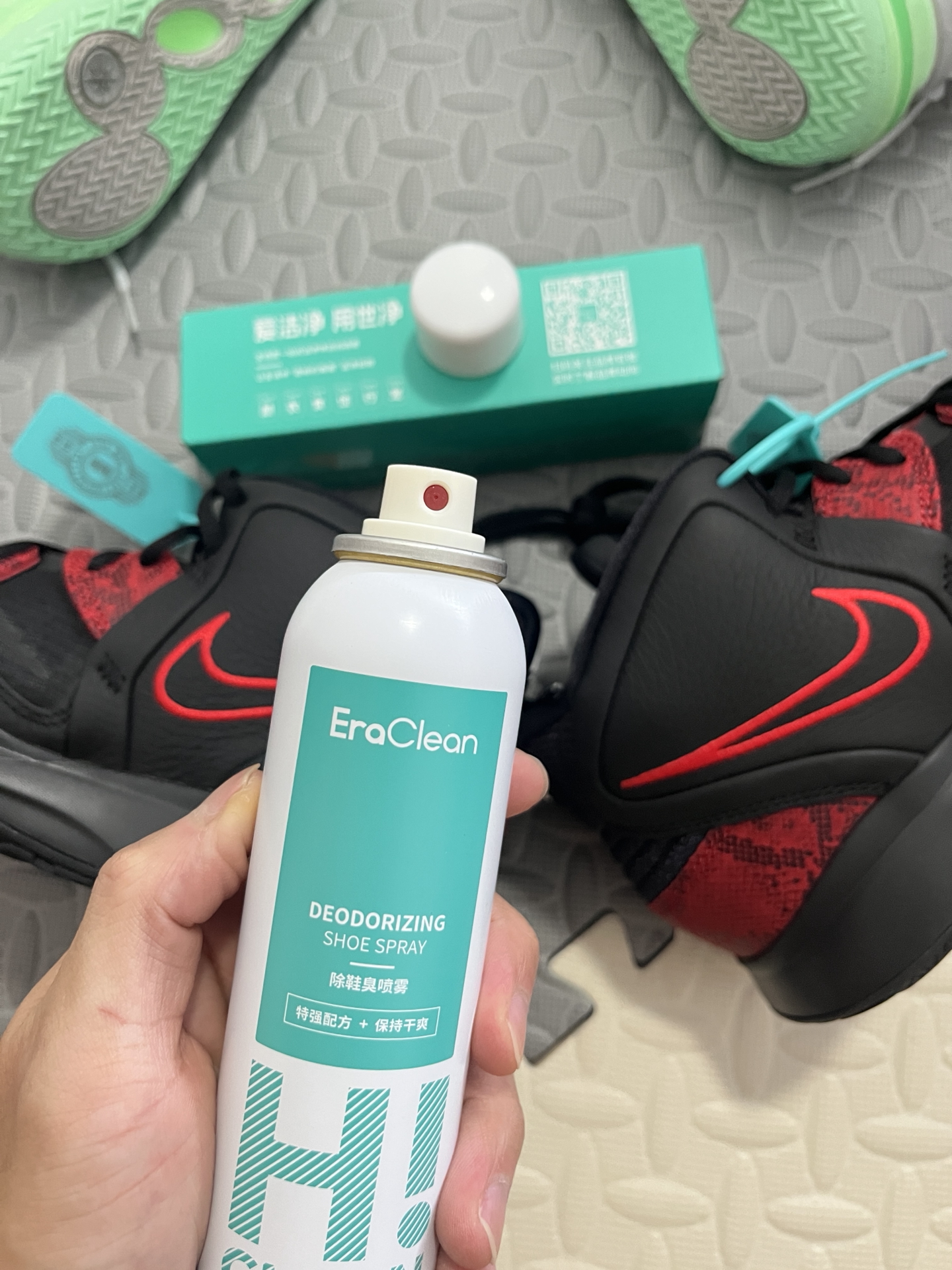 兄弟们,今天给大家分享一款篮球男孩日常护鞋神器,就是来自EraClean家的球鞋除臭喷雾哟 首先,这款鞋袜除臭喷雾容量150毫升相对较小,所以携带起来比较方便,打完球之后可以及时对球鞋进行除臭杀菌奥,含有的银离子能够有效除菌💕 其次,这款喷雾使用起来没有刺鼻的味道,大家可以放心使用,而且个人觉得这款喷雾能够很好的去除运动或者平时穿着带来的异味,让我可以减少对球鞋的清洗次...