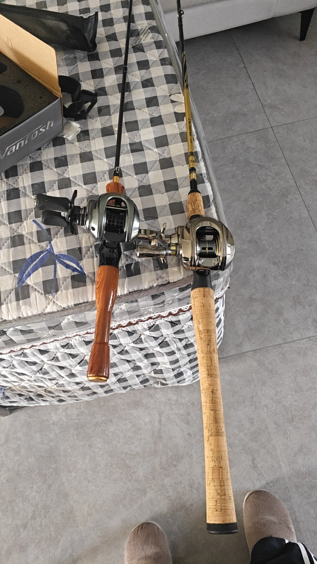 刚入的这款路亚竿到手啦~拿在手上试了下,手感真不戳👍 等过几天去实战测试下性能,期待住了✨ 就是包装要是再精致点就更好啦~