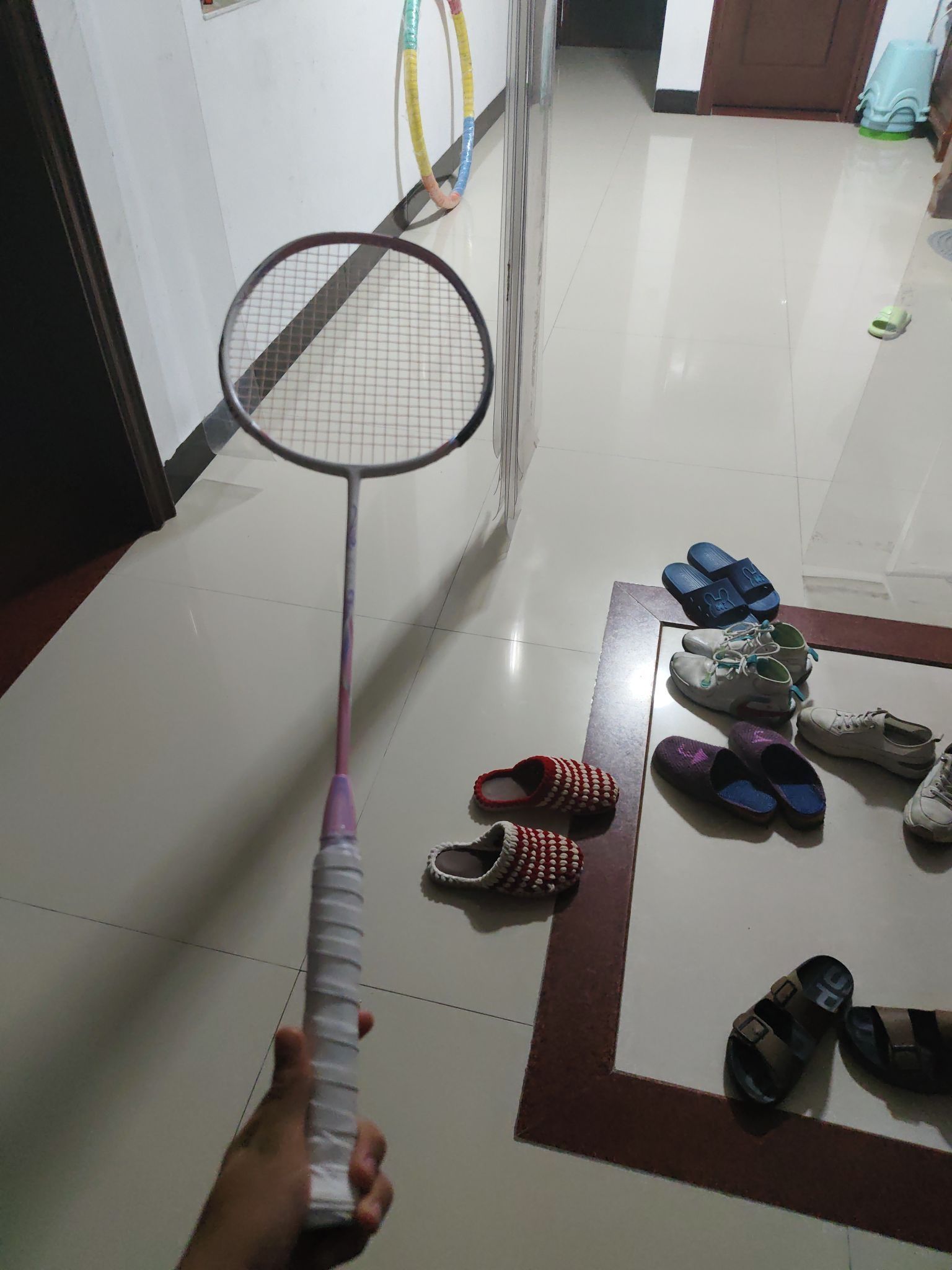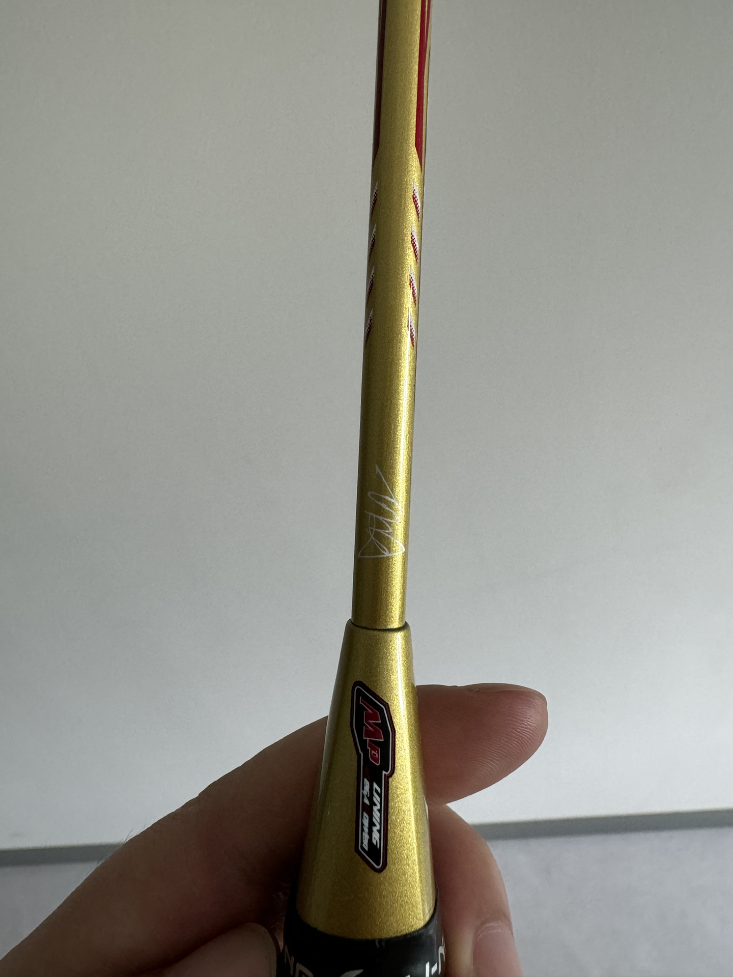 我入了支有林丹印签的羽毛球拍,咱也不确定林丹用过没~阳光下它金灿灿的,颜值这块狠狠拿捏住! 不过打久了手汗多的时候,握感会有点滑,得自己再缠个吸汗带。 但平时和球友约球,这拍拿出来贼有面儿,运动魂都被点燃啦🔥!