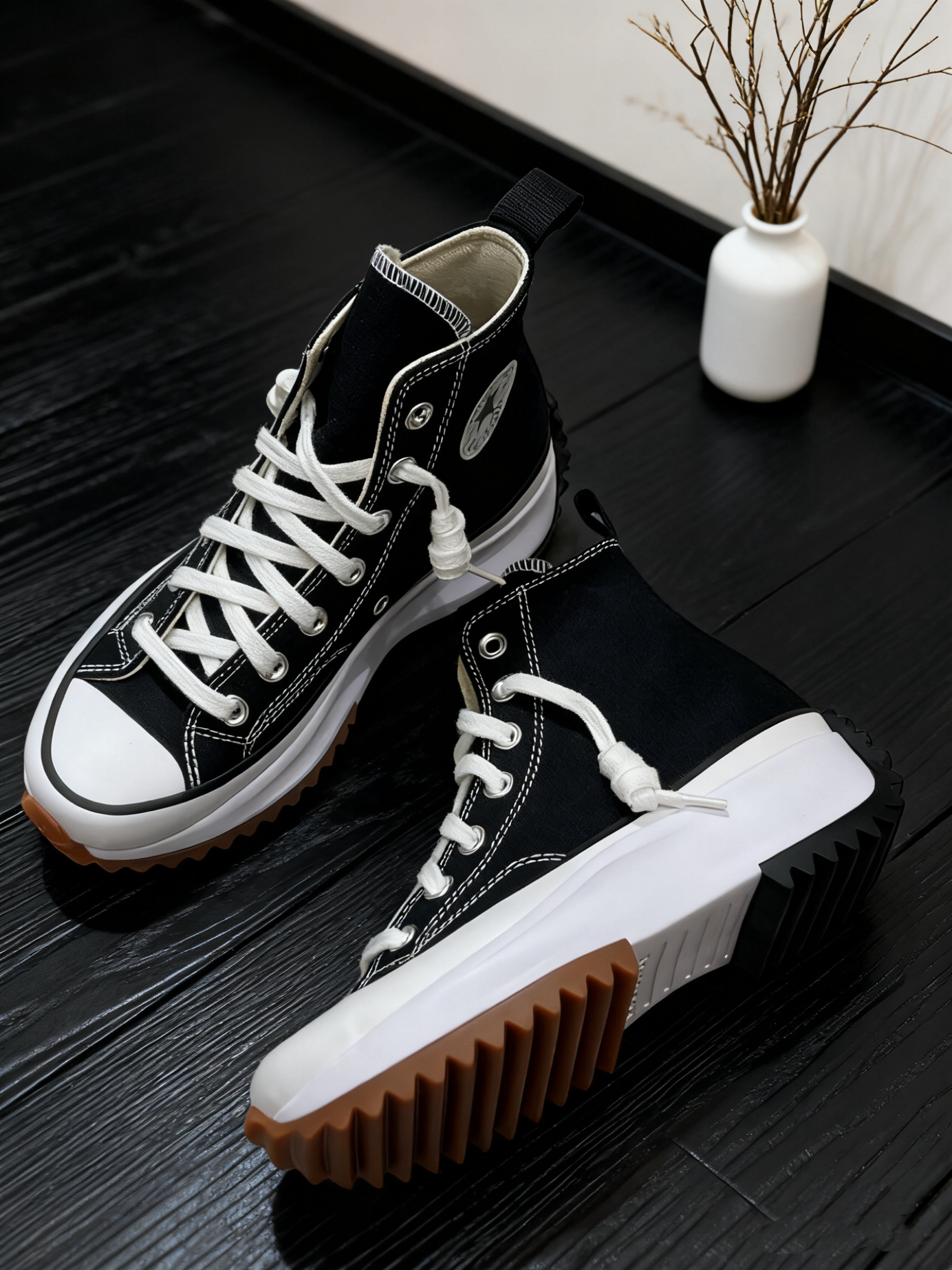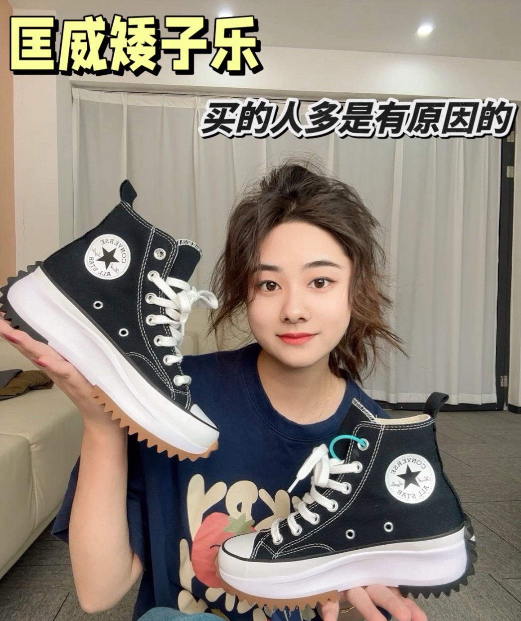 onverse Run Star Hike增高厚底高帮帆布鞋。 这款鞋作为曾经的肖战同款,从去年开始非常的火。 这款鞋属于上脚比单看好看多倍的鞋,鞋底增高5cm左右。上脚非常显气质。搭配休闲裤或裙子,特别的契合🤩 鞋子本身看着笨重,其实穿上脚非但不显得笨重,还非常突出气质。并且非常修饰腿型。即使搭配短裤或者短裙也不显得有违和感👀 对自己个子不自信的美女,穿上它瞬间增高5cm。 个子高的美女穿...