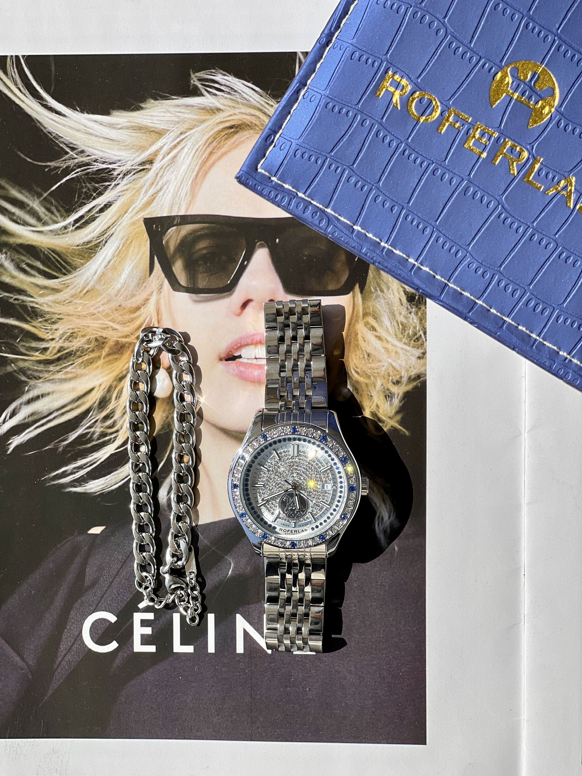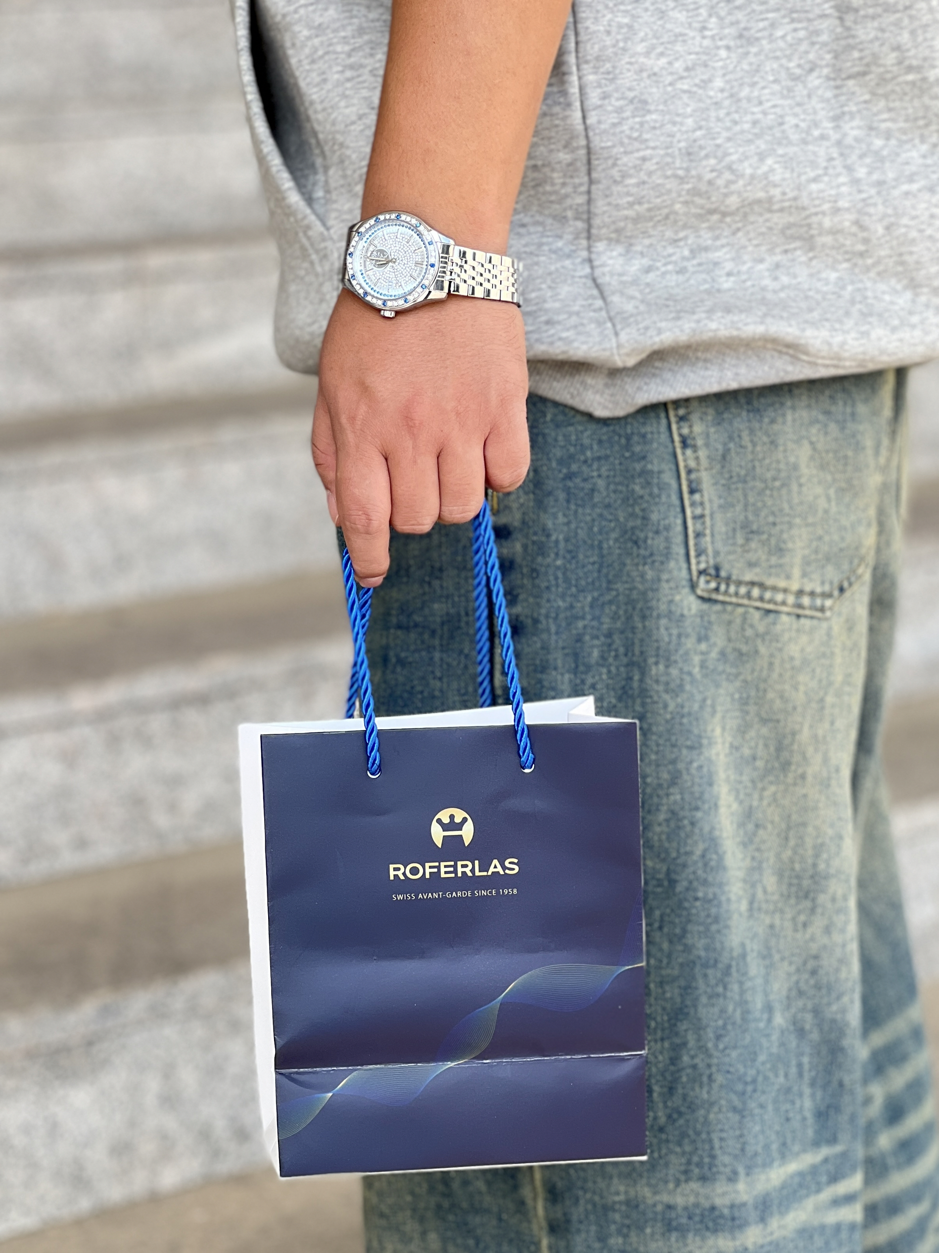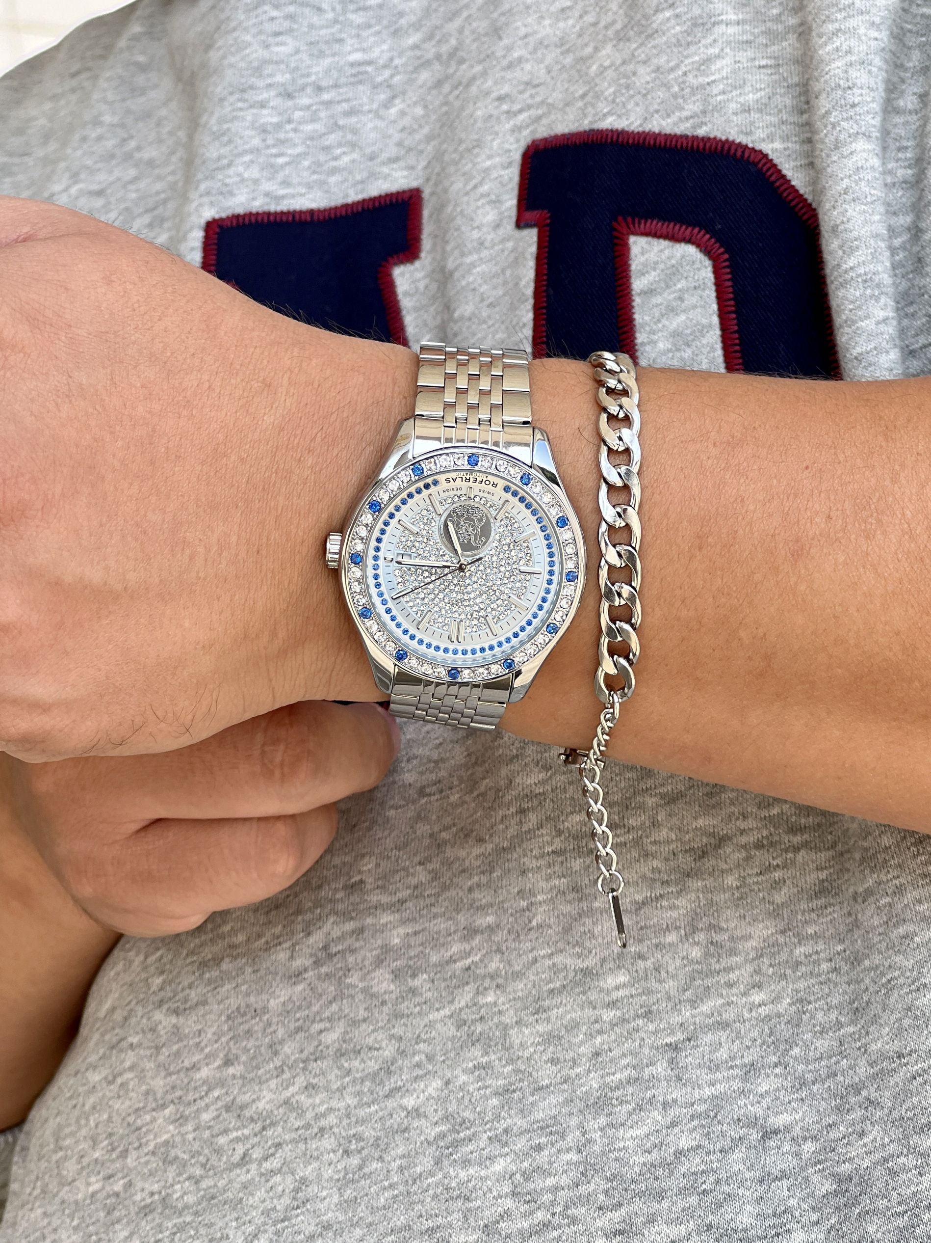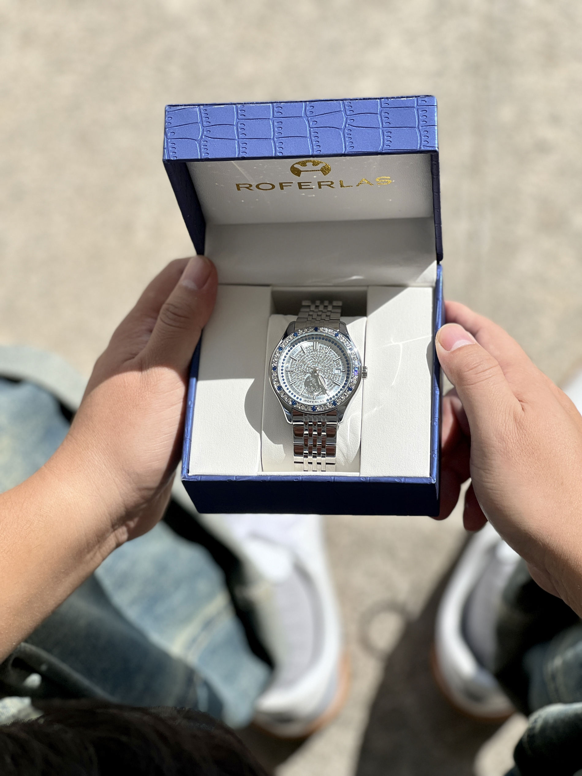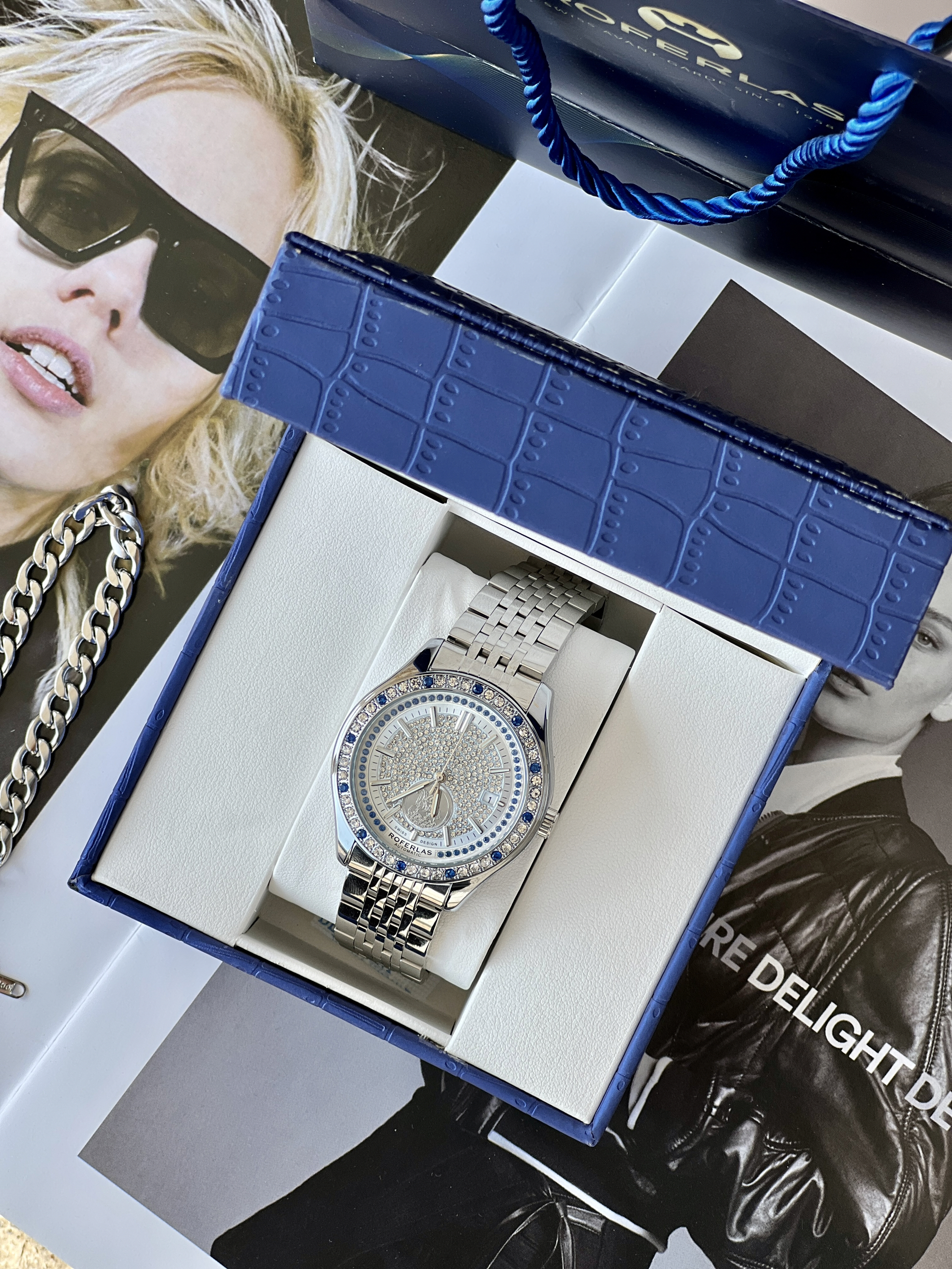 这一款机械表我真的拒绝不了~ 蓝宝石镜面🪞和冰川蓝镶钻 轻奢感拉满了💎 礼盒🎁里还送的古巴手链 我觉得和精钢表带叠戴又潮又帅 表底还做了背透的效果 每次看都觉得好治愈 银色表带日常佩戴很百搭 🍂秋天搭卫衣、衬衣、针织衫 ❄️冬天搭皮衣、大衣、羽绒服都不会出错