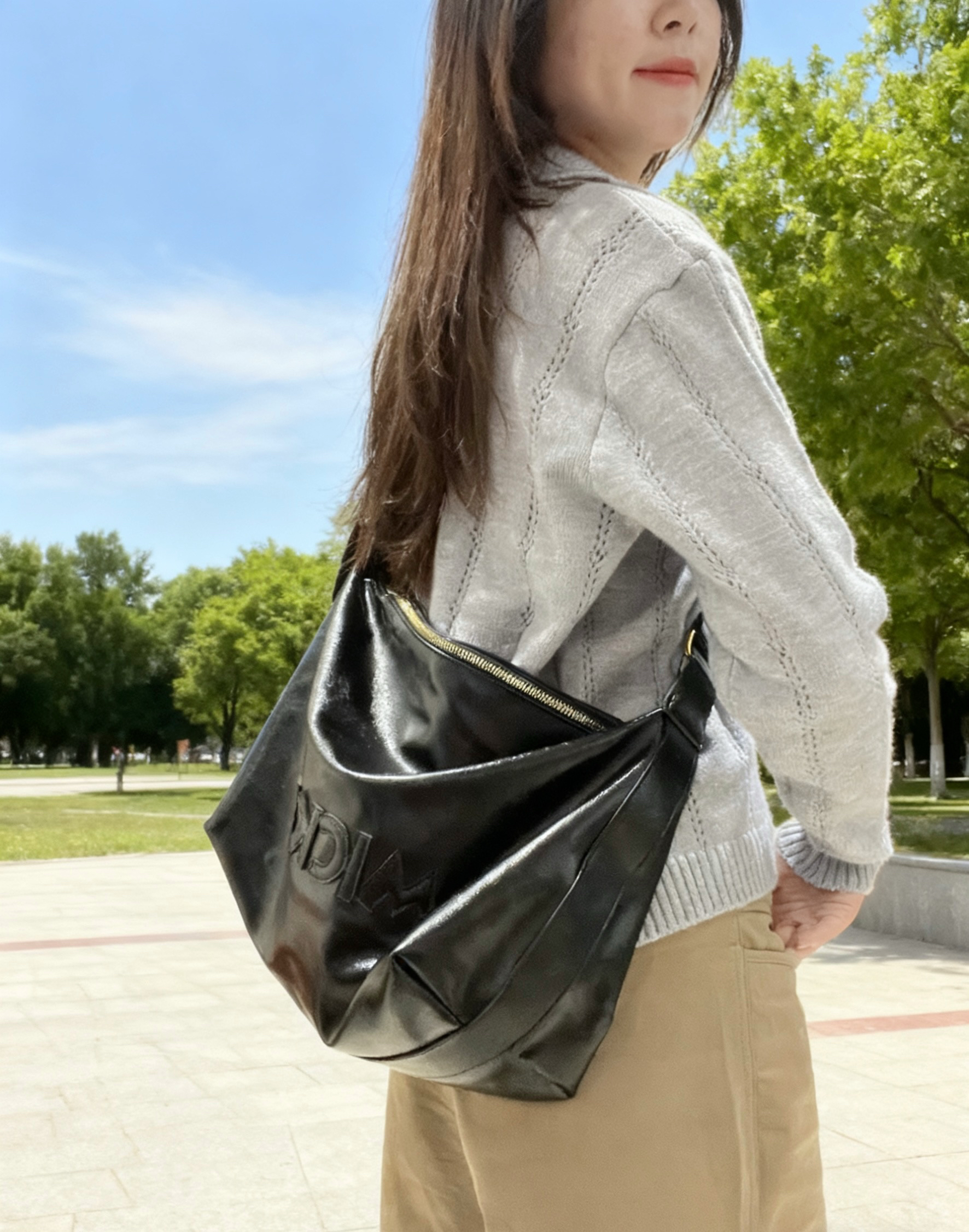 这款黑色单肩斜挎包,真的太香了!皮质有光泽,质感拉满。单肩背随性,斜挎背利落,两种背法切换超方便。容量也很够,学生党装课本、上班族装笔记本电脑和文件都没问题。“MICKEY”压纹很有辨识度,日常出街或者通勤用,既实用又能当穿搭亮点,学生党和上班族闭眼冲~
