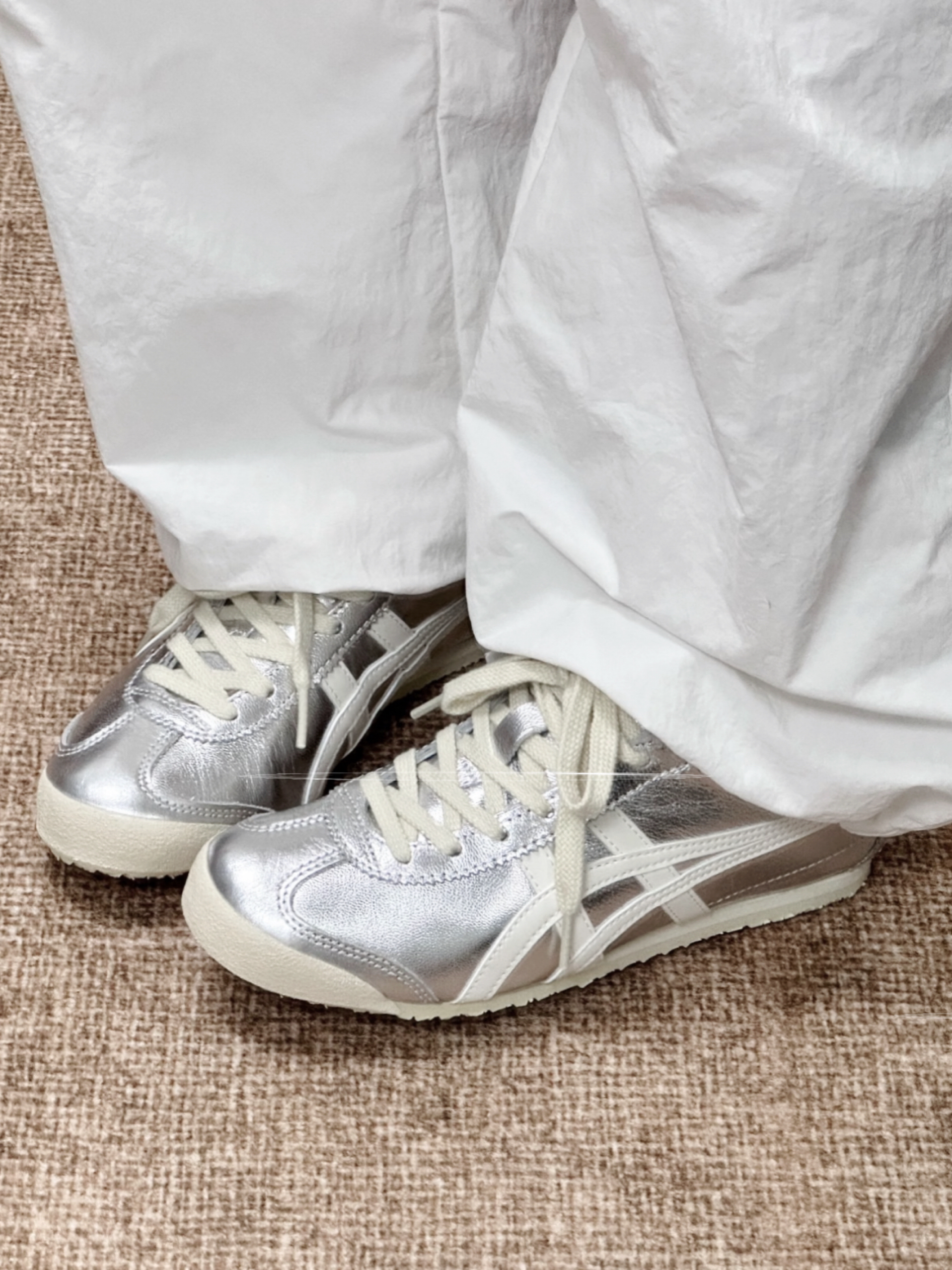 谁今年能没有一双时髦的小银鞋呢? 又日常又吸引眼球👀银白色设计简约大气!搭配奶油鞋带尊嘟好好看