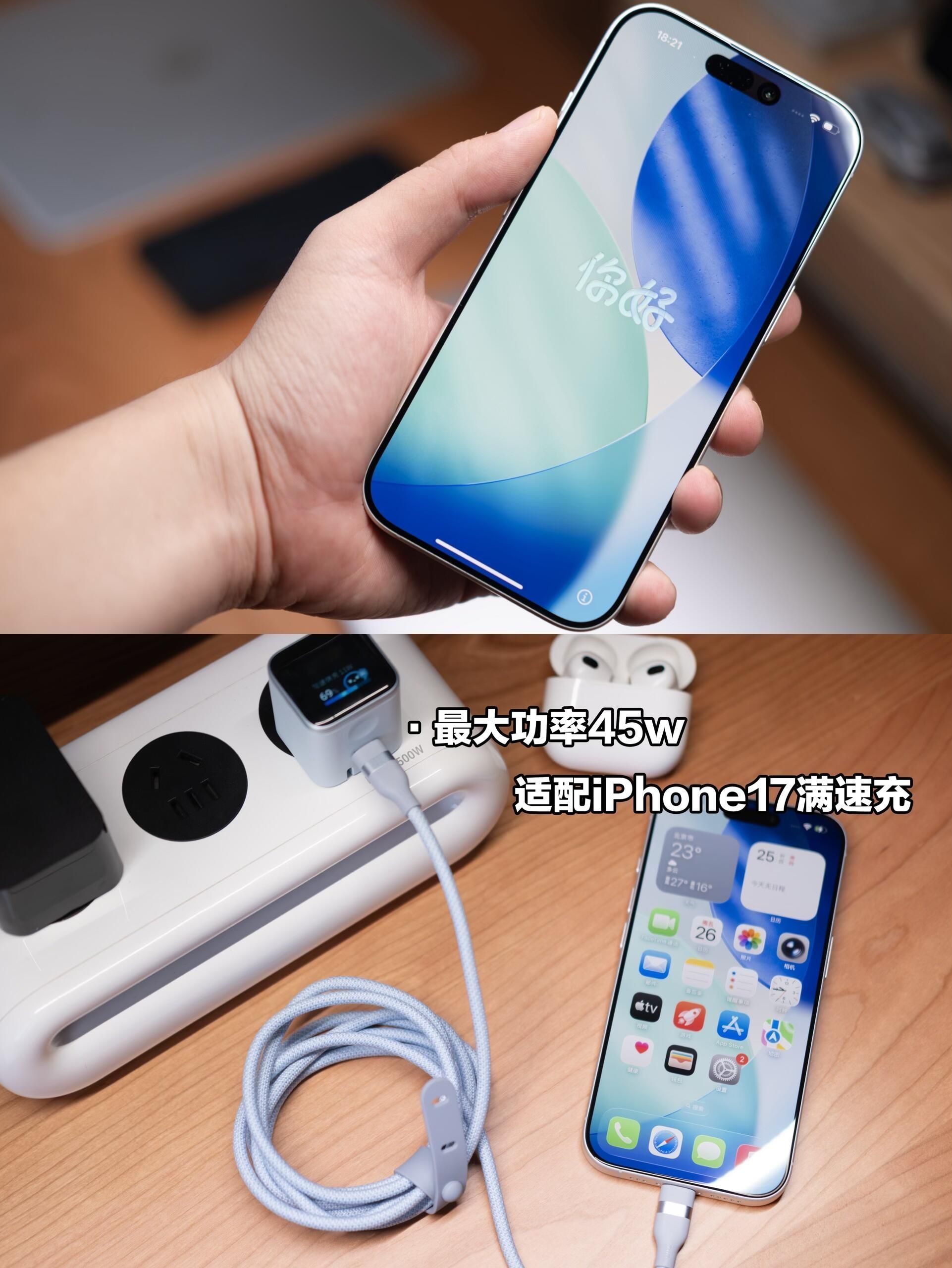 本篇笔记关联了Apple/苹果 iPhone17 5G 手机 超瓷晶面板2 防刮屏幕技术 6核CPU 5核GPU 120hz高刷 1800万前摄 自适应AI摄像 双卡 全网通 视网膜屏 白色、Anker/安克 安心充Smart 45W Type-c 氮化镓充电器 智能屏显技术 折叠双插脚 PD快充 安克白等商品,为用户提供真实的使用体验和购买参考。