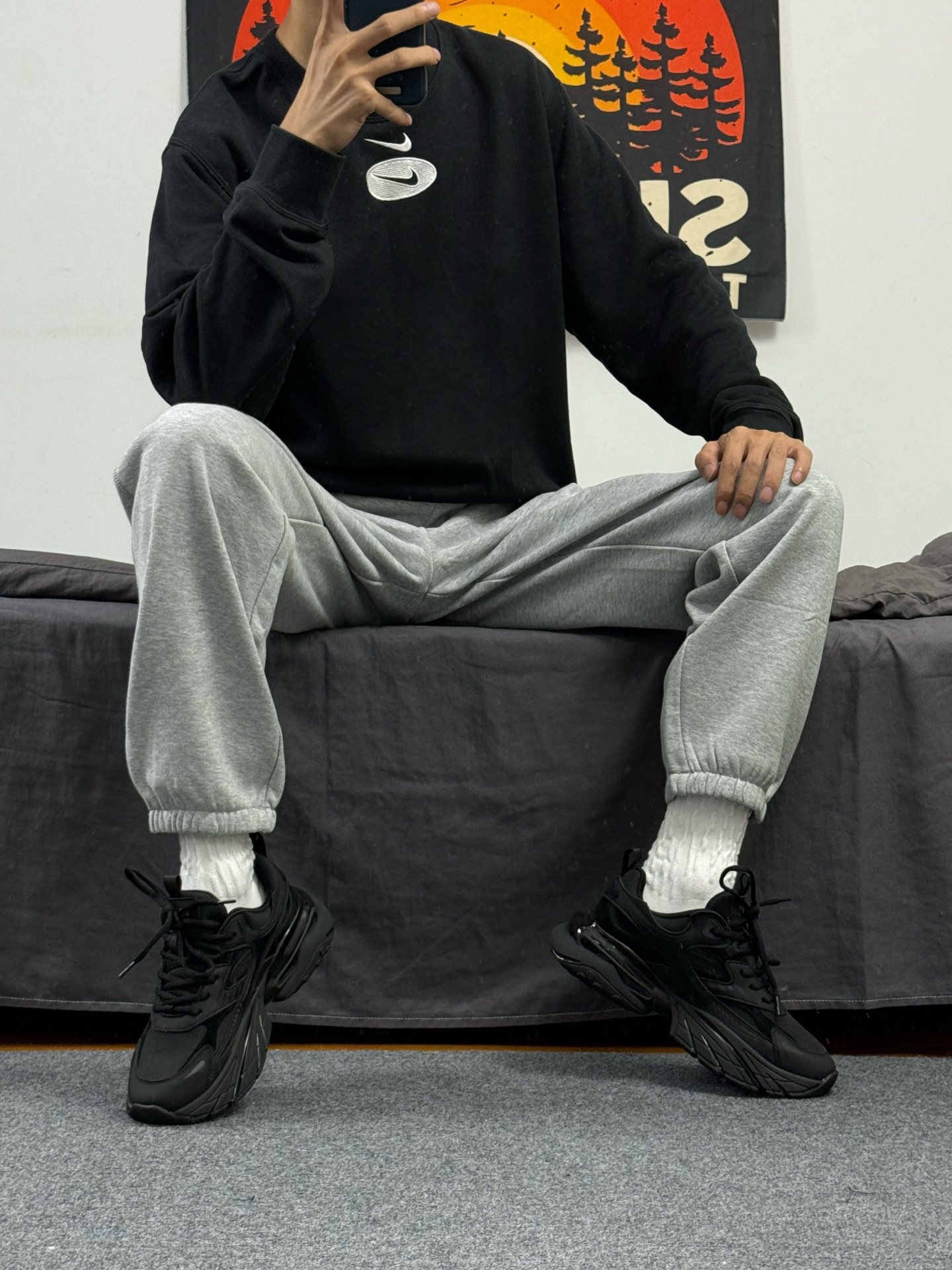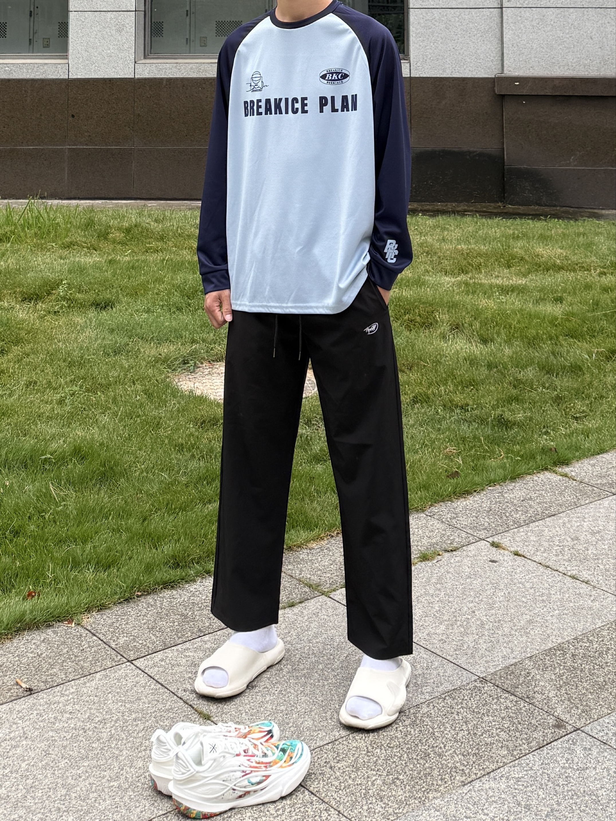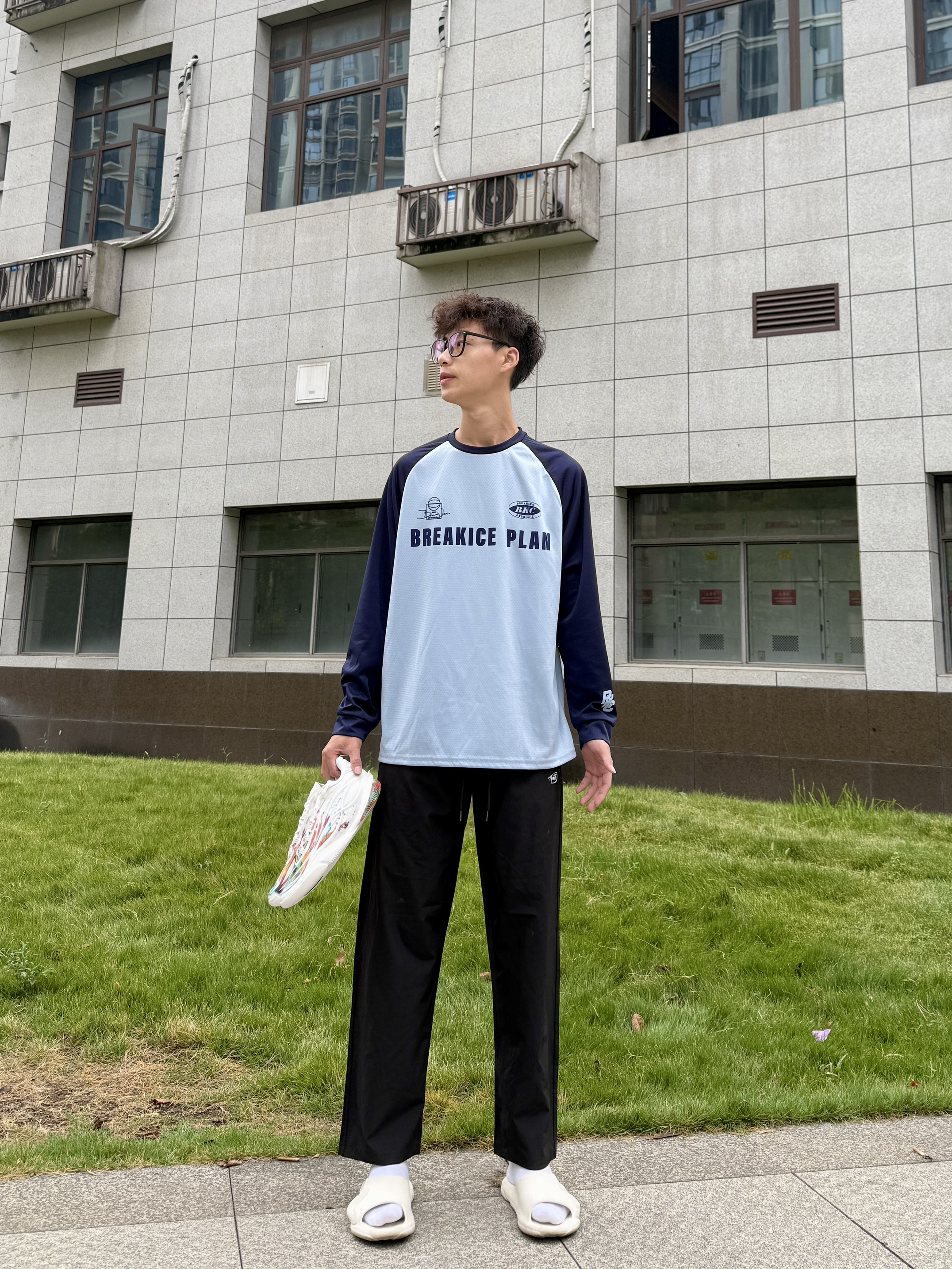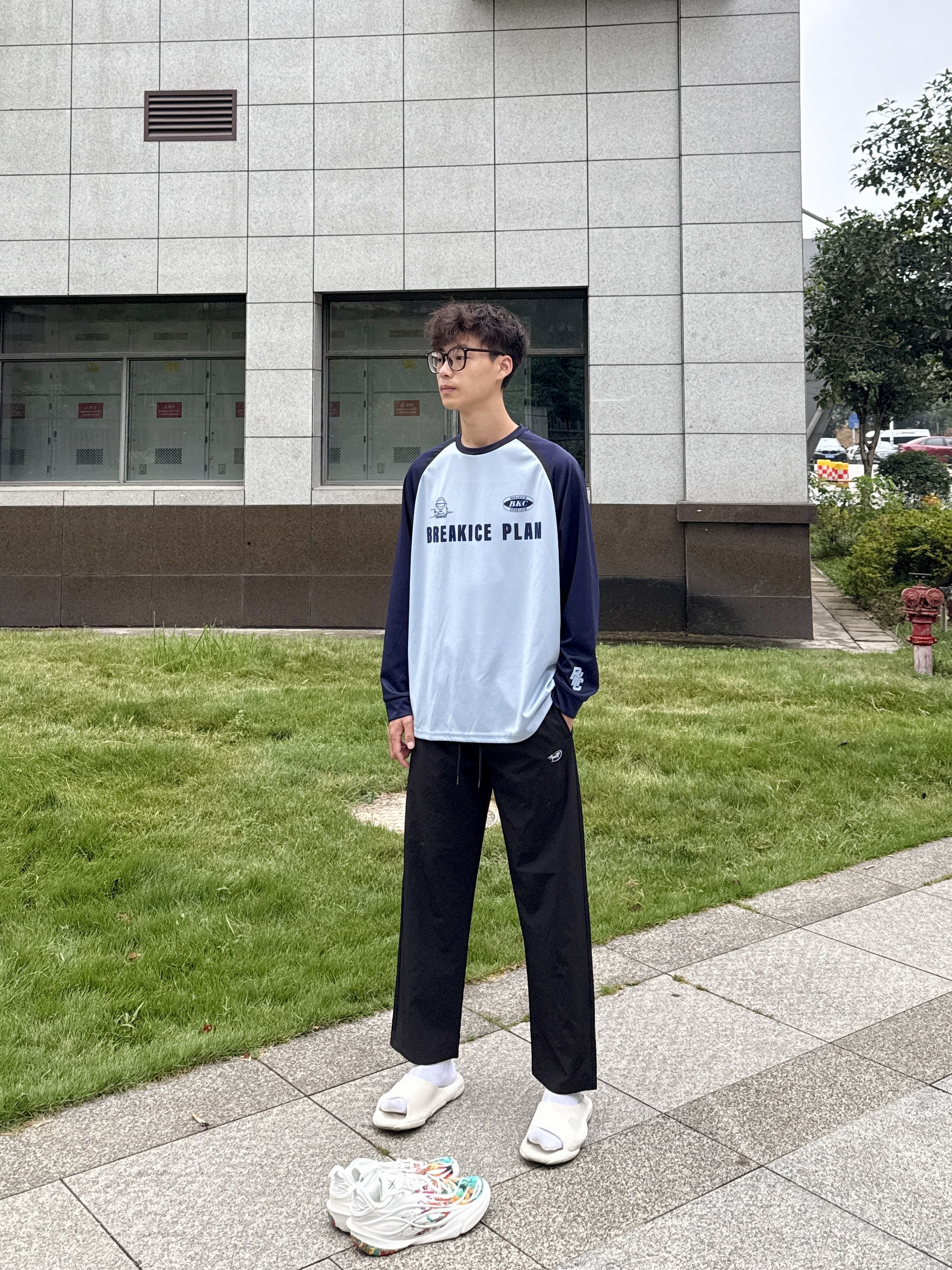 《打球穿搭 | 美式复古风 球场外的吸睛公式》 这套插肩衫打球穿绝绝子!浅蓝撞藏青的复古版型 运动时舒展又有弹性印花设计还很有辨识度 搭配宽松黑裤和球鞋打球穿搭的风格与舒适同时展现
