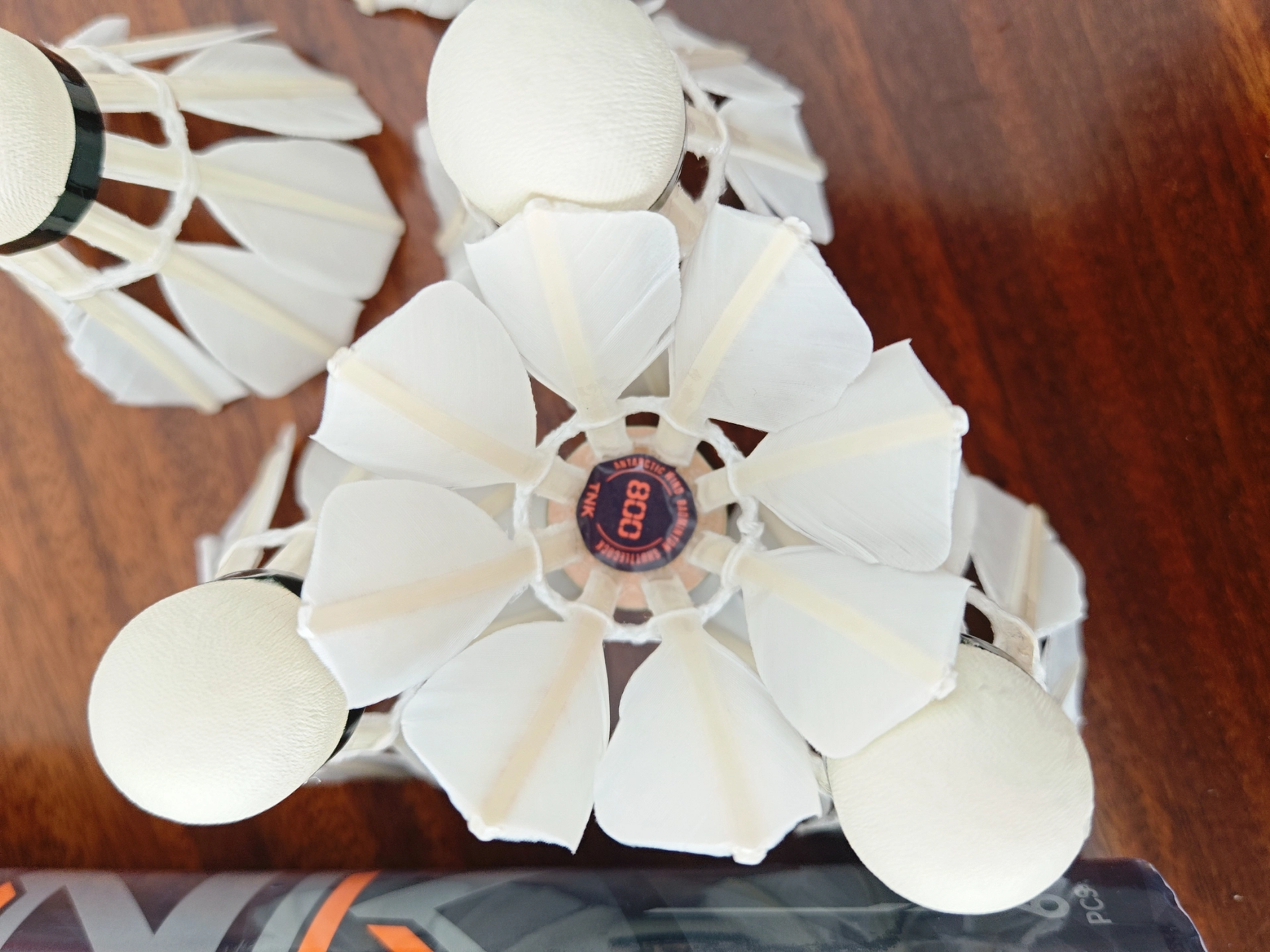 我不喜欢塑料球的打感,还是偏爱羽毛球~新入的这款是鹅毛的,虽然只有八根毛,但毛杆扎实,胶水也足,打起来很顺手!性价比拉满,打坏了也不心疼,学生党冲就完事儿👏~