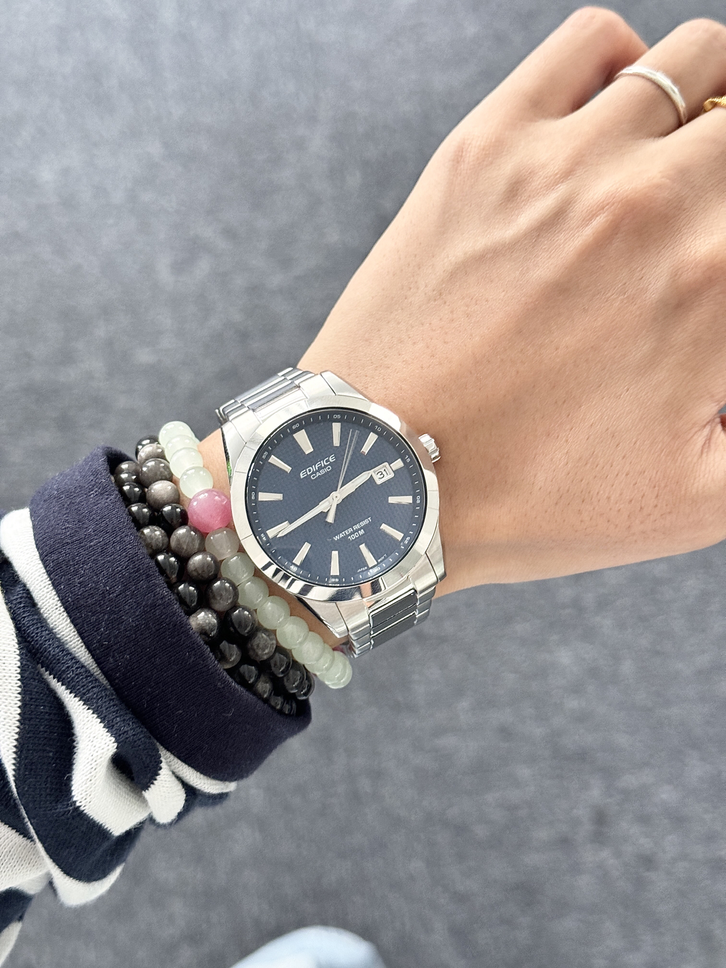 本篇笔记关联了Casio/卡西欧 EDIFICE EFV-160系列 不锈钢表带钉纹盘面轻薄百搭通勤石英男士手表 银蓝色 EFV-160D-2AVPR等商品,为用户提供真实的使用体验和购买参考。