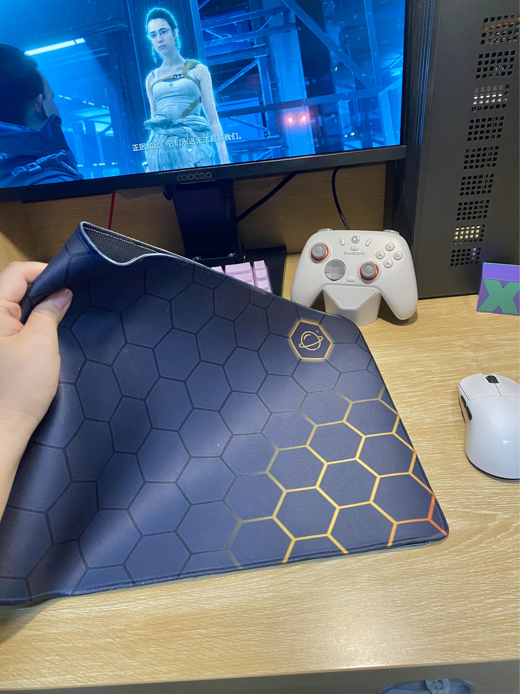 之前一直在用一个正方形▫️小小个的鼠标垫 每次在宿舍写论文📑或者打游戏🎮都感觉手👋被限制住了,特别的不方便😭 于是入手了介个 vobafe 的蜂窝鼠标垫✌️ 大的鼠标垫尊滴感觉不一样,不仅能放下我的键盘⌨️,而且还能空出很多位置给鼠标操作🖱️ 鼠标在垫子上滑的很流畅,键盘也不会像以前那样时不时滑来滑去💪 蜂窝🐝设计,感觉特别的酷炫,重点是价格💰很便宜,怎么用也不心疼,新价比拉满了👊