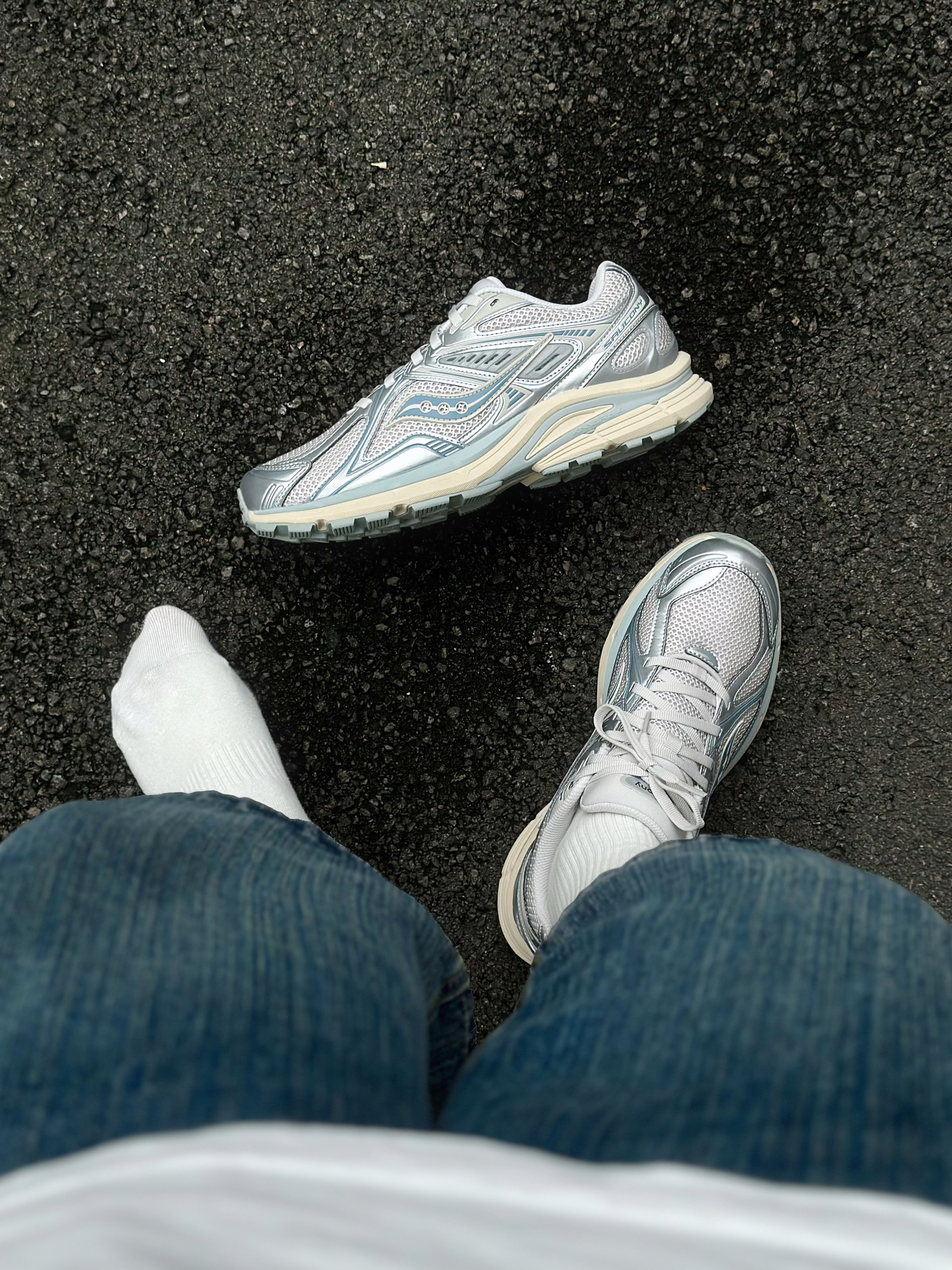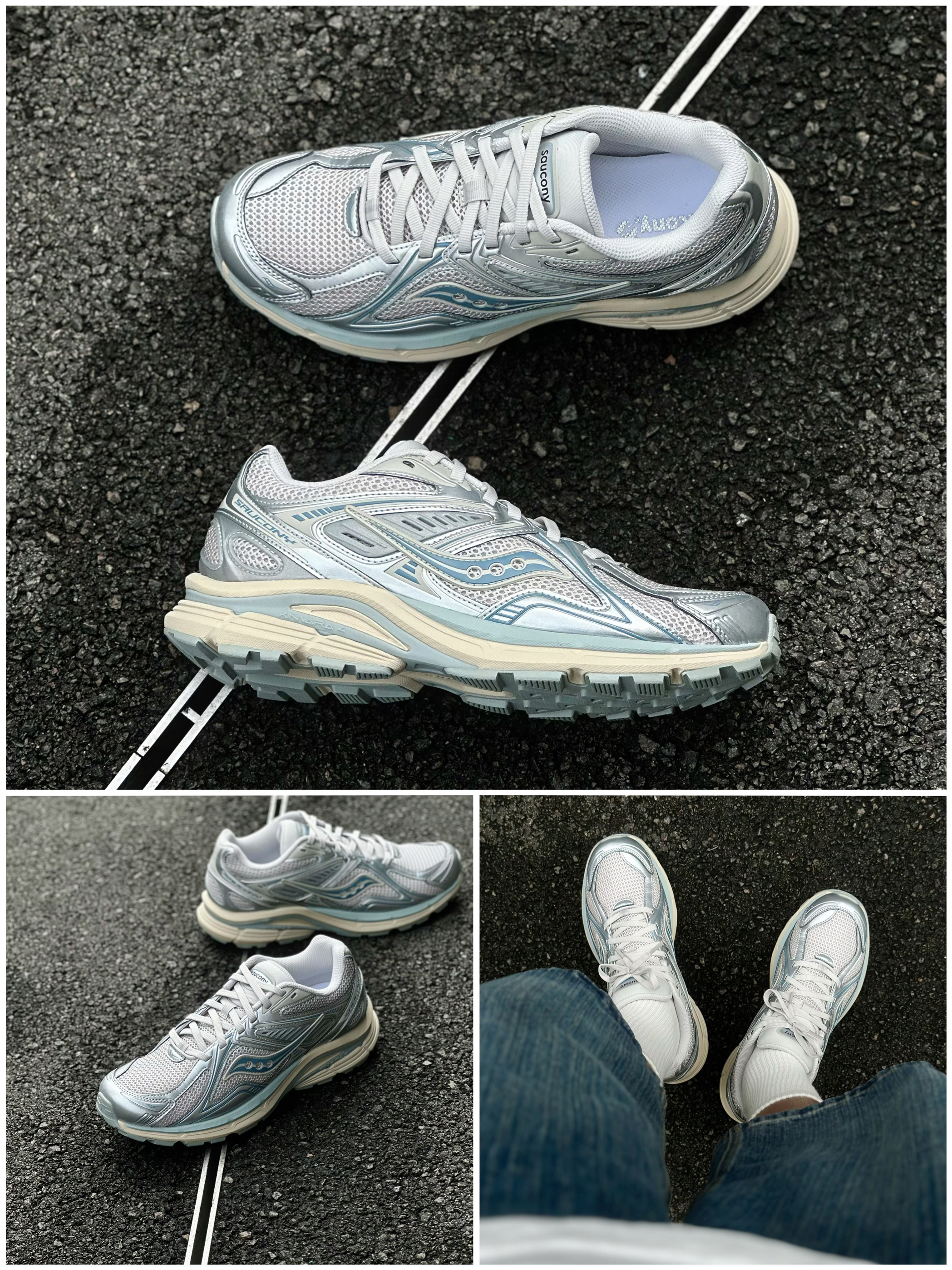 对银色系的复古鞋真的毫无抵抗力呀! 最近挖到的这双saucony 菁华 4 RE 鞋身采用了极具未来感的冷调银色打造 感觉一瞬间就点亮了秋冬的沉闷 同时加入低饱和的莫兰迪蓝修饰细节 以及微黄做旧的氧化中底 这样的组合复古又高级✨ 很好的还原了Y2K千禧风美学的精髓! 而且像这样的银色系也是比较好穿搭的 搭七分短裤、宽松牛仔裤,慵懒又街头 配黑色工装裤、卫裤,妥妥的Clean Fit干练造型 到...