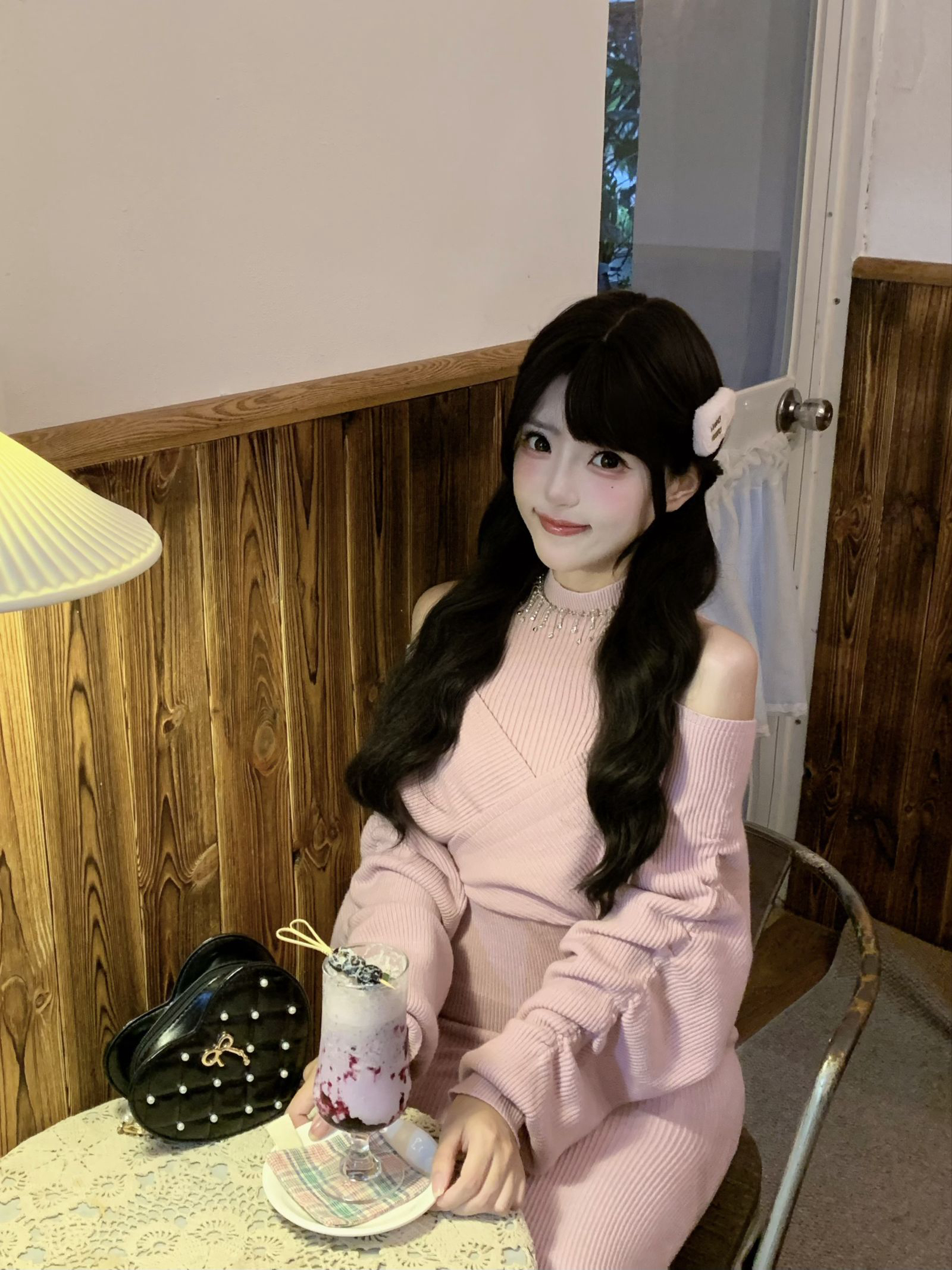 露肩的设计感觉非常的时尚大气!颜色也是那种偏灰的粉色,感觉比较显白#蕾服#日系#量产型#樱花妹