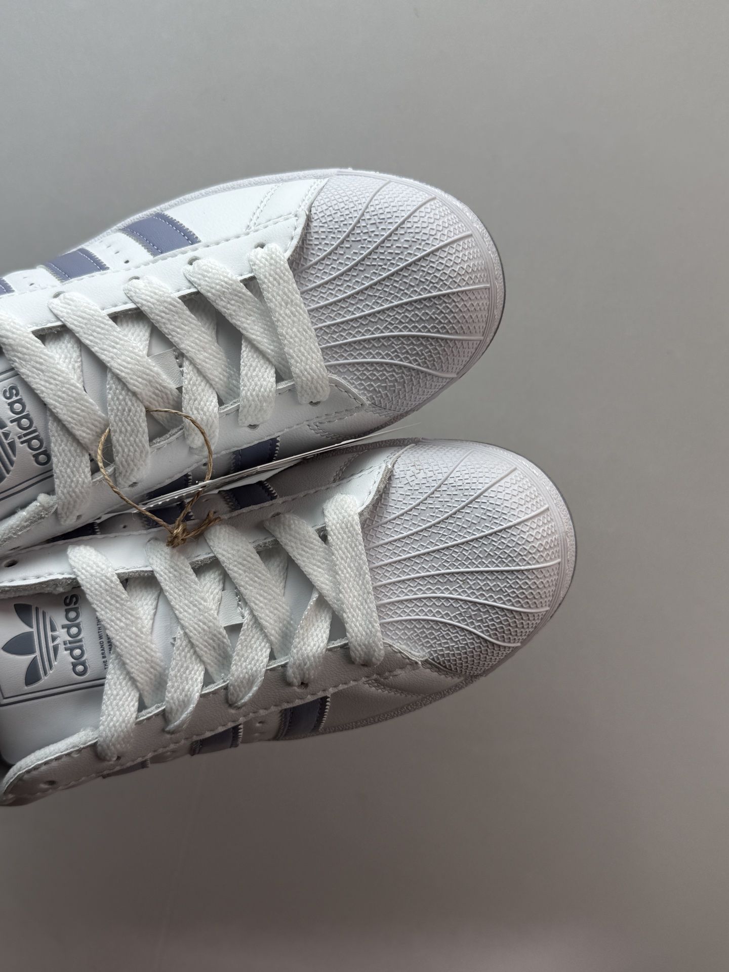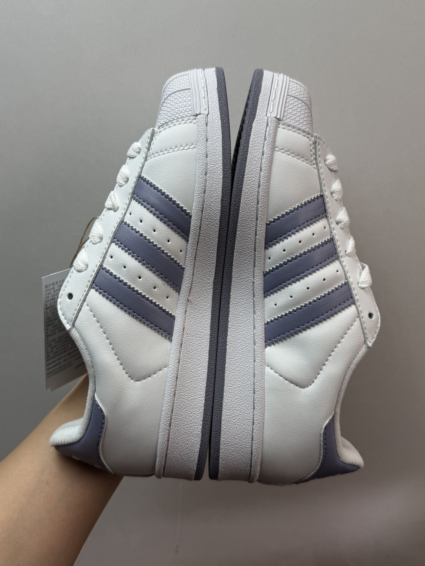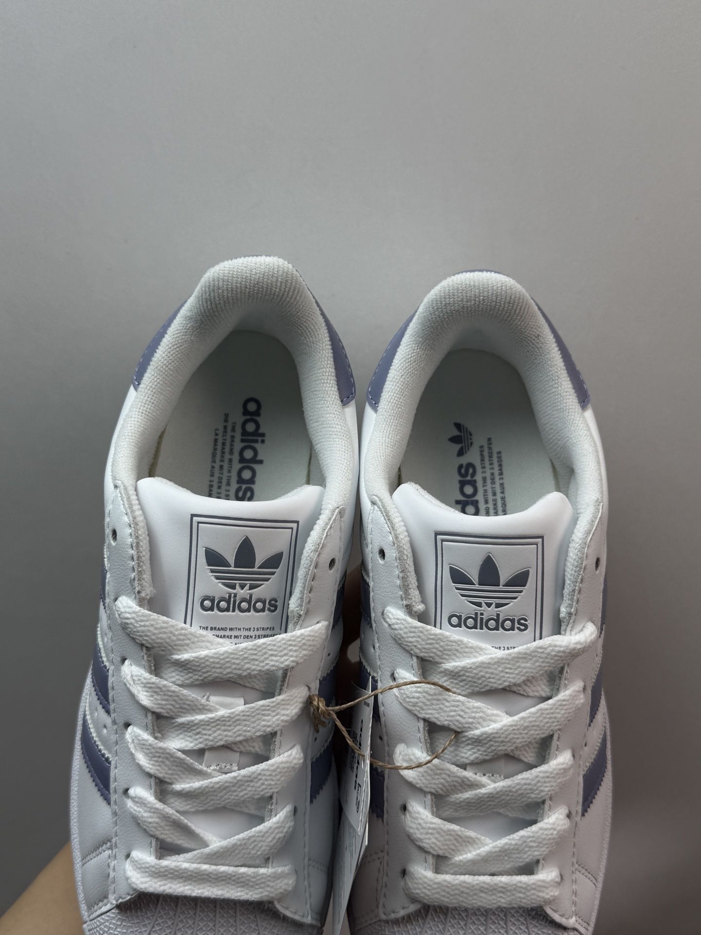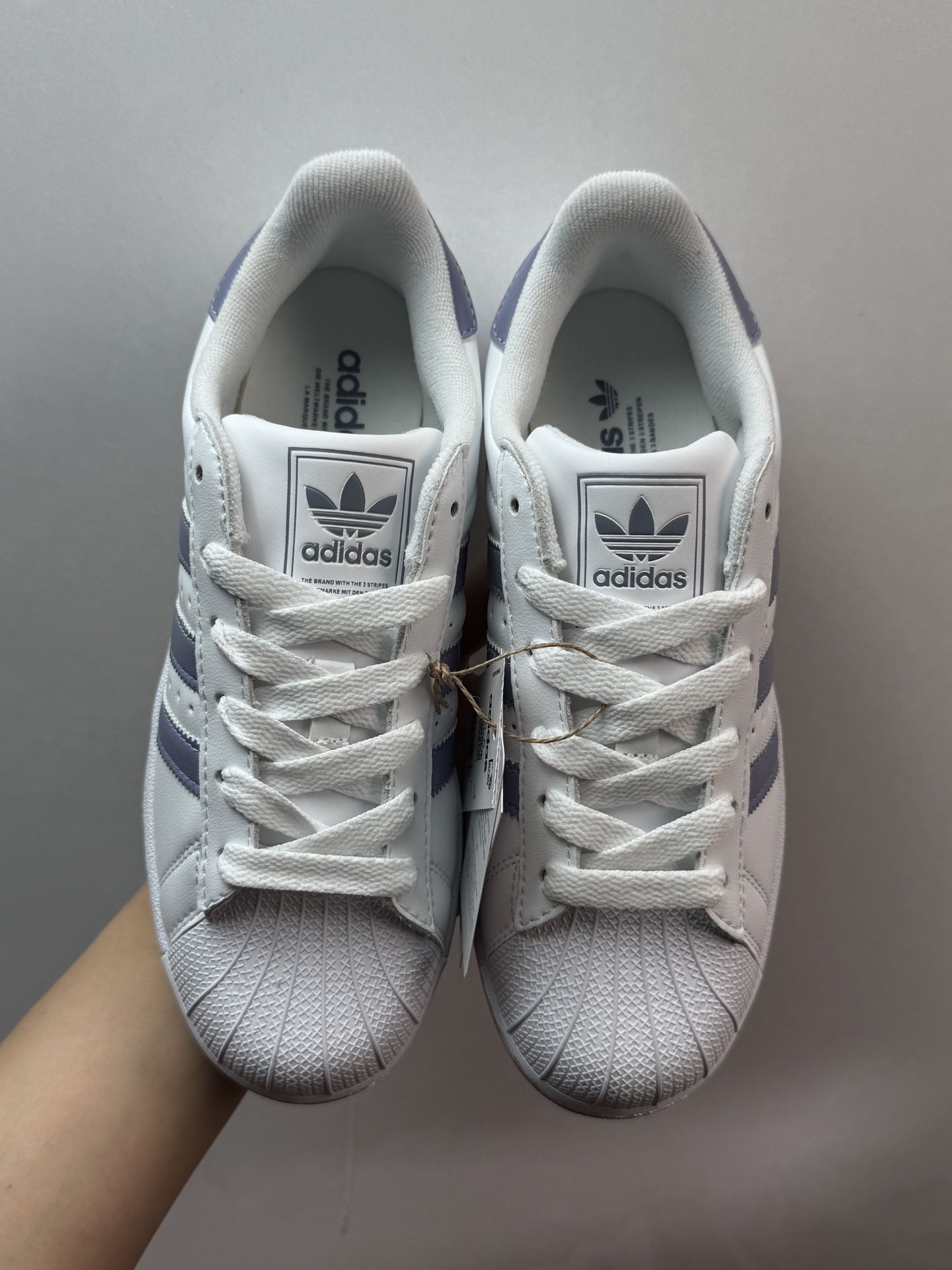 这双白紫色的 Superstar 2 真的让人眼前一亮!经典贝壳头设计搭配柔和的紫色条纹,简约又不失个性。上脚非常舒适,皮革材质柔软贴合,日常通勤或周末出游都很合适。 鞋子的支撑性和缓震效果都不错,长时间行走也不会觉得累。搭配牛仔裤、运动裤都很有型,轻松打造休闲时尚感。400 多元的价格性价比很高,学生党和上班族都能轻松入手。 如果你正在寻找一双舒适百搭的经典板鞋,这双绝对值得推荐!
