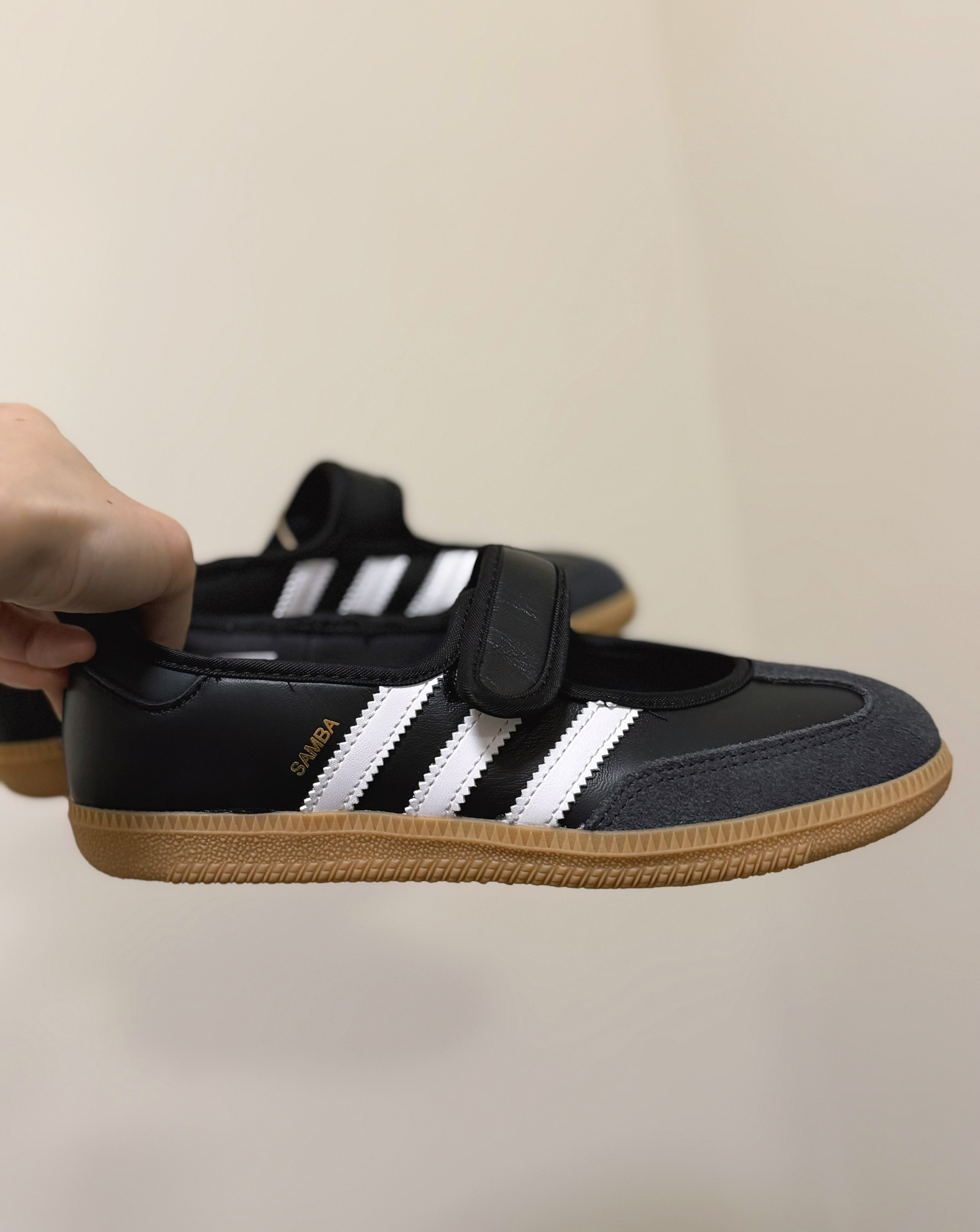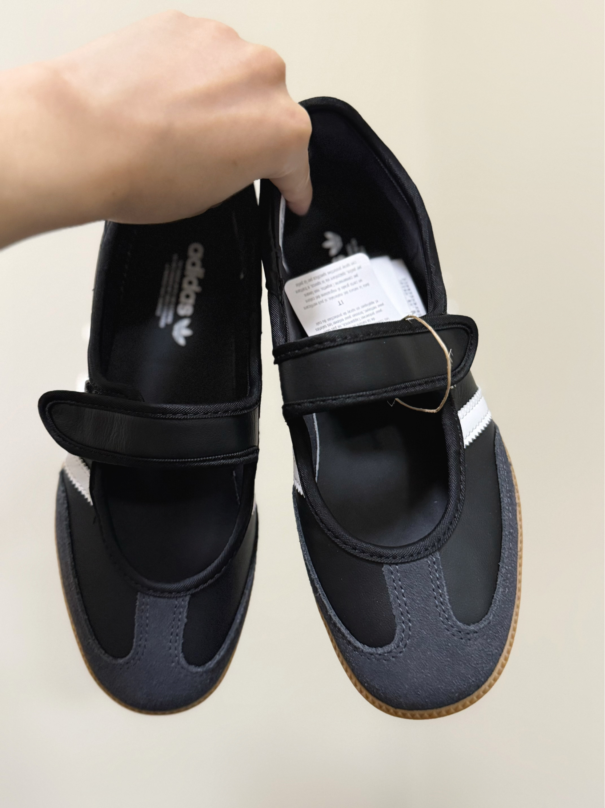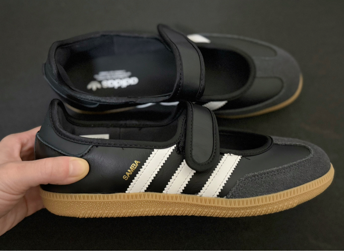 Samba基因撞上玛丽珍也太会了!黑白配色经典百搭,魔术贴设计不挑脚型。 皮质软乎不磨脚,鞋底软弹暴走不累,搭裙子、牛仔裤都超有feel,秋天搭配袜子也不违和🍂 运动牌的舒适+复古鞋的颜值,闭眼入不亏!