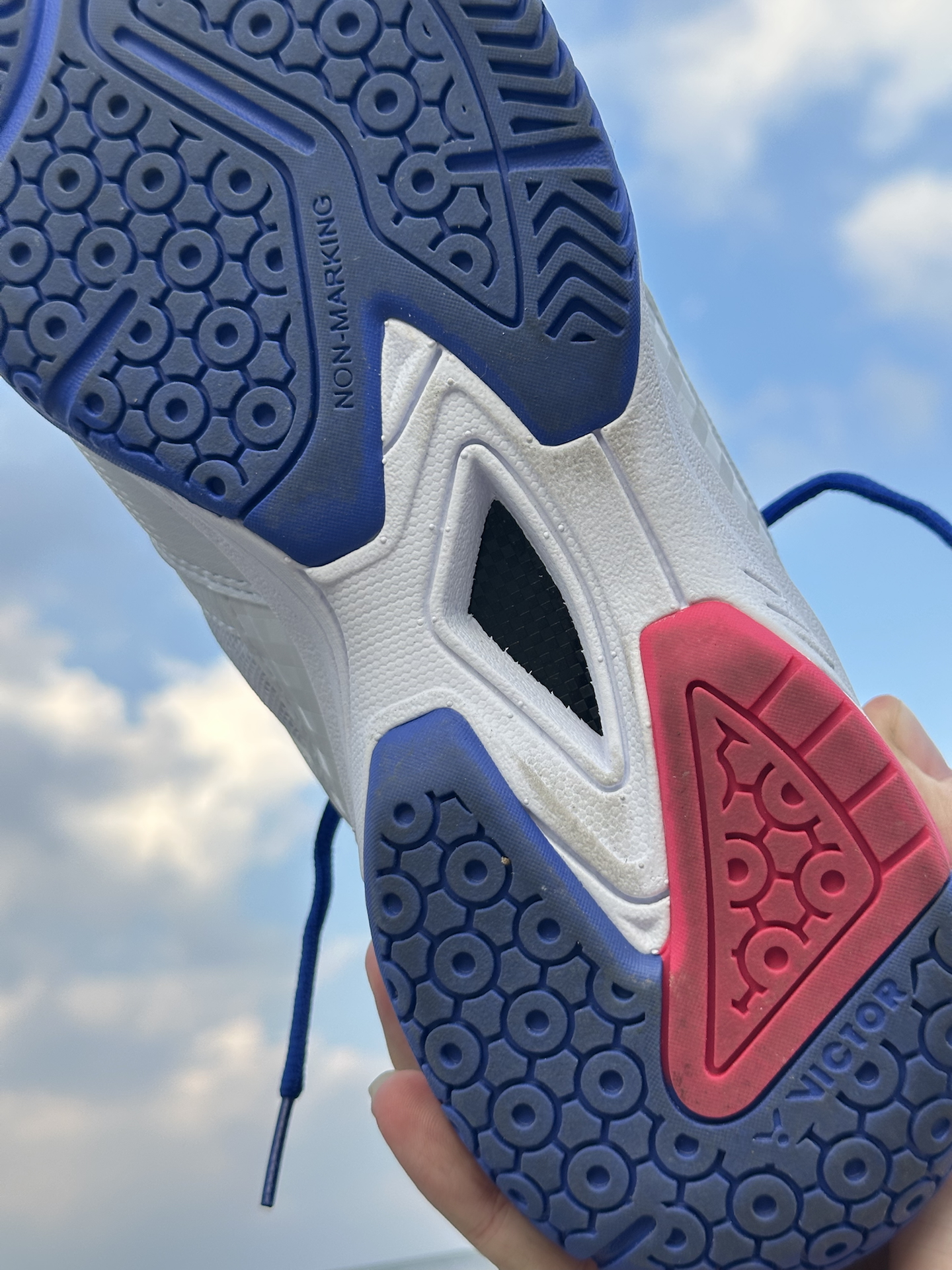 老婆说我天天打篮球,就是不带她运动,我说那我陪你打羽毛球吧。不过我一屋子的篮球鞋,居然还翻出一双威克多的羽毛球鞋,还带碳板这你受得了!跟篮球鞋不一样的是,羽毛球鞋轻便许多,而且打球时候跑动脚踝灵活方便。这款威克多羽毛球鞋是个经典白蓝配色,颜值这一块还不错,前后分离的橡胶底我踩起来还蛮舒服的,平时羽毛球打得不多,不过这项运动确实很出汗,最近国庆胖得太多了。#威克多 #威克多礼盒 #9200td #威...
