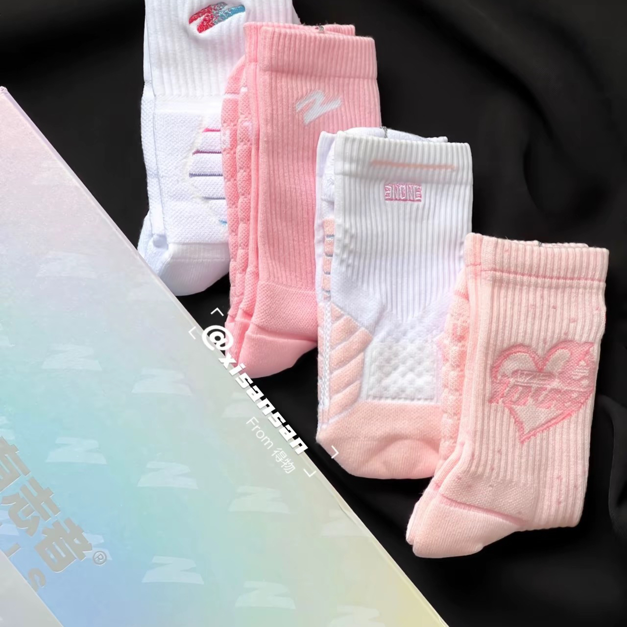 准备的第一份七夕礼物收到了👋🏻 UZIS的情人节礼盒! 男生真的很费袜子~ 特别是夏天,运动打篮球的时候! 所以这次特意选的专业篮球🧦 4双不同的款式,日常穿搭也完全足够 还是显得嫩嫩的粉色👀 也让他体验一把粉白多巴胺~ 还可以做情侣袜!准备七夕约会就这么穿了! 礼盒装也很好看,有七夕浪漫的氛围感👀 需要准备礼物的🉑️入~