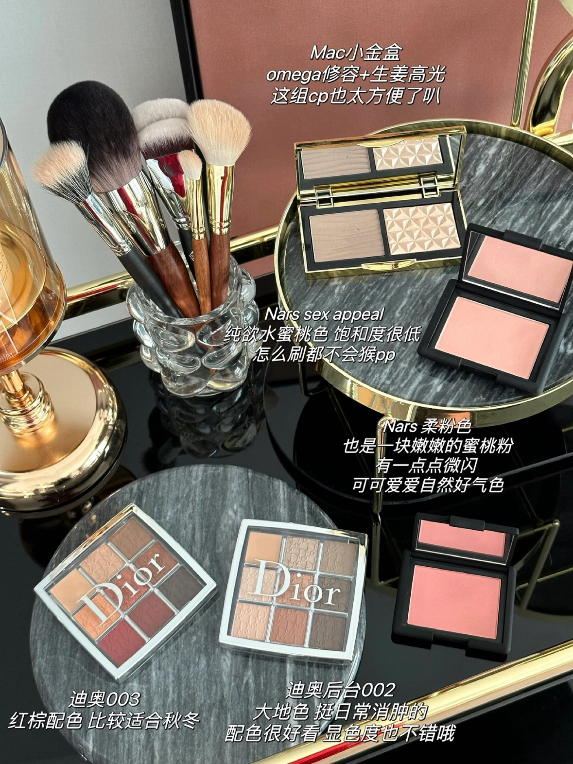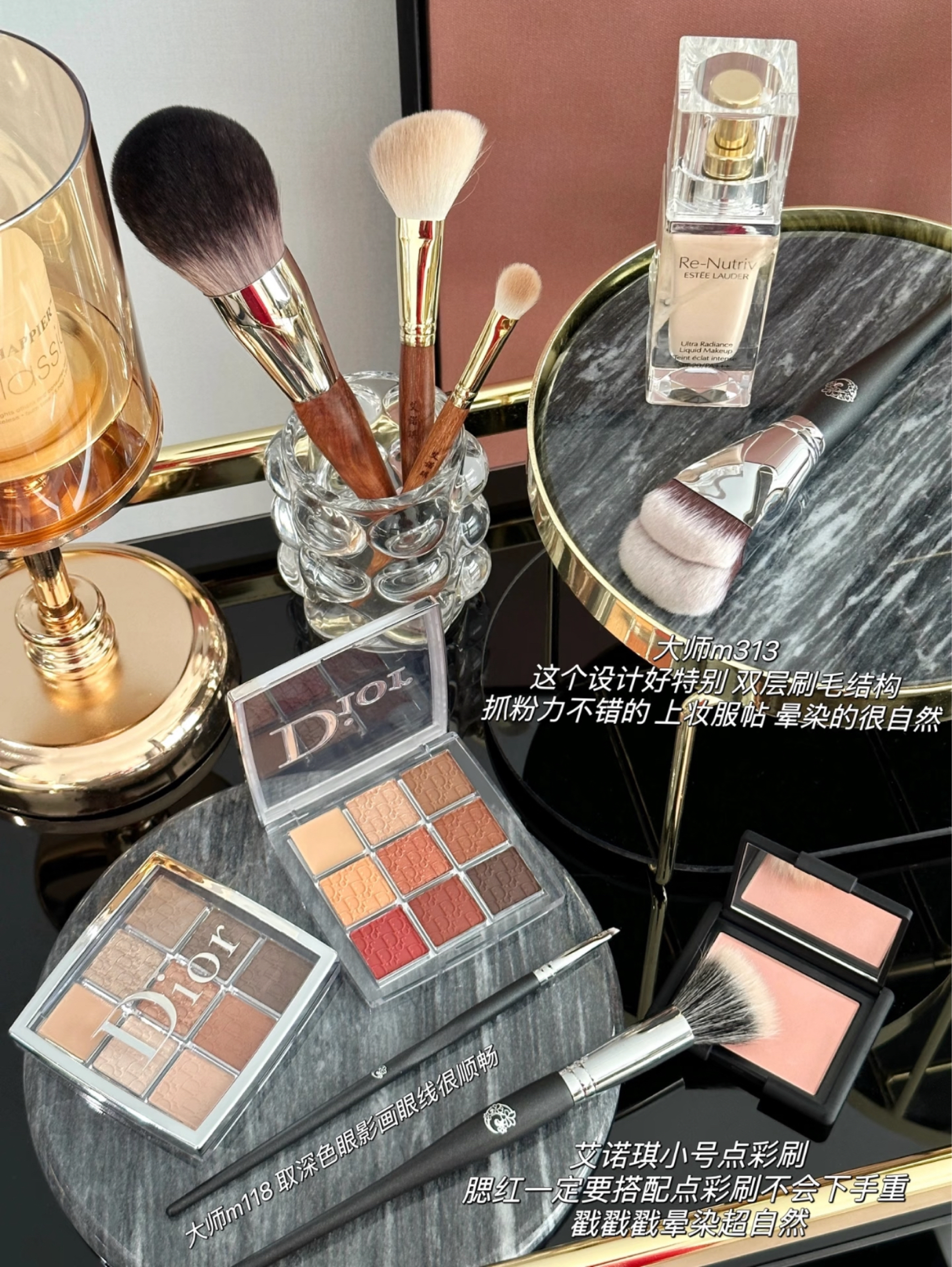 随手拍近期爱用的一套彩妆! 干皮底妆+腮红+眼影++修容+口红+化妆刷 都是我平时比较爱用的系列!