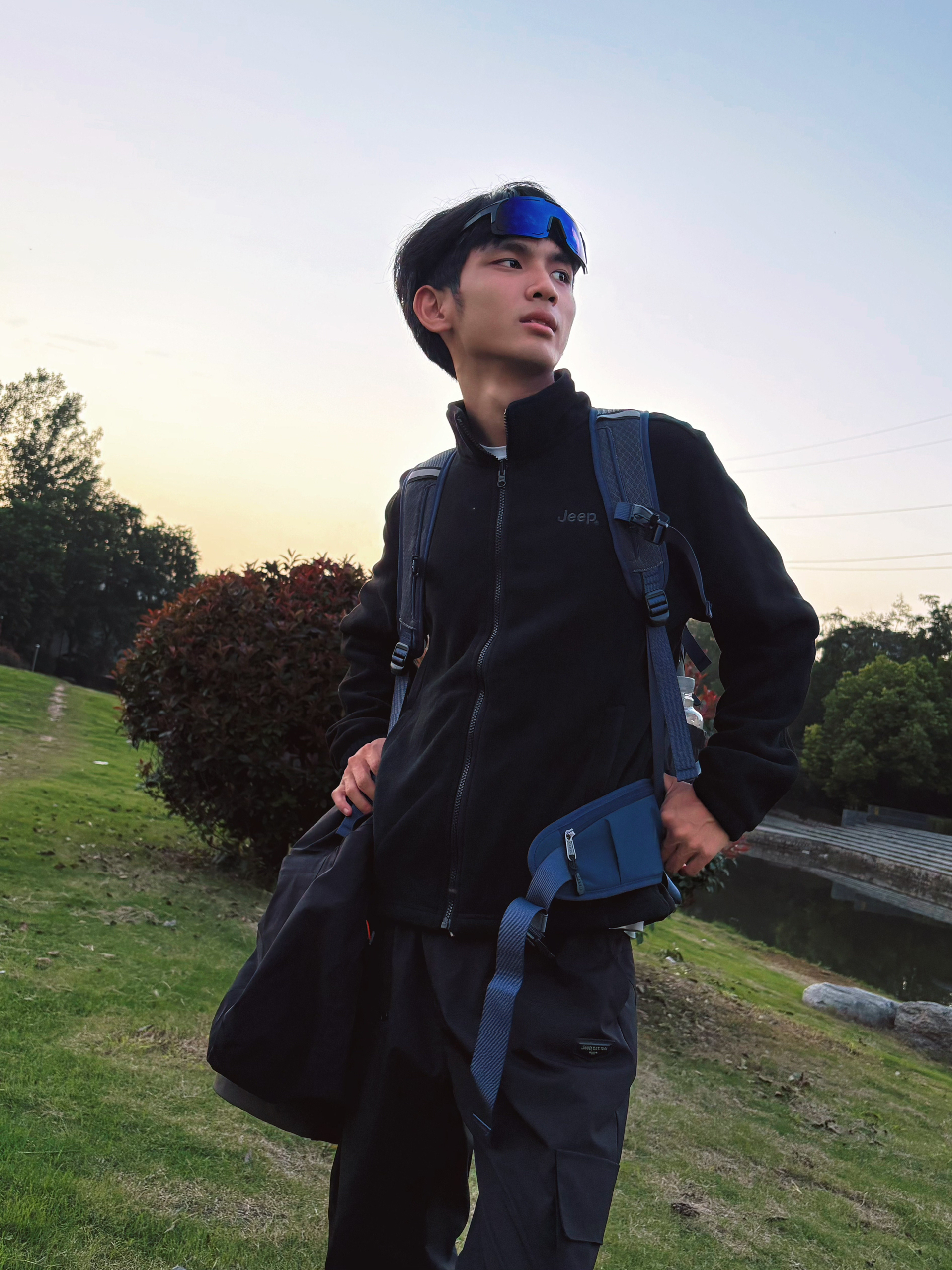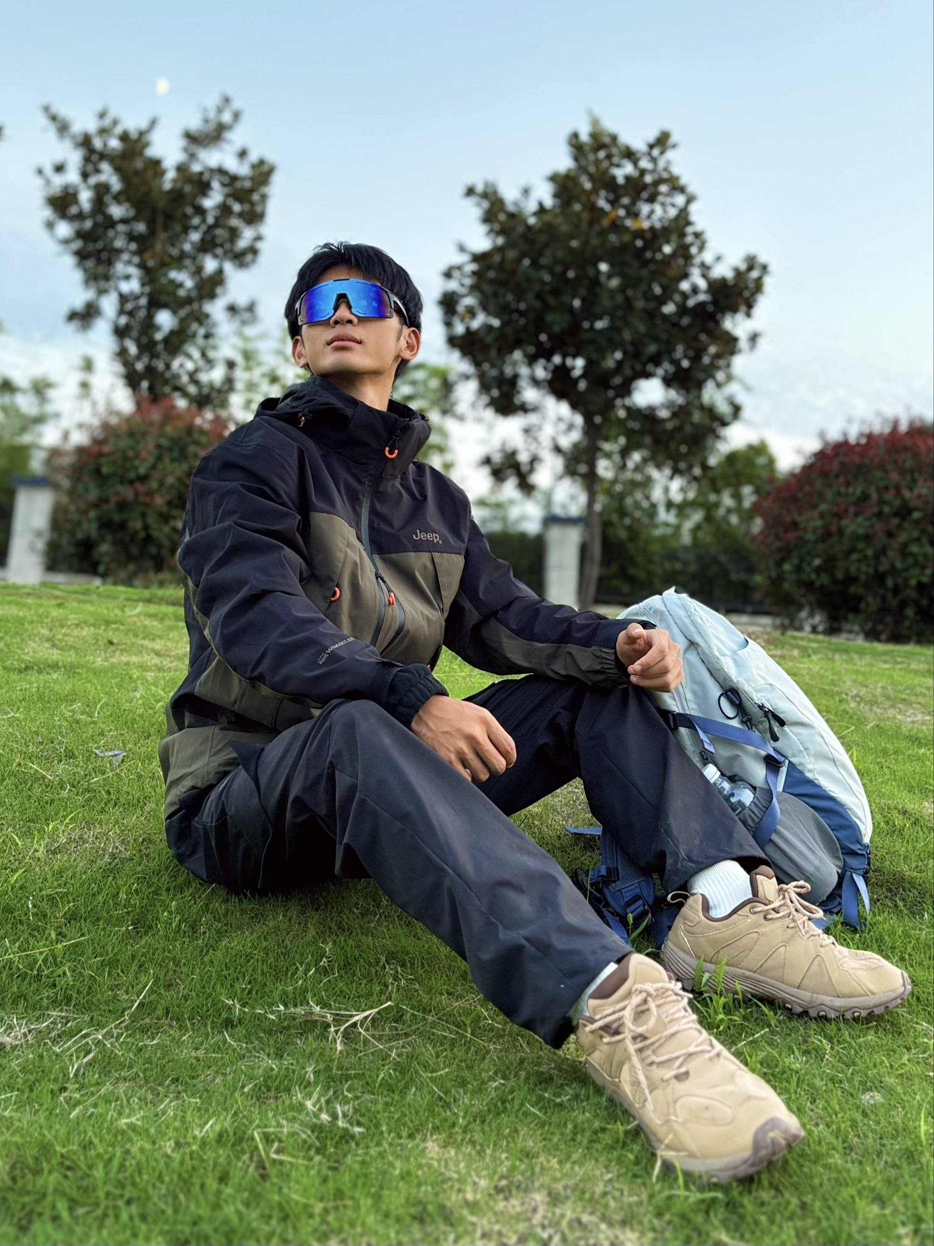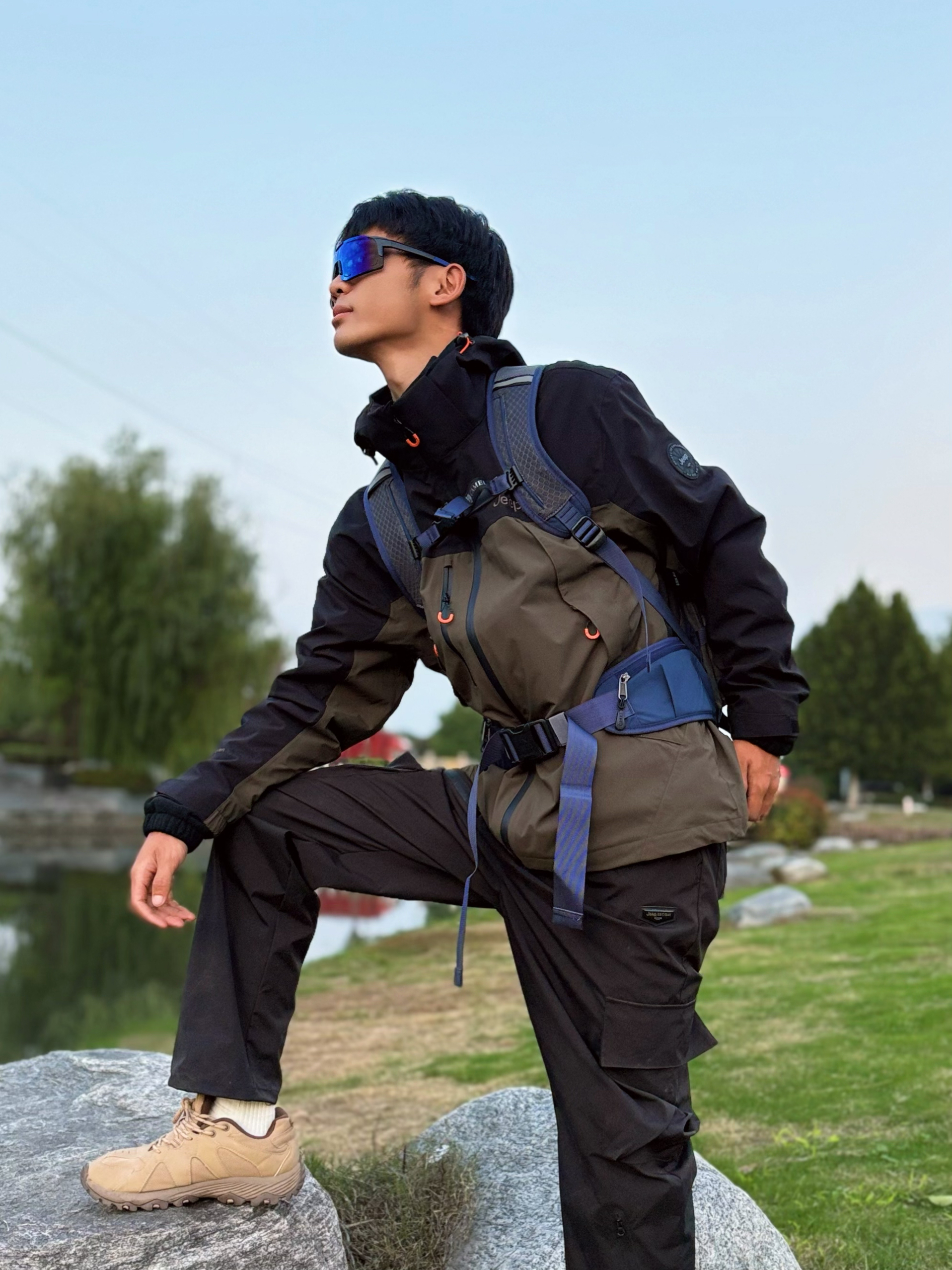 等来等去等到了休息♨️ 跟朋友来城郊河边野营烧烤⛺️ 出发前还在愁穿啥—这几天都下雨🌧️ 想了想还是选择穿冲锋衣 今天穿了一件jeep的冲锋衣 深军绿色的穿起来很有山野的氛围 外层是防水💦硬壳面料 get我的是全衣拼缝压胶,真的很少见 内胆是柔软的抓绒材质,贴身穿亲肤不扎☁️ 今天出门没多远,就用它搭了套日常look: 内搭白T,配黑色工装裤,卡其色户外鞋,再背个大容量户外背包,很有户外的松弛...