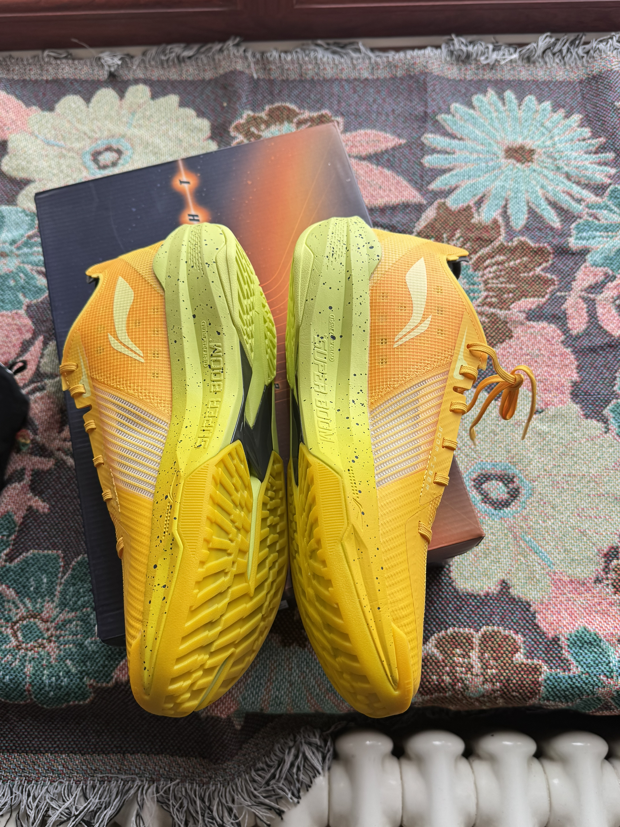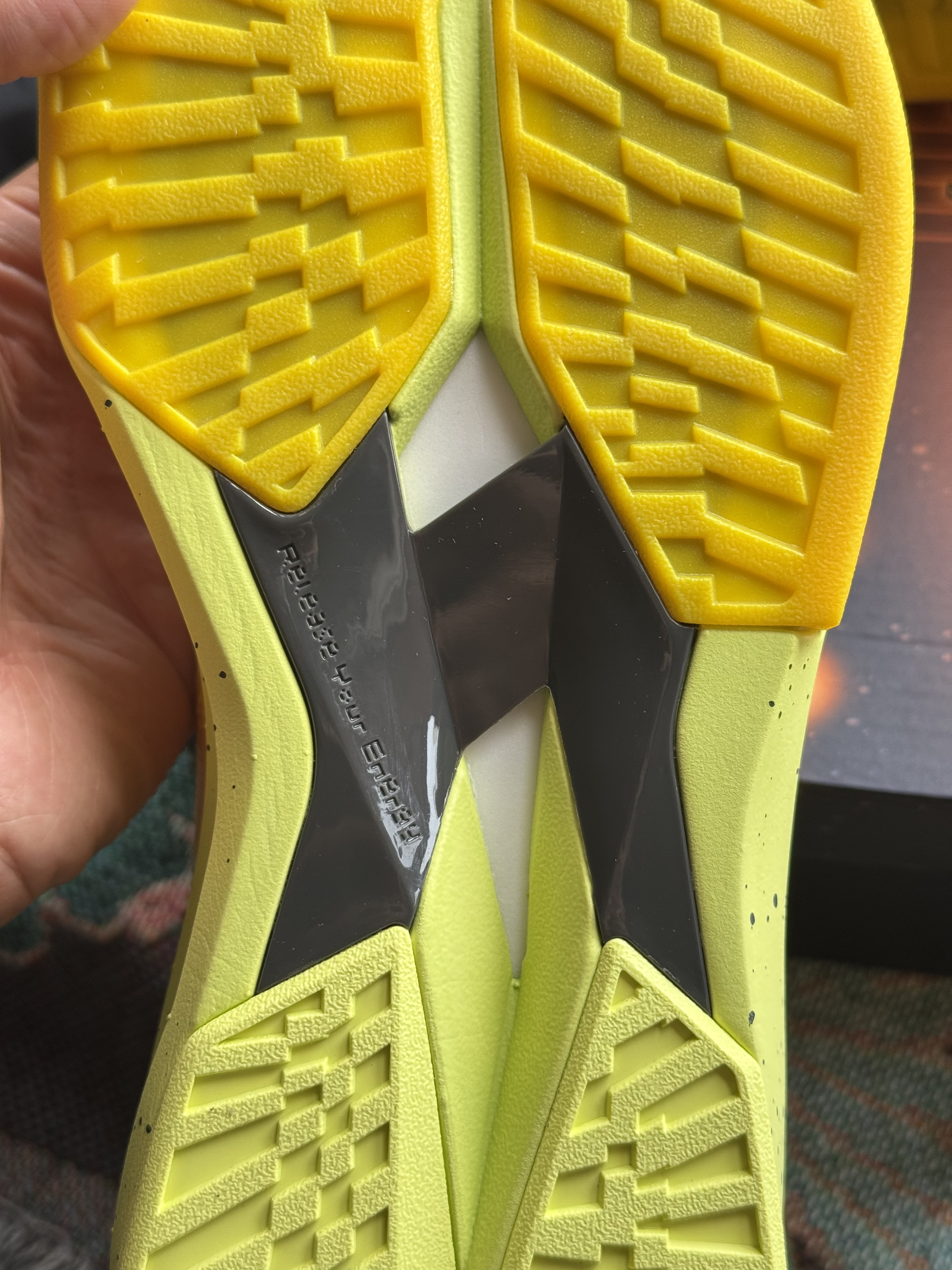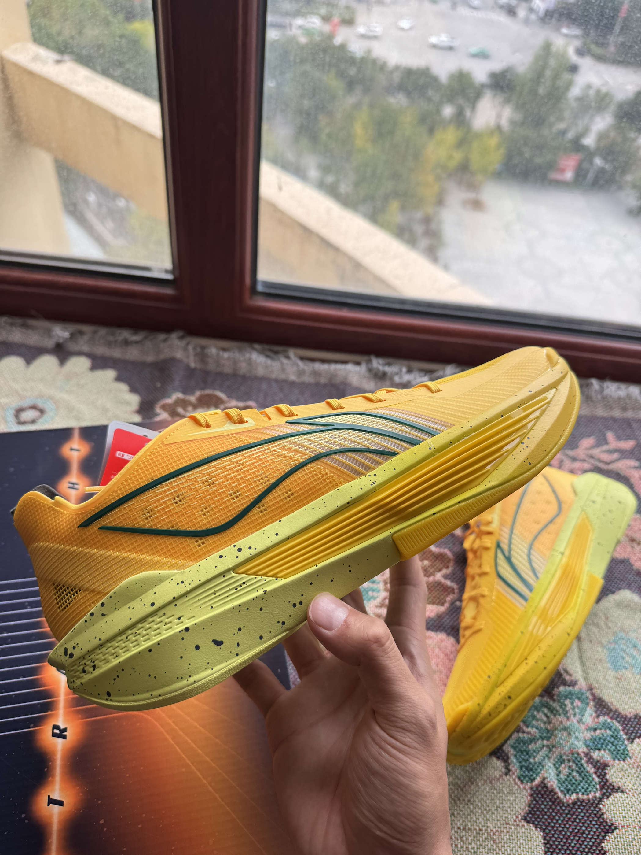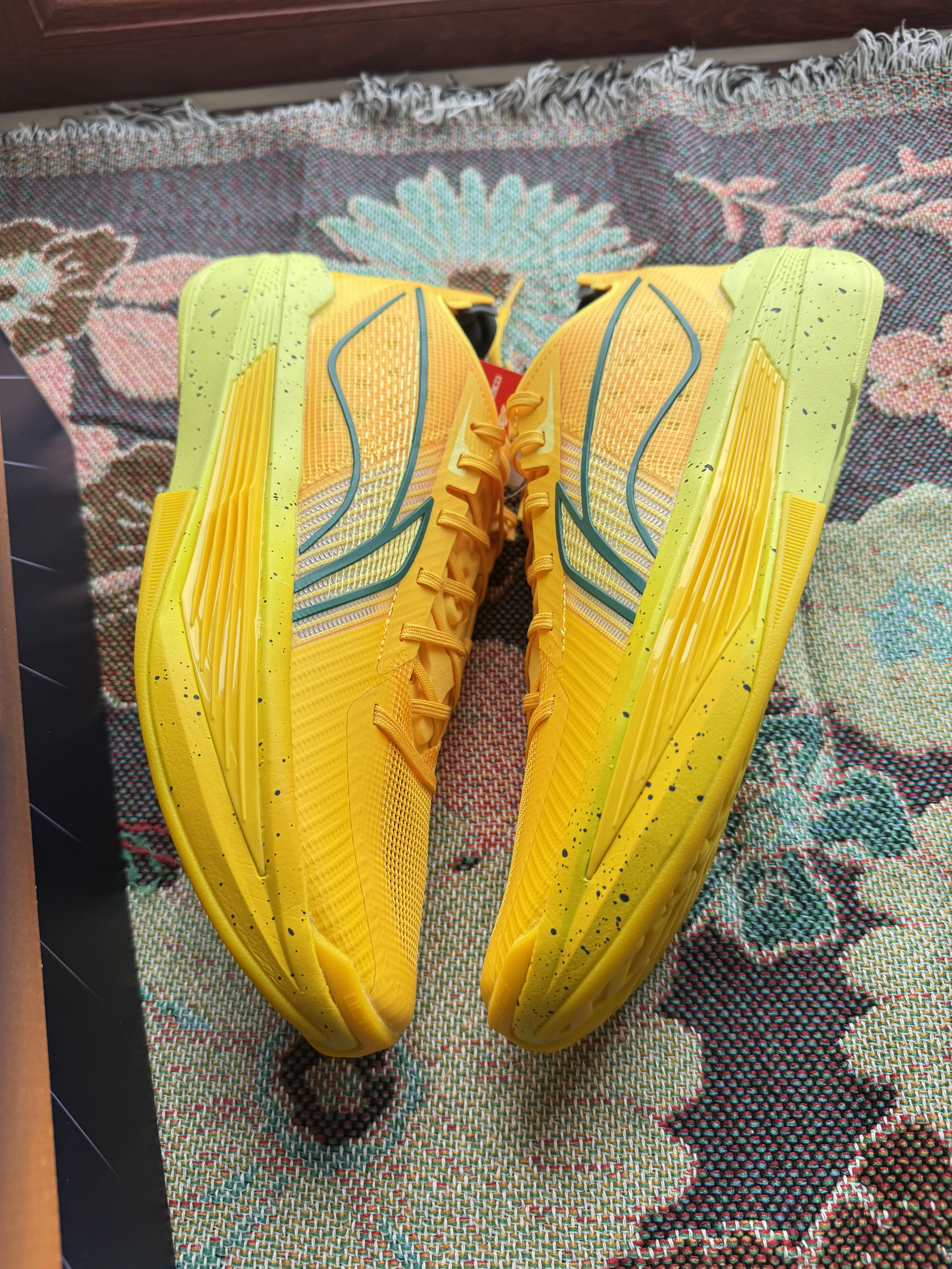 买的第三双了,很眨眼张扬的配色 足底没有碳板,新的材料用指甲直接能掐到,给到反馈,用很大的劲能在短时间看到超䨻回到原来的形状,适合脚踝腿部力量没有那么强又喜欢跑动的人群,投射也推荐,本身底子够厚有一定的保障,但鞋面薄喜欢突破的人慎入会觉得穿着不舒服或者使不上劲,其他方面抓地耐磨都尚可 这个系列的配色都花里胡哨大红大紫,除了配色外遇见价钱合适了可以考虑入手