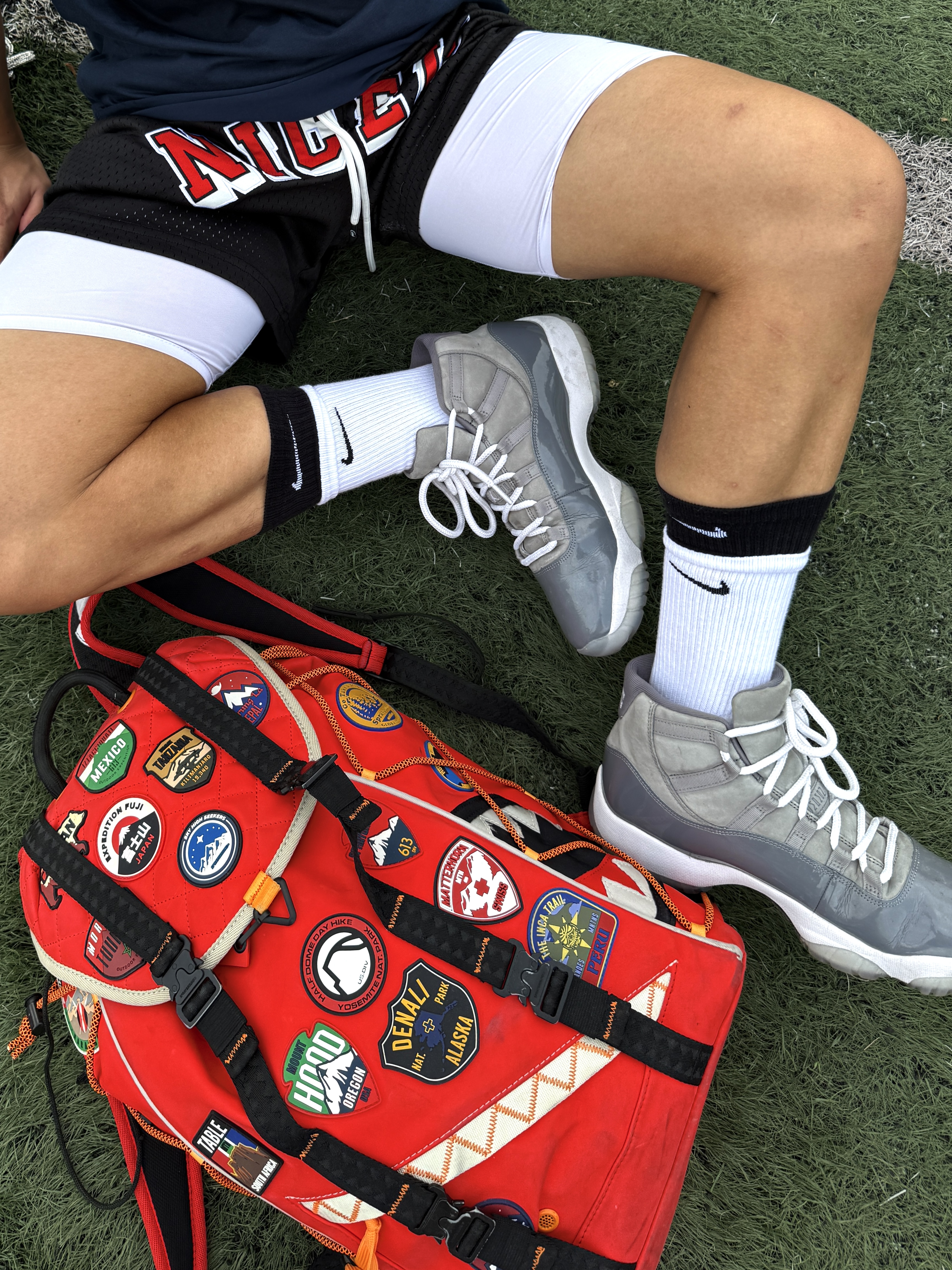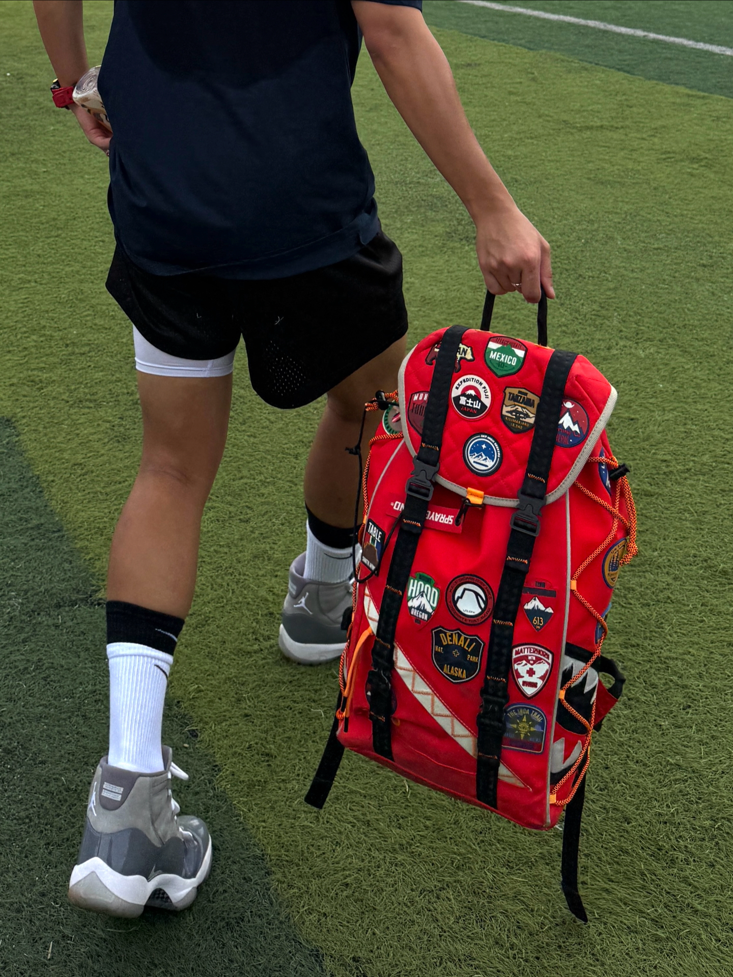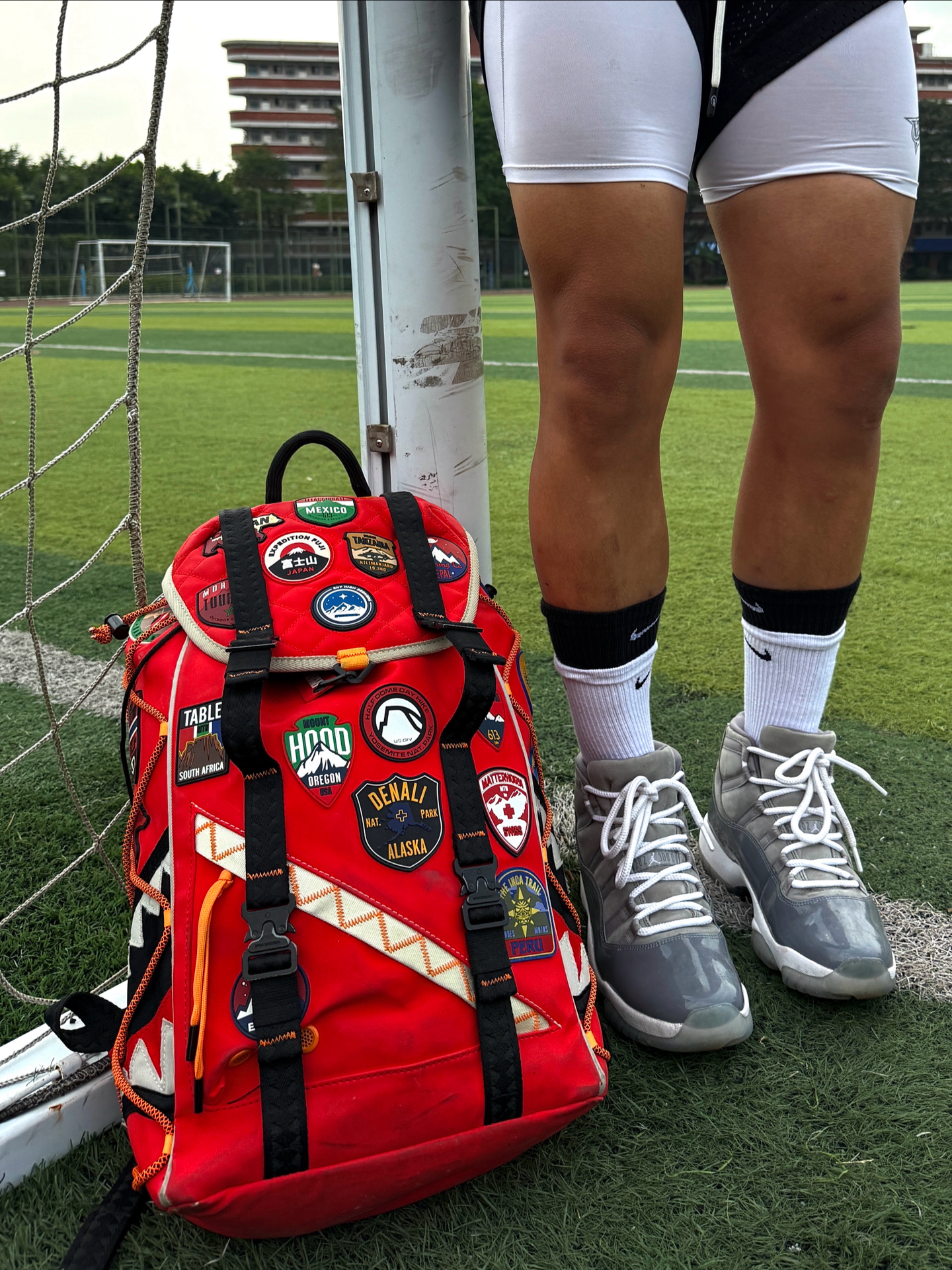 Hey bro‼️这里是小熊的穿搭日记 想要在偌大操场上被人一眼锁定 一只晃眼的双肩包即可给我答案🎯 🎒 Sprayground 探险系列双肩包 红色主色调 搭配以探险为主题的徽章和补丁 超浓烈户外探险与潮流融合的视觉风格 涤纶材质更是耐磨防水耐造 户外背再合适不过 👟 aj11 cool grey 酷灰 鞋身采用牛巴革与漆皮材质 漆皮质感十足 高帮版型搭配灰色调 和双肩包进行撞色 户外美式...