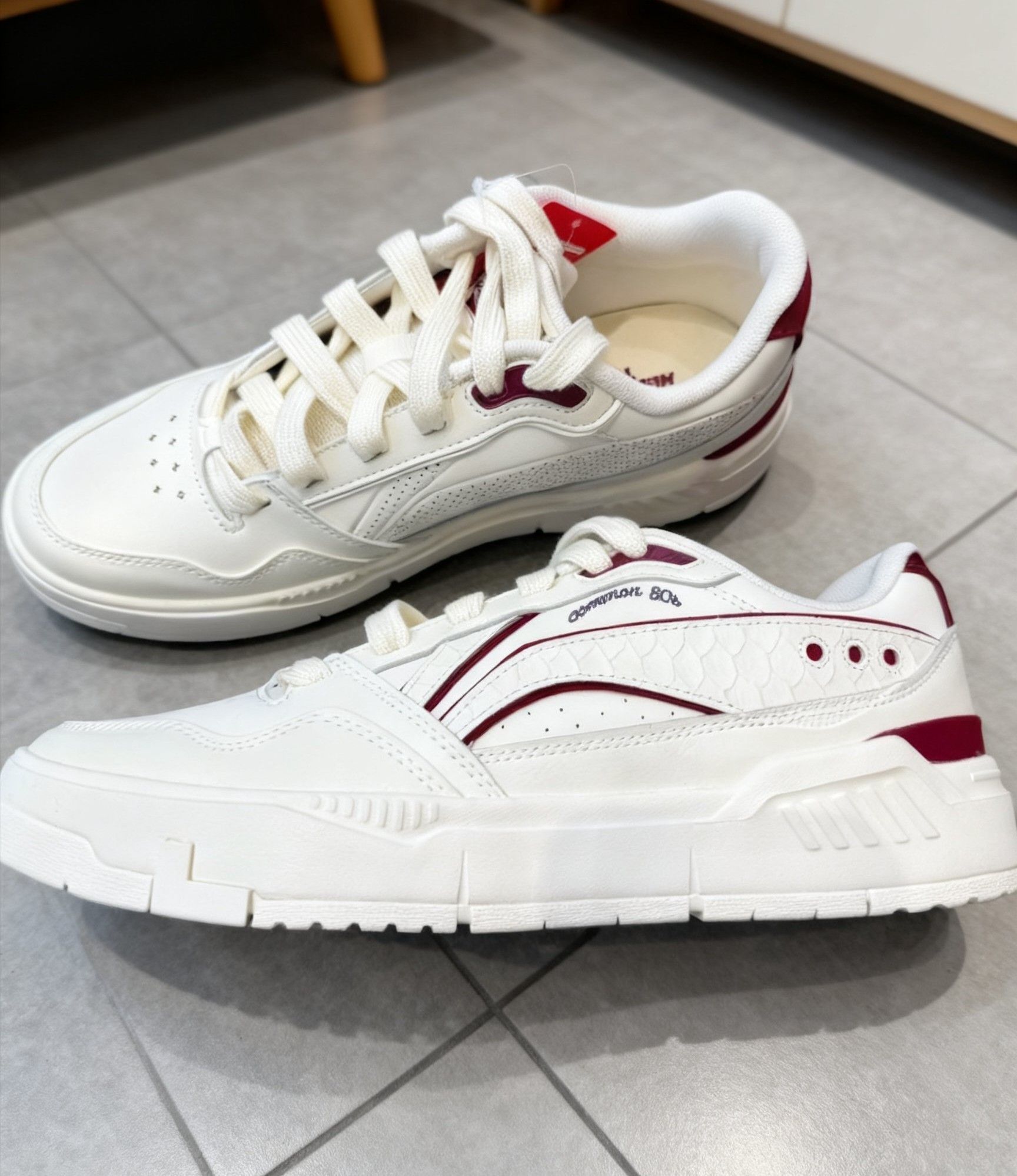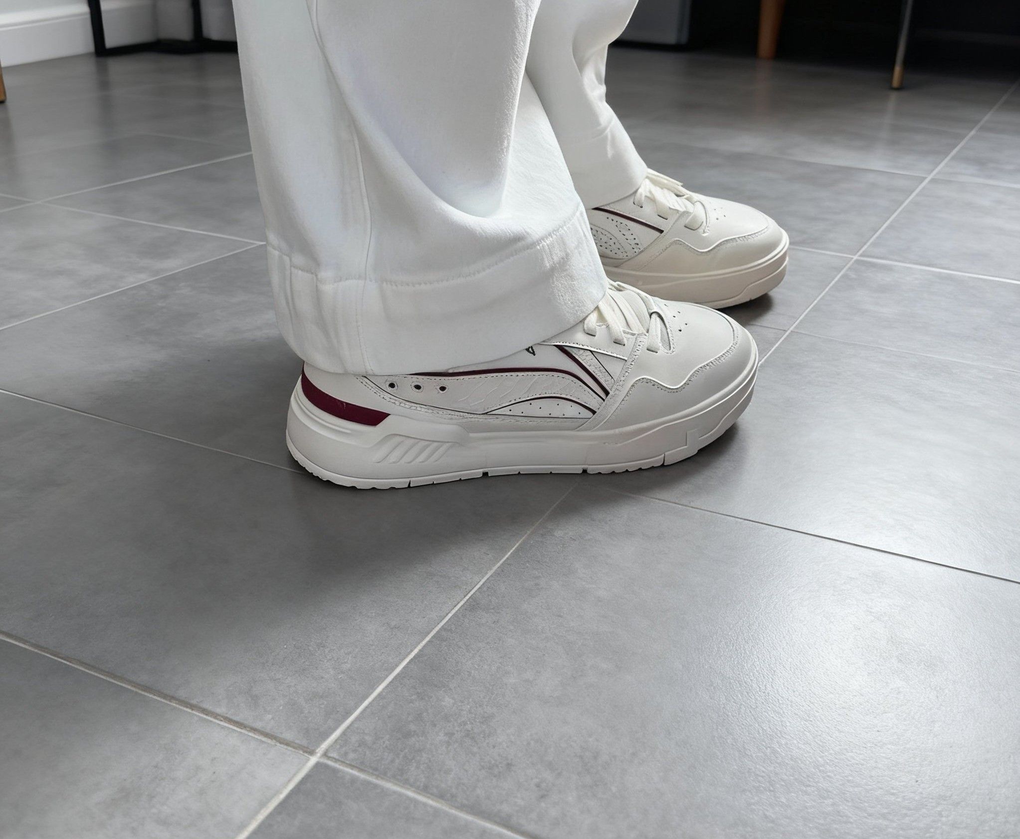 李宁这双小白鞋太懂搭配了, 米白配酒红复古又百搭, 脚感软乎乎的, 日常上学通勤穿它, 舒服又出片