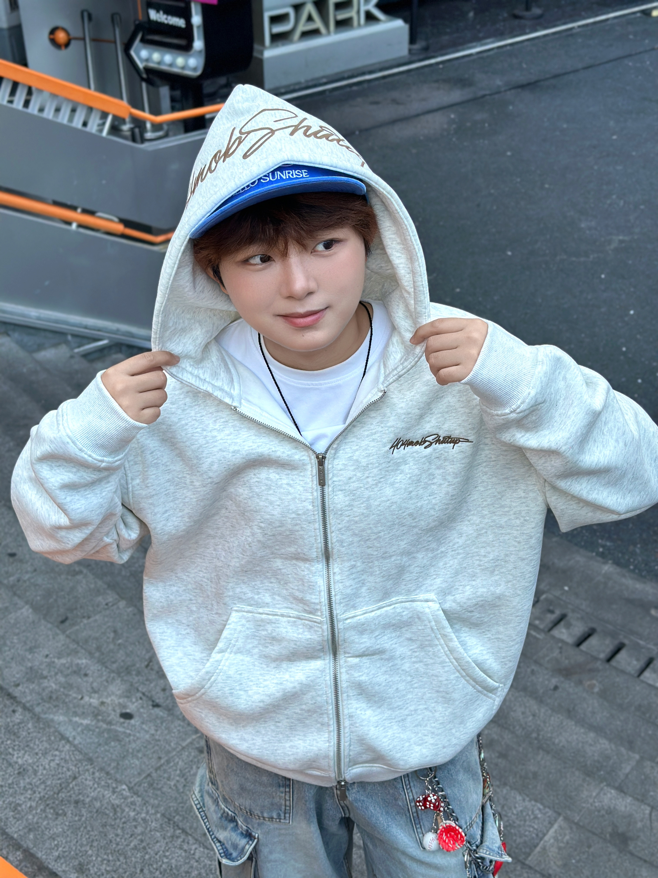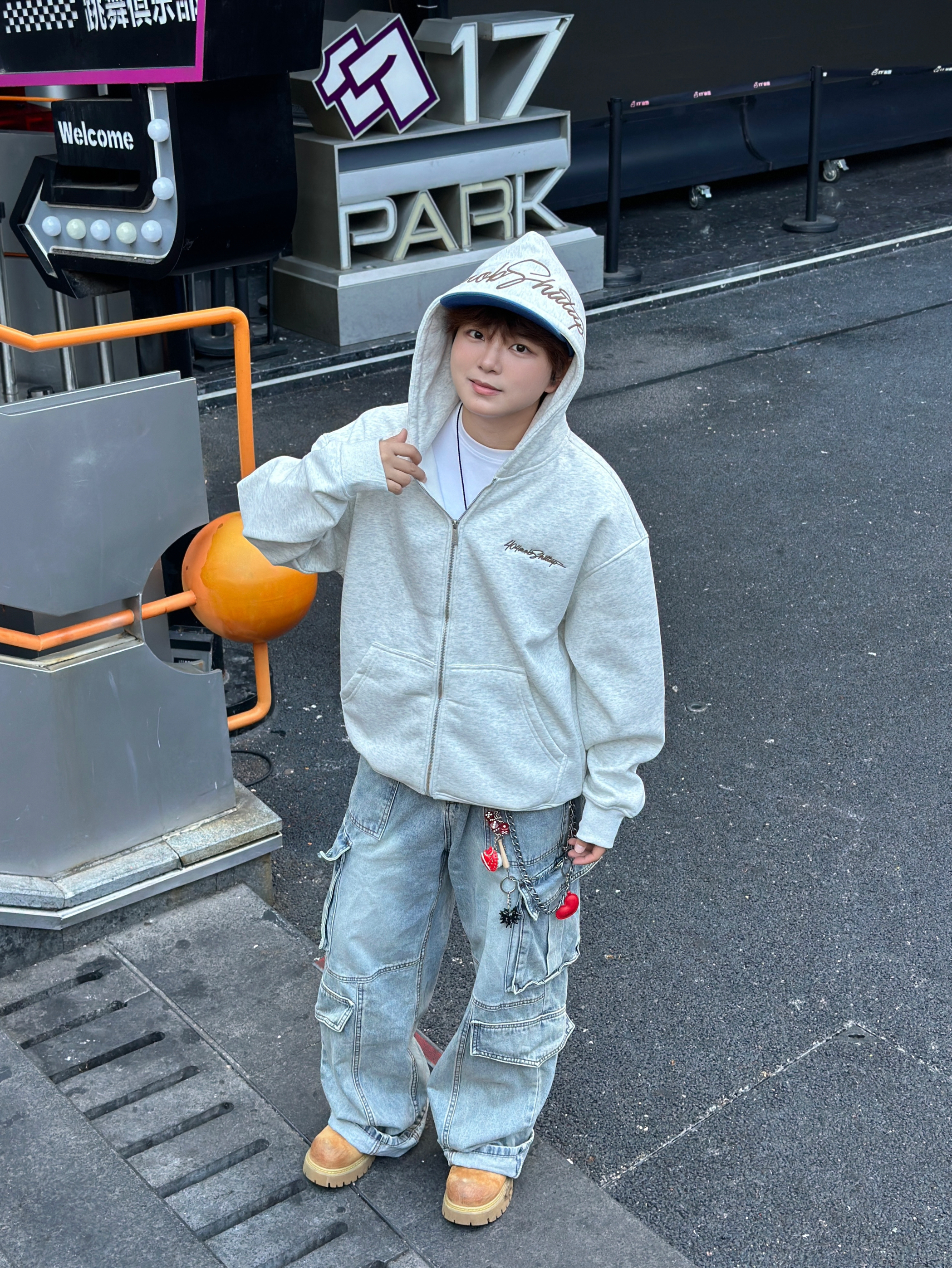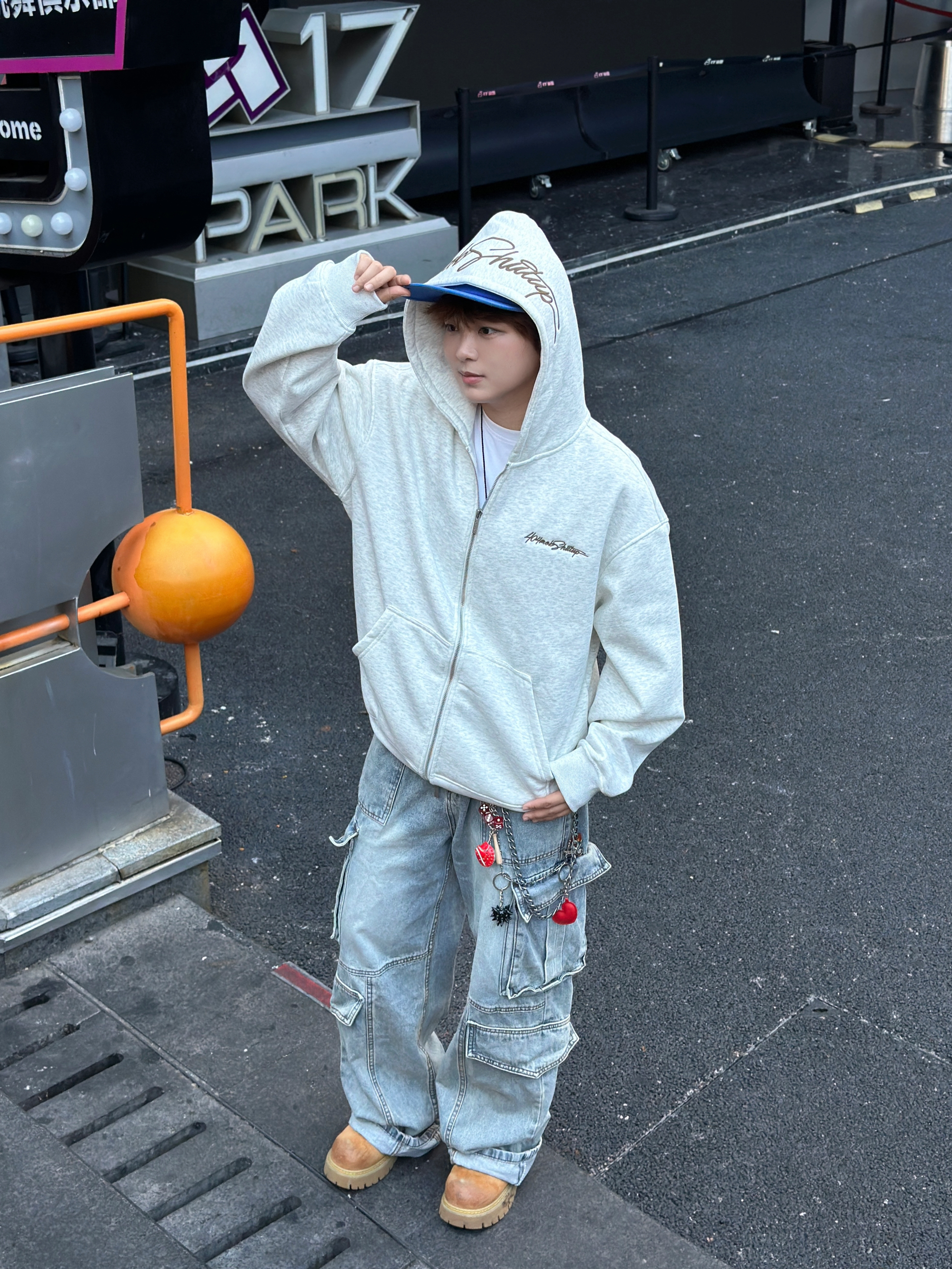 家人们谁懂啊!今天这身穿搭把舒适和潮酷焊死了🤩 浅灰色连帽卫衣外套真的绝绝子,宽松版型贼遮肉,拉链一拉随性又有范儿~ 内搭白T简单干净,下身搭条多口袋工装牛仔裤,再配上蓝色棒球帽和马丁靴,街头感直接拉满💥 日常出街这么穿,舒服又吸睛,咱就是说一整个爱住这种松弛感穿搭谁懂啊!😎