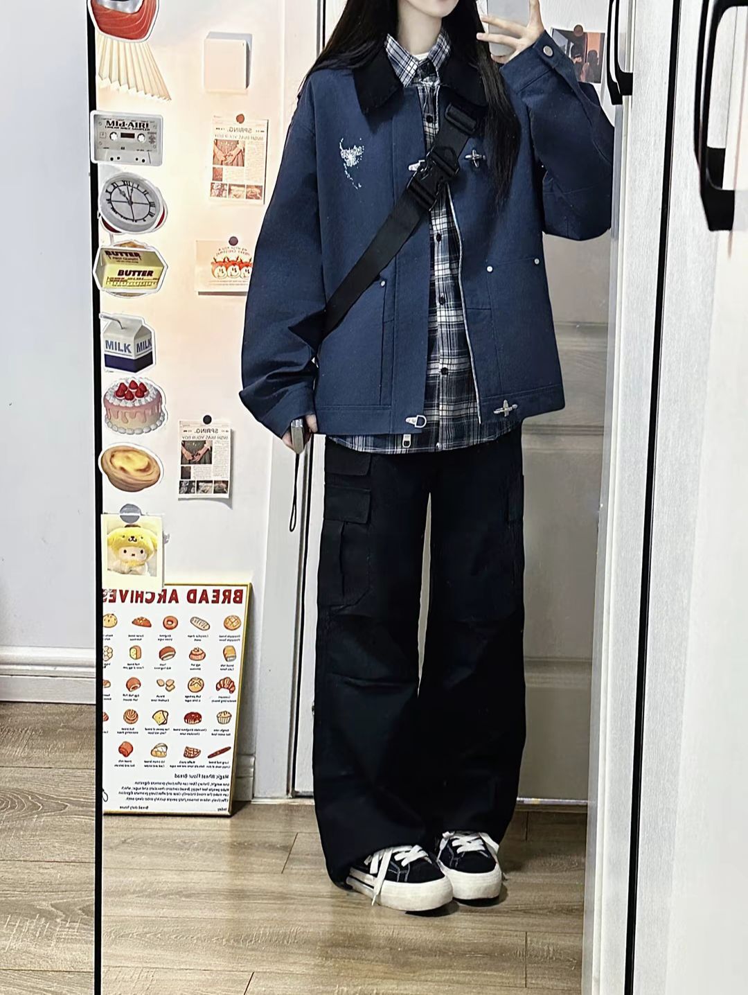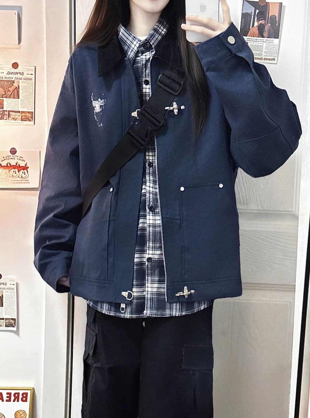 复古藏蓝色夹克十衬衫叠穿真的秋冬少年感拉满!!!