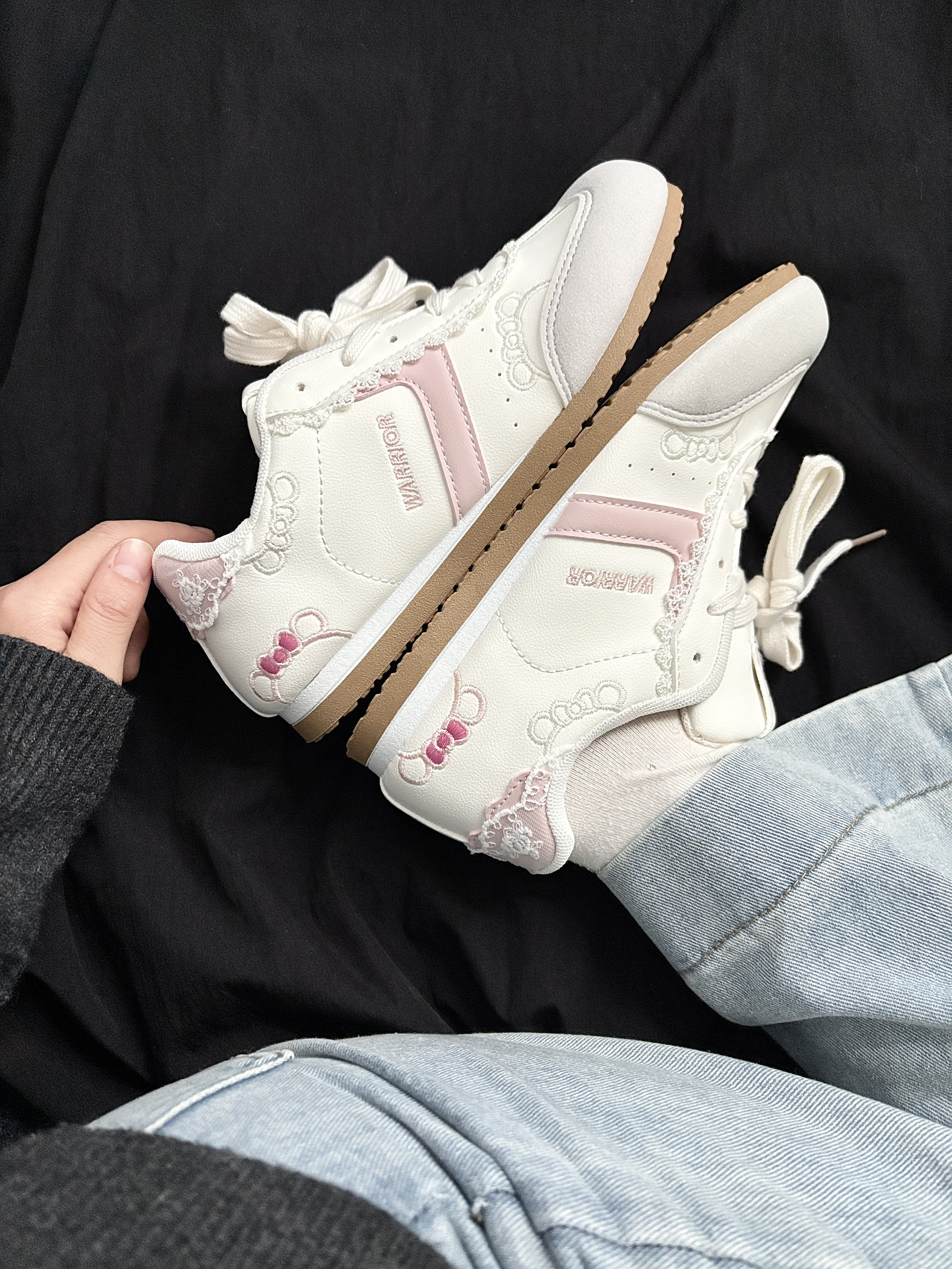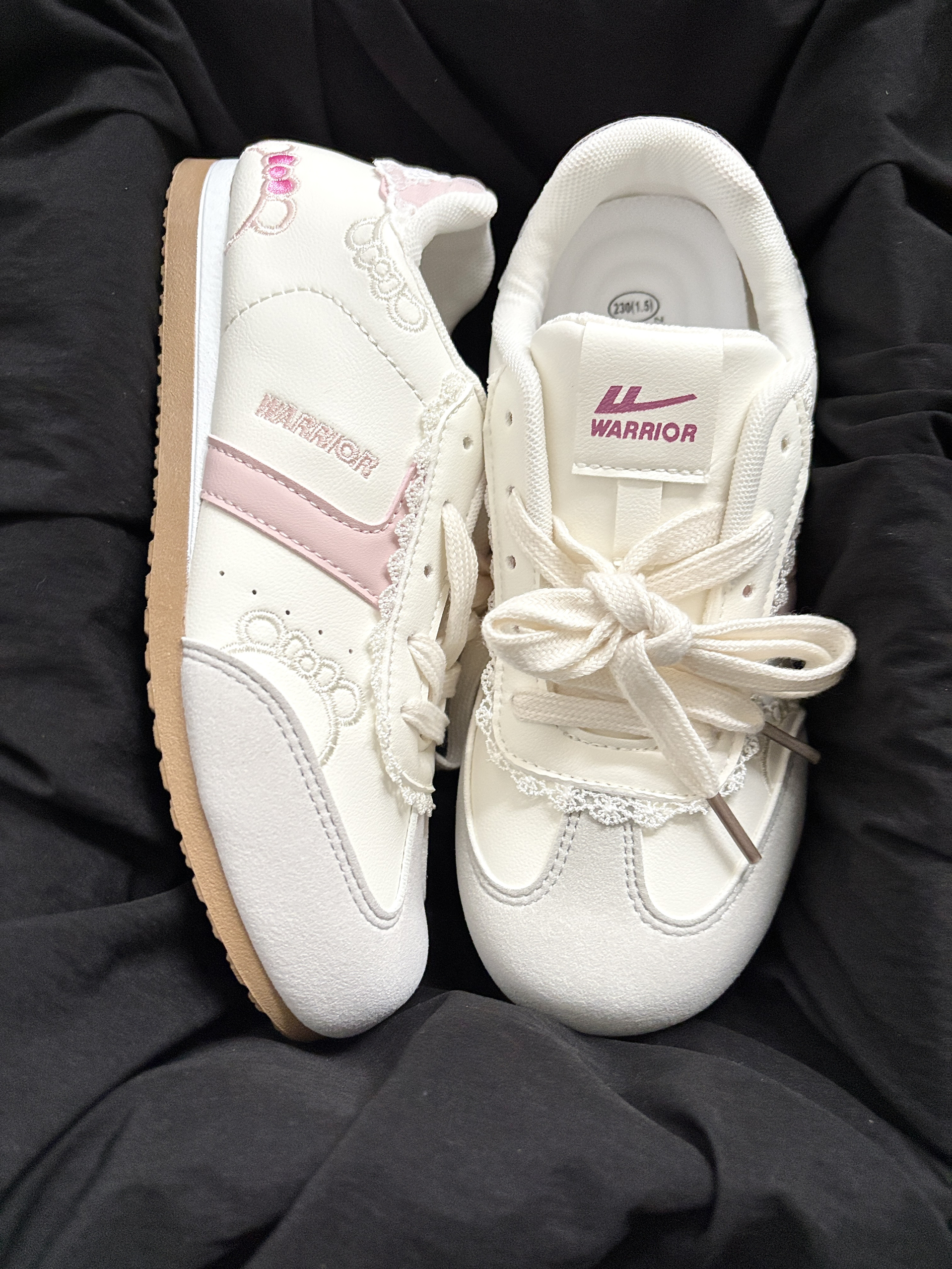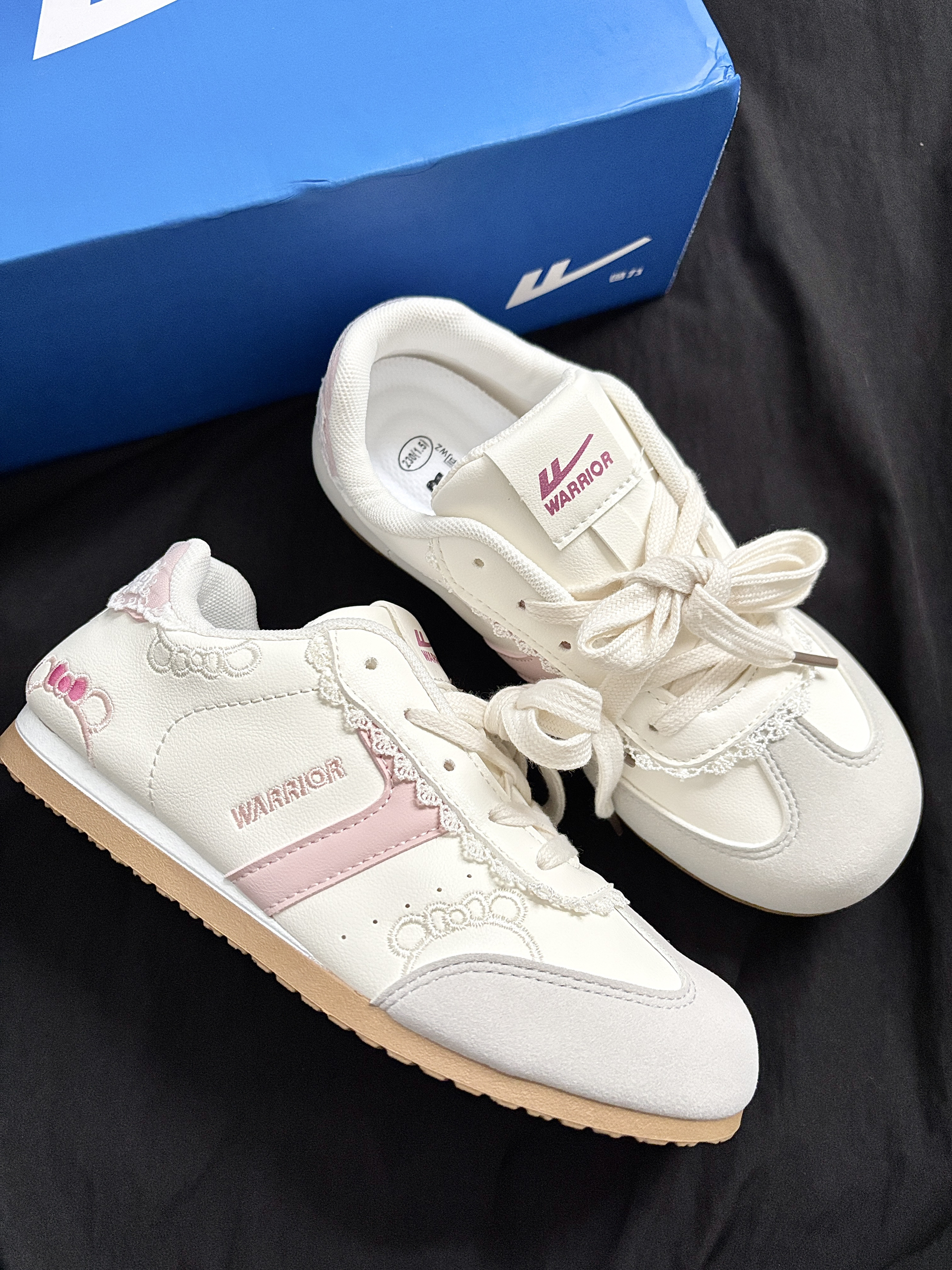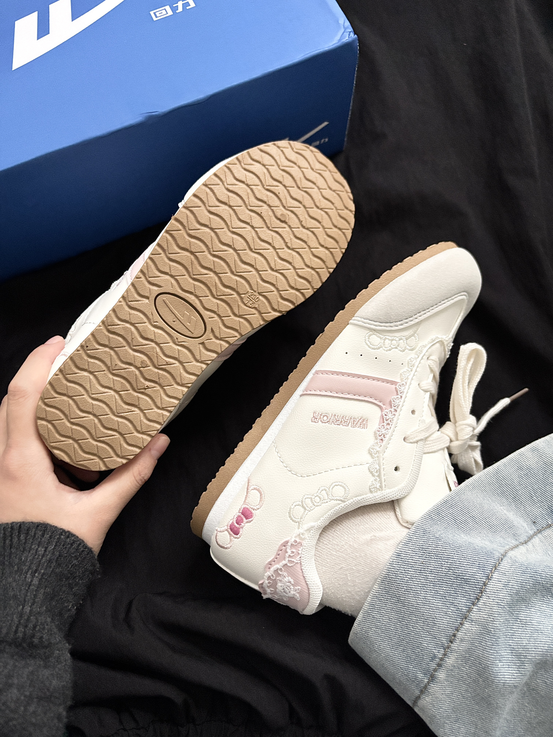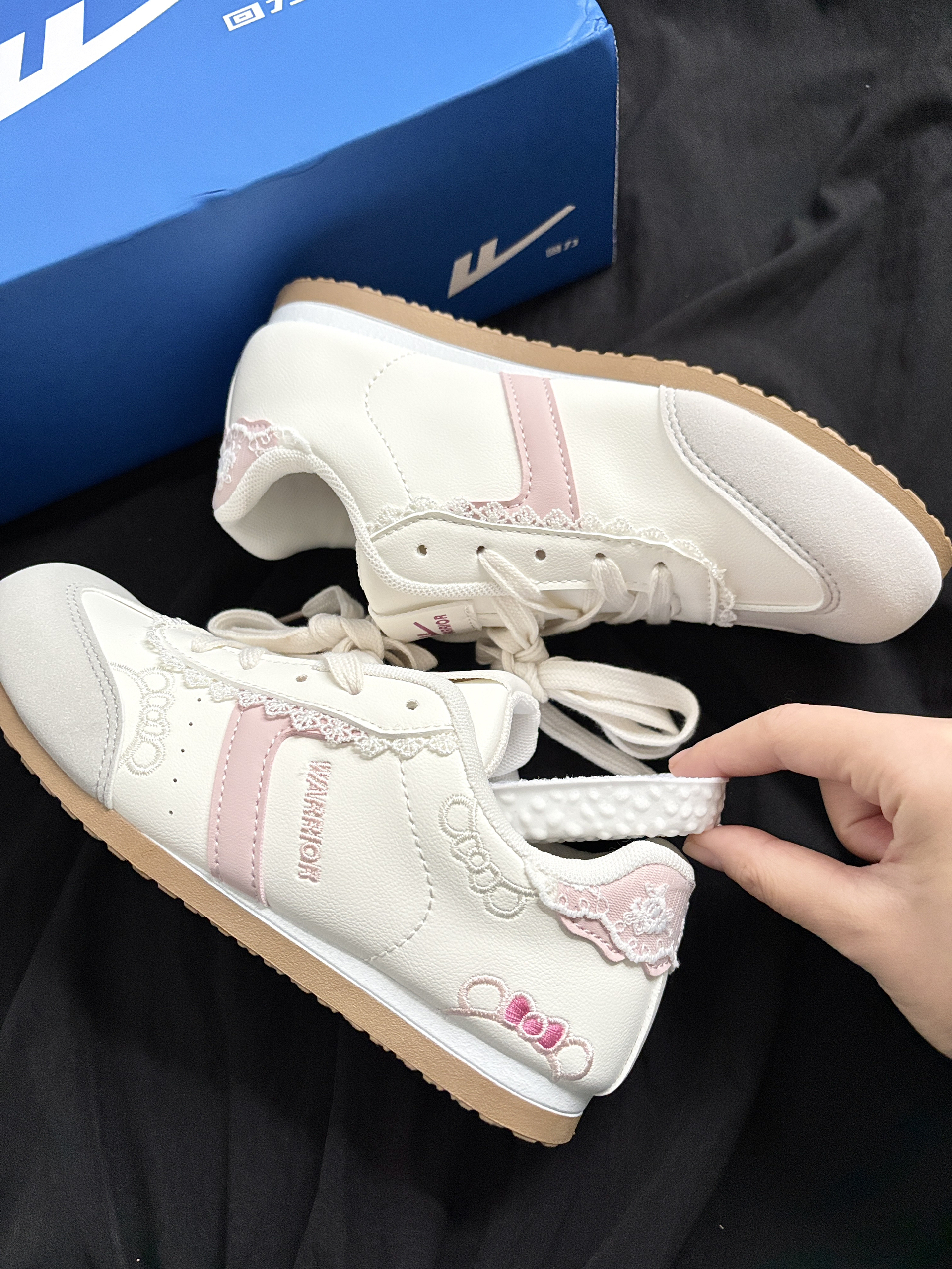 这双回力运动鞋肿么这么可爱呢~ 奶白与浅粉的拼色搭配 蕾丝与 kitty 猫🐱刺绣的点缀 还有可爱的蝴蝶结元素暗藏小心机~ 复古阿甘鞋型简单百搭 脚感软软的舒服轻盈又可爱 逛街穿它暴走一整天也不累😌 从细节到整体都戳中少女心 甜妹出街的宝藏单品没错了✌️