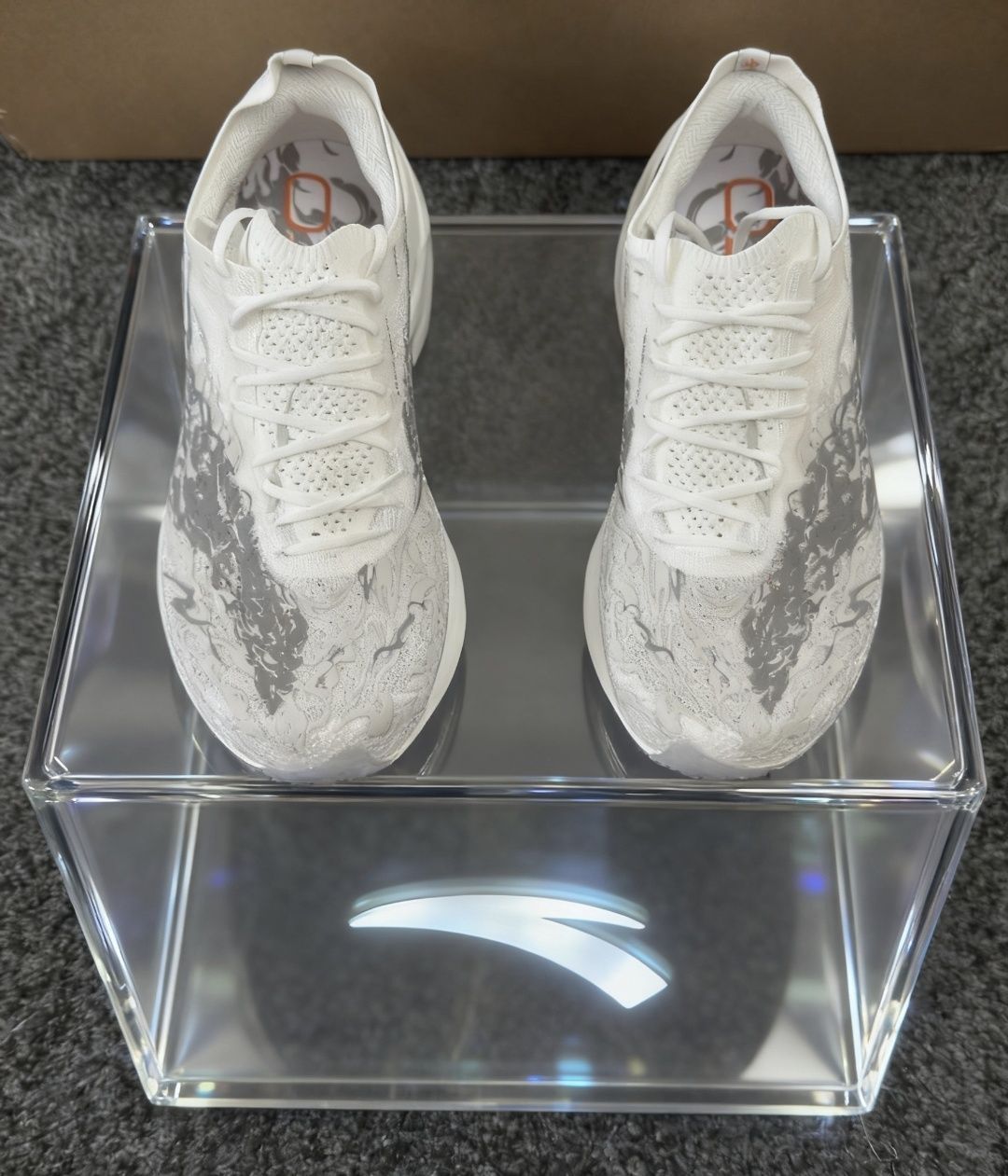 鞋面的“拨云见日”图案可不是花架子,灰色的云雾纹理在白色鞋身衬托下,既潮流又有中国风韵味,日常出街搭配运动装也很吸睛。而且针织鞋面的透气性是真的顶,跑友实测30℃的天气跑半马,脚部出汗量比穿普通跑鞋少了一半还多,透气这块儿属实拿捏了。